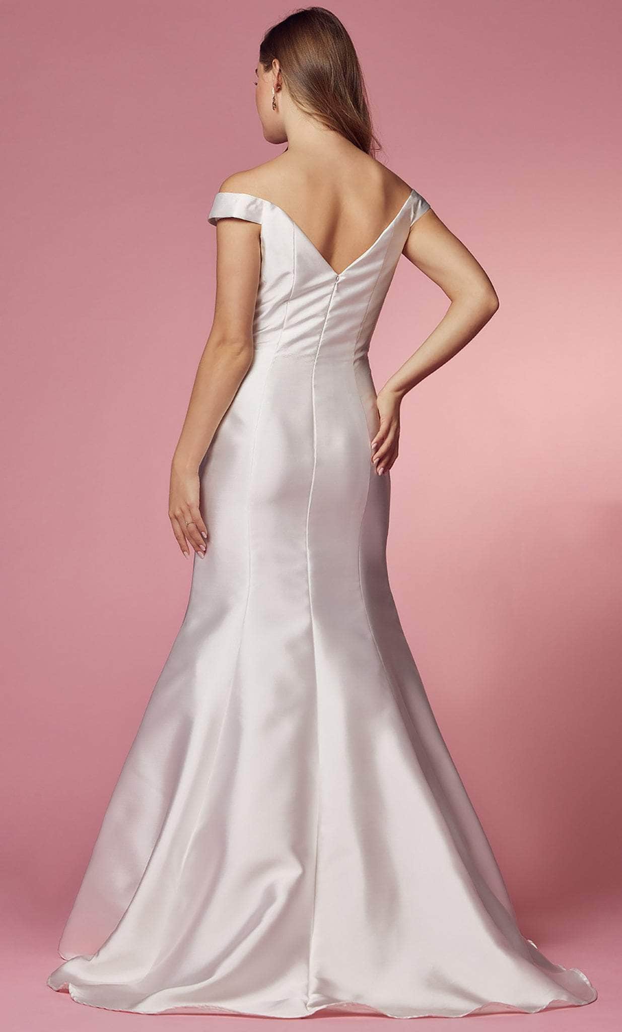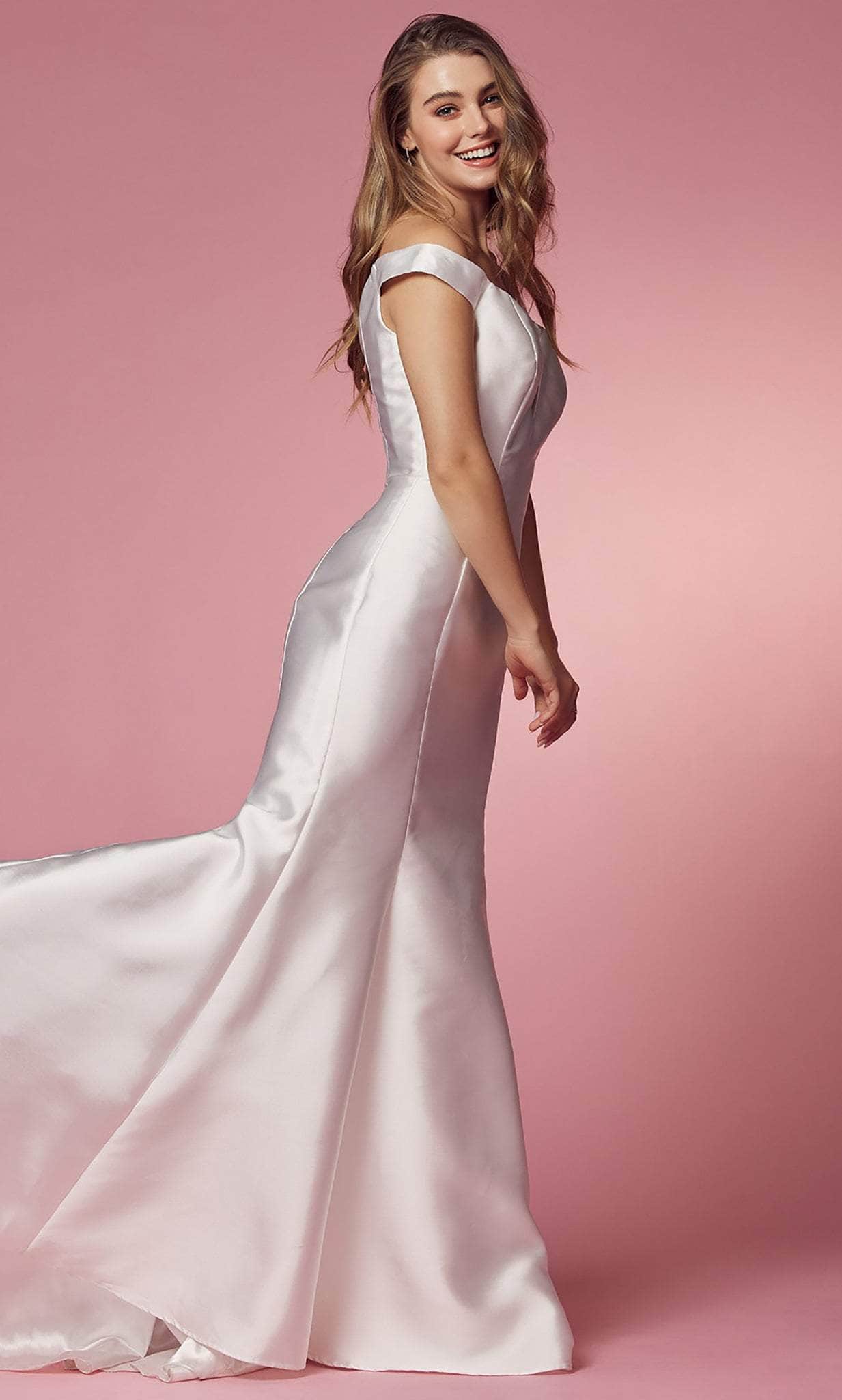 Dress to impress on your next formal event in this simple but captivating Nox Anabel C004W. Sculpted to show off an hour-figure that every girl dreamt of. Made with shiny fabric and opens in an off shoulder, plunging neckline. Contoured in a beautiful mermaid silhouette that extends to a floor-reaching length. Back is cut in V shape and opens up with a zipper. Be in this gorgeous Nox Anabel C004W creation and leave a lasting impression. Model is wearing White color.