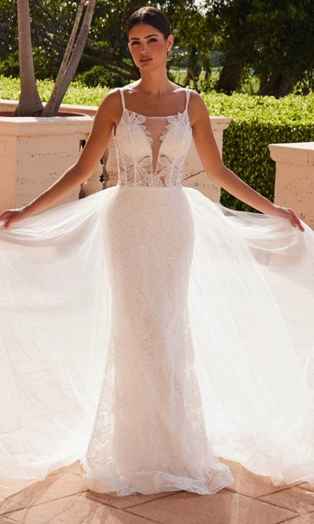 The Nox Anabel C1628W is a masterpiece of lace and tulle, featuring a plunging V-neckline and sheer skirt for a touch of allure. The spaghetti straps offer delicate support, while the long train adds a dramatic finish. Whether for a wedding or a grand soirée, the Nox Anabel C1628W is the epitome of romance and sophistication.