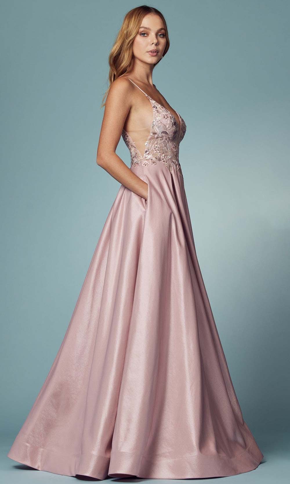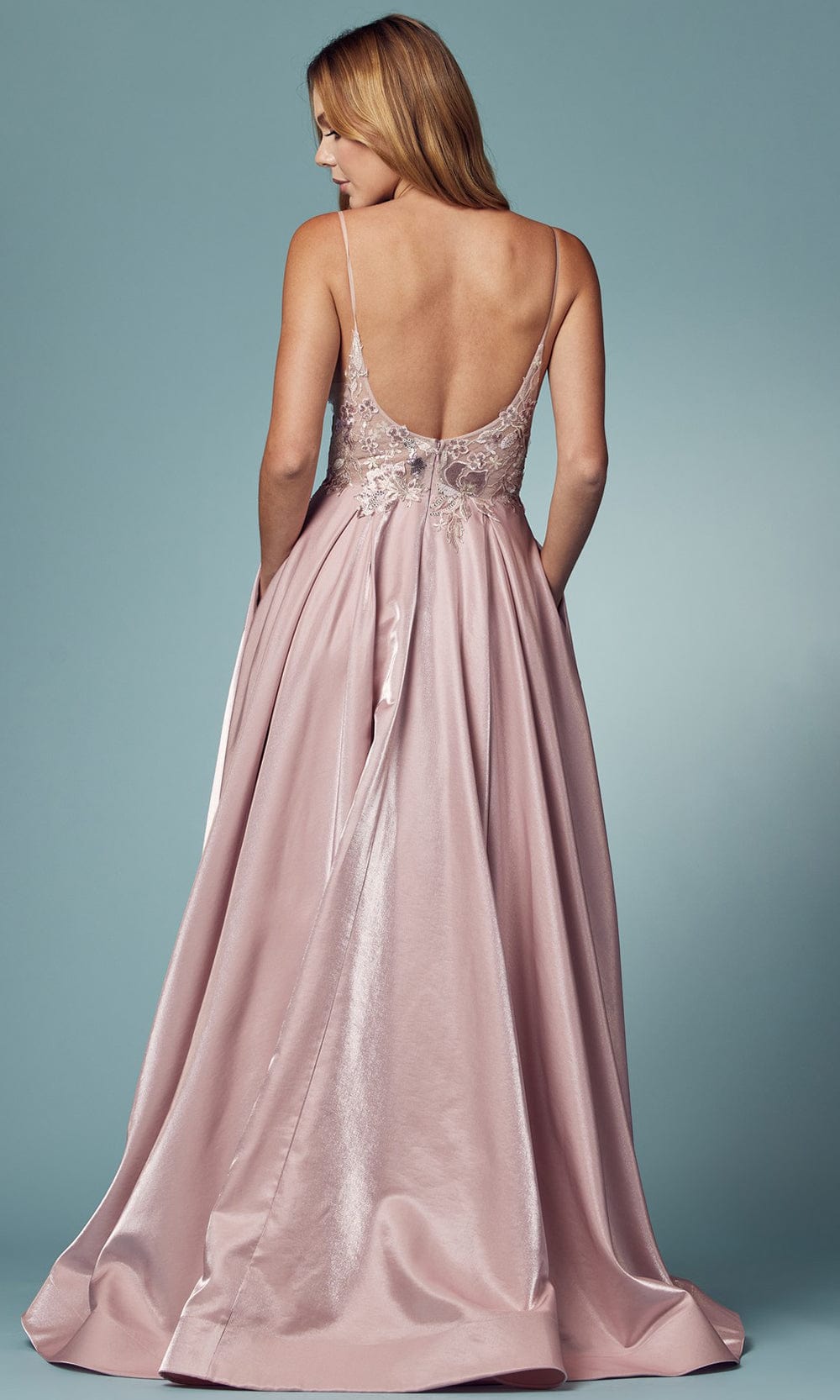 Dazzle all night long in this stunningly feminine Nox Anabel E1004 creation. Stringed with spaghetti straps on a sheer bodice, this piece parades a plunging v-neckline with an illusion inset. Fashioned with intricate floral embroidered details on the bodice and low coop back, the sleek skirt flares into an A-line silhouette as it falls into a train. Radiate a chic style in this exceptional Nox Anabel masterpiece. This stunning collection of Nox Anabel dresses will reflect your personality and give you an elegant red-carpet look. Model is wearing the Mauve color.