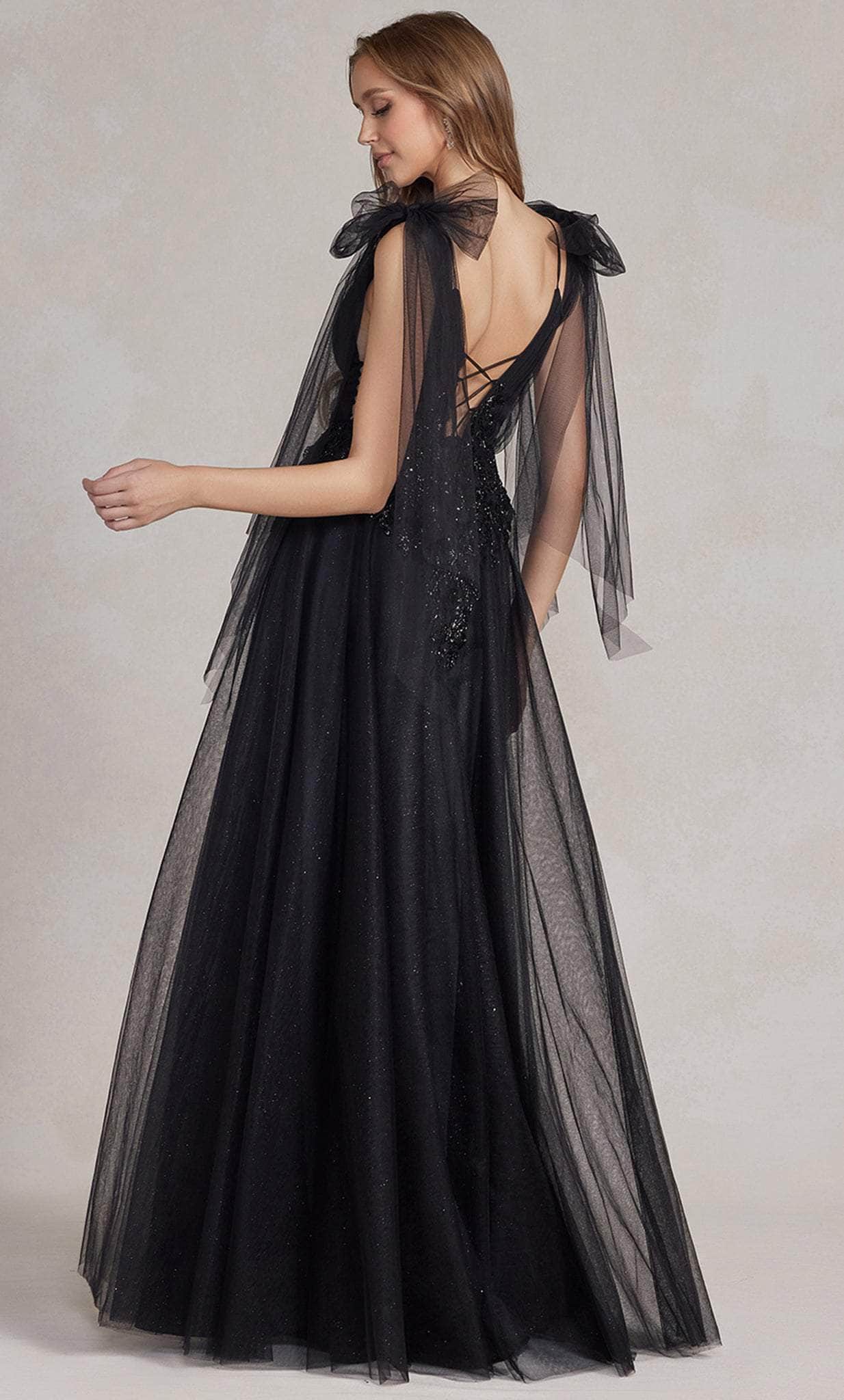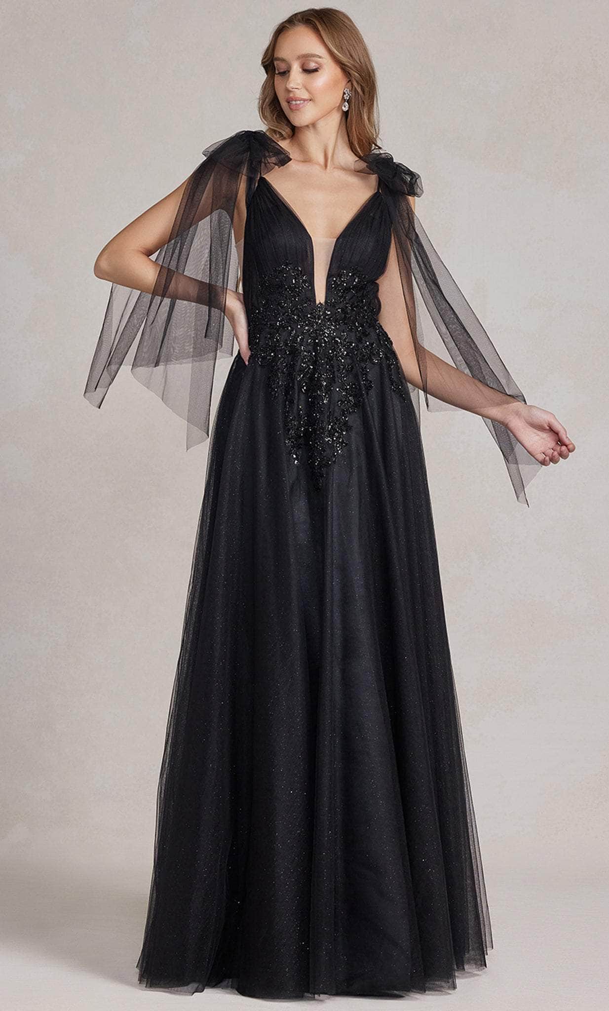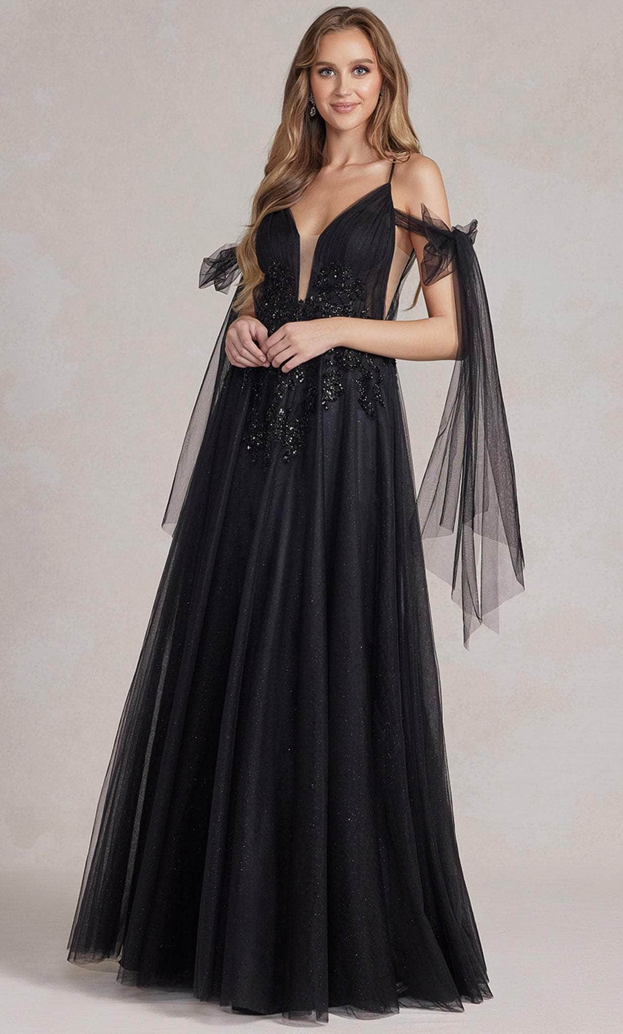 Appear like a modern princess with the unique beadwork of Nox Anabel E1075. Sizzle and shine in this one-of -a-kind fitted bodice, fashioned with pleats and appliques. It impresses in a lovely sweetheart neckline, hemmed with beadworks, and dainty off-shoulder tulle sash. In perfect match, the skirt is kept minimal with layers of tulle forming an A-line silhouette, and cut with a full length hem. Nox Anabel E1075 is perfect for a girl who wants the standout style and flawless fit. Model is wearing the Black color.