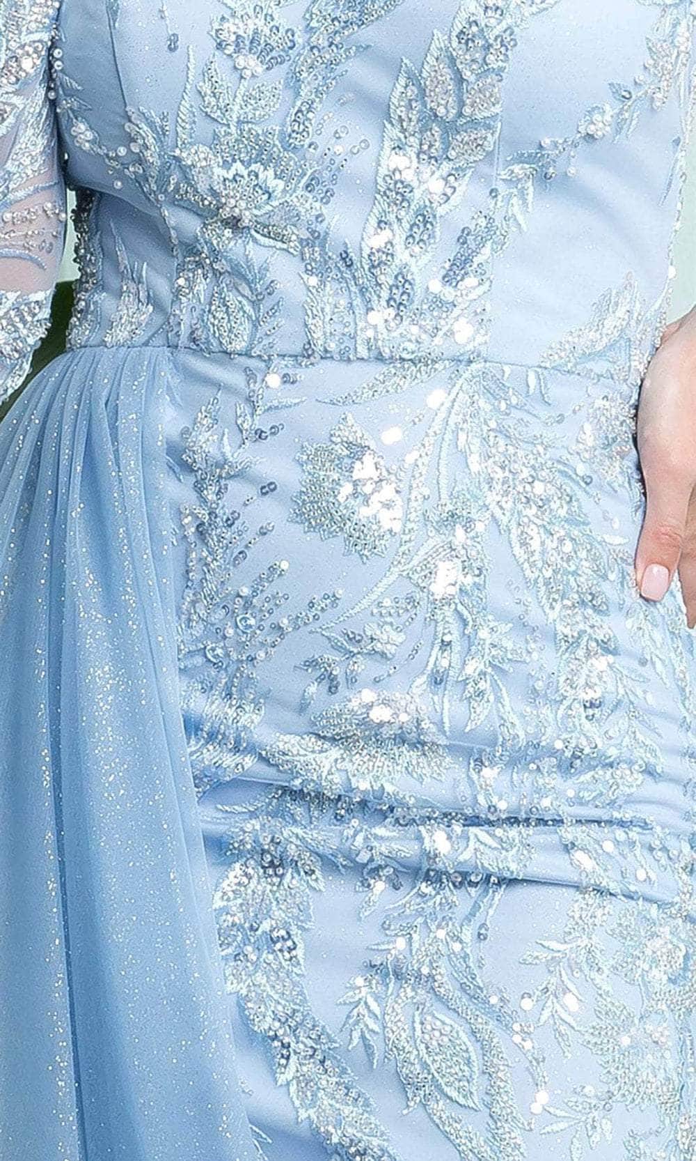 You are more than gorgeous when you wear this unbeatable creation from Nox Anabel E778. The dress brandishes a form-fitting silhouette with intricate sequins and beadwork embellishment throughout. It reveals a high halter neckline, sweetheart shaped bust and a one-shoulder sheer long sleeve complemented by a mid-open zipped up back. The sheath skirt tapers in a short hemline and it is accented with a side glitter tulle overskirt that cascades down to the floor-length hem. Fascinate the crowd wearing this exceptional nox Anabel masterpiece. Model is wearing the Bahama Blue color.