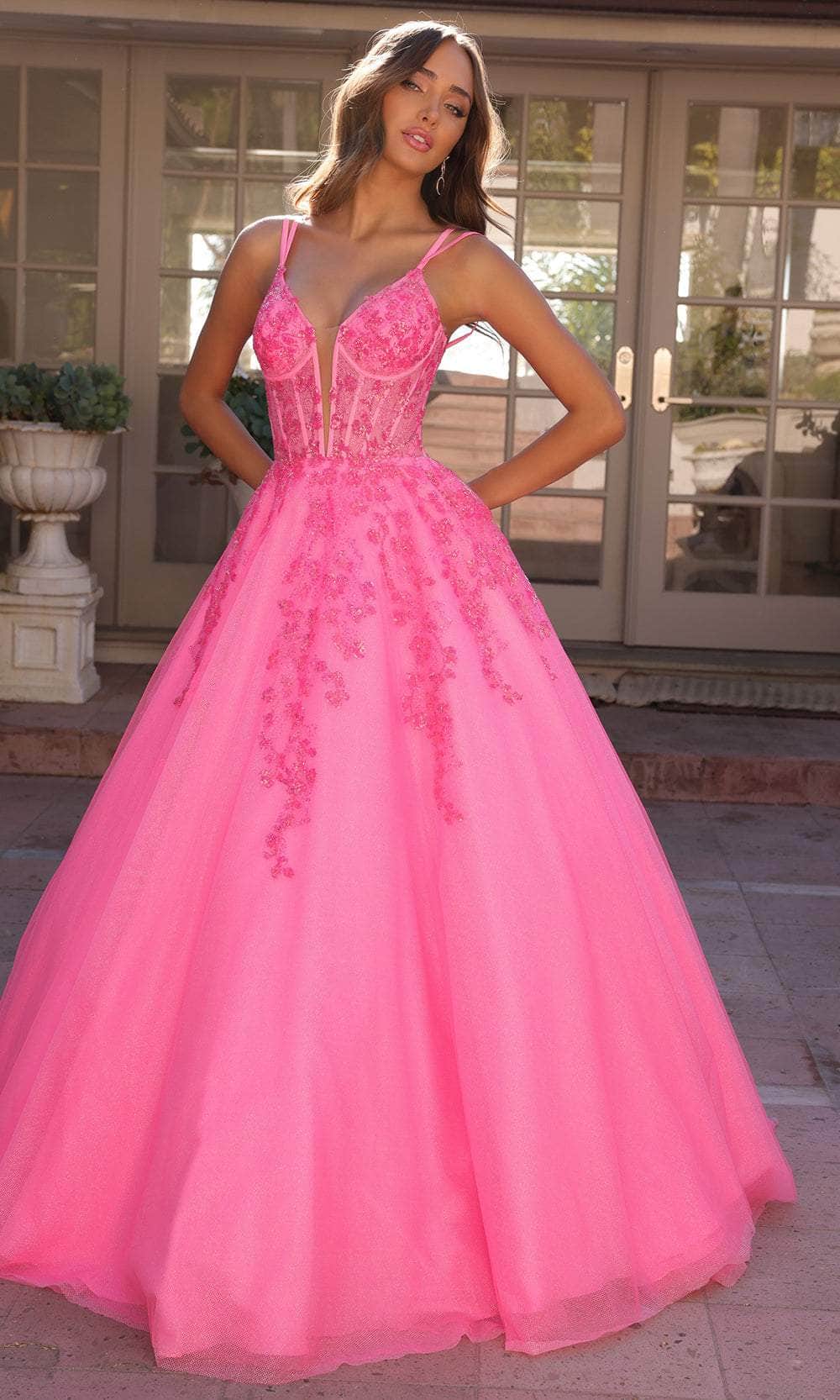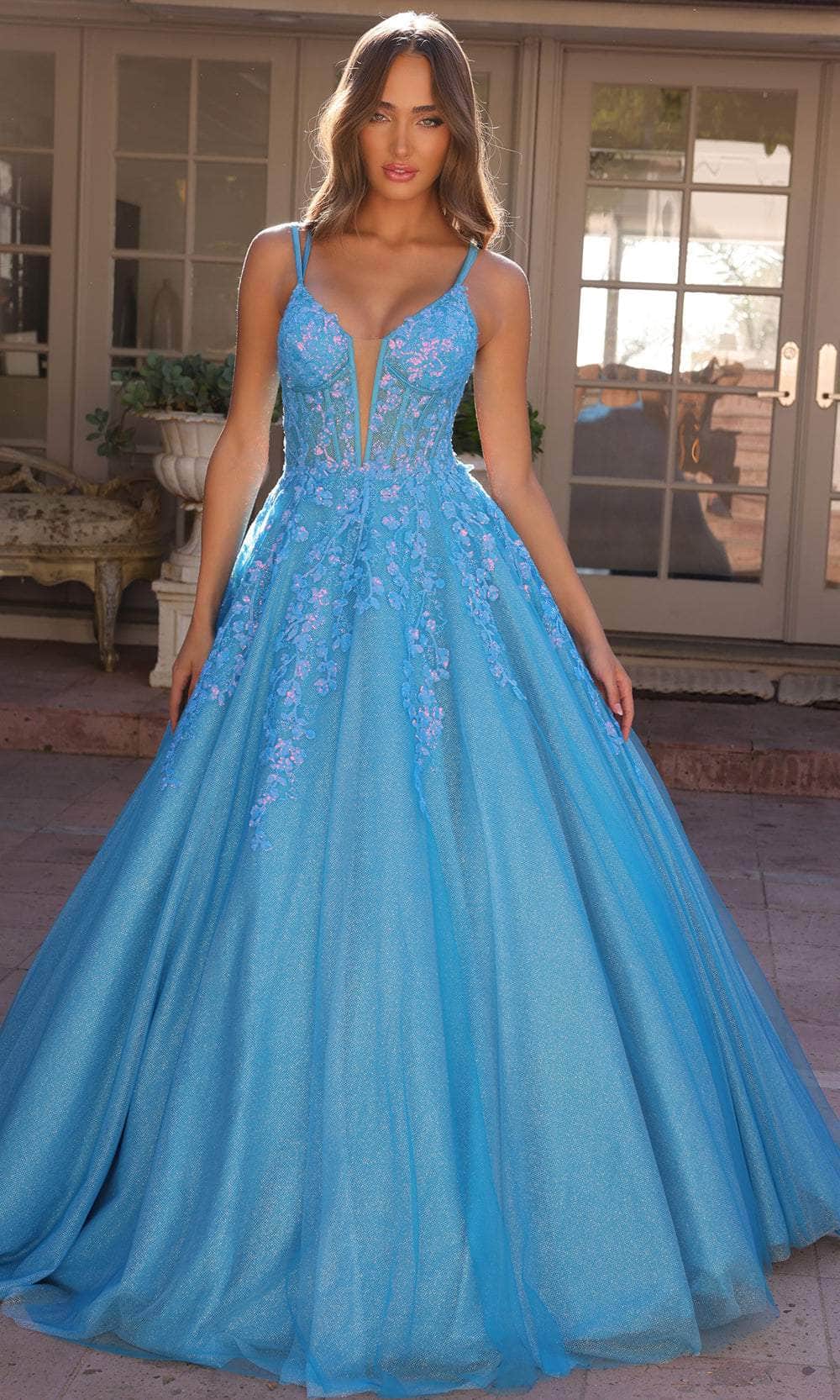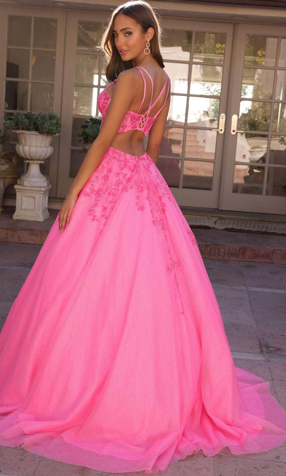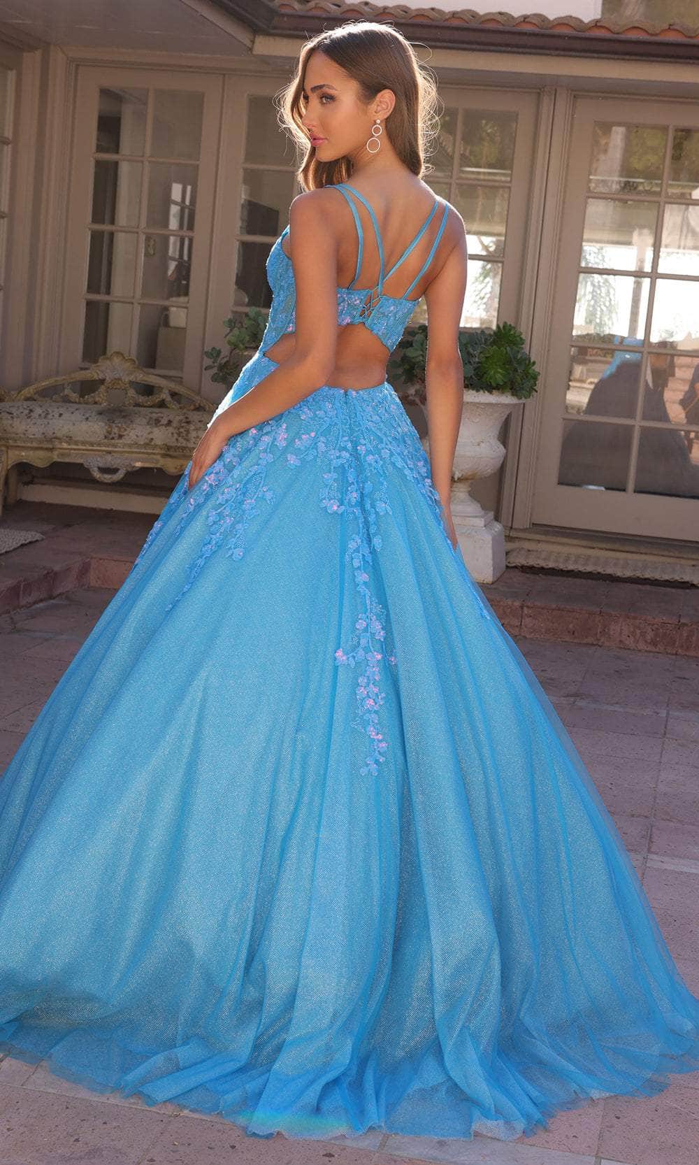Radiate enchantment in the Nox Anabel H1357 gown, a stunning masterpiece that exudes timeless charm. The sleeveless corset bodice is adorned with exquisite embroideries, featuring a tasteful cut-out for added allure. The back showcases a lace-up tie and a secure center zipper closure, ensuring a perfect fit. The floor-length skirt gracefully parades in a ballgown silhouette, concluding with a majestic train. Nox Anabel H1357 seamlessly blends sophistication and allure, promising a memorable presence at any formal occasion. Models are wearing Bahama Blue, Hot Pink Multi, and Blue colors.