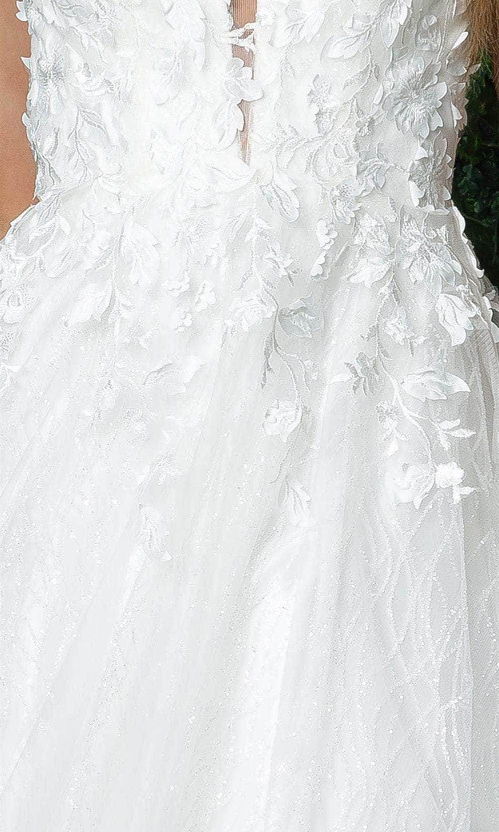 Walk in a defined sophistication and beauty wearing this beautiful wedding gown by Nox Anabel JR930. This sleeveless gown delights in a plunging V-neckline with mesh inset and lavishly designed with floral appliques on the fitted bodice. Side cutouts adds sultriness onto the bodice as the mid-open back revels in a V-Cut shaped. The skirt is styled in a ballgown silhouette and finishes with a court train. Feel dainty and feminine in this Nox Anabel design. Model is wearing the White Color