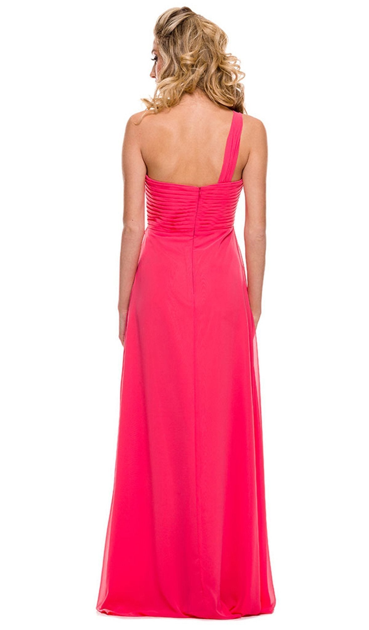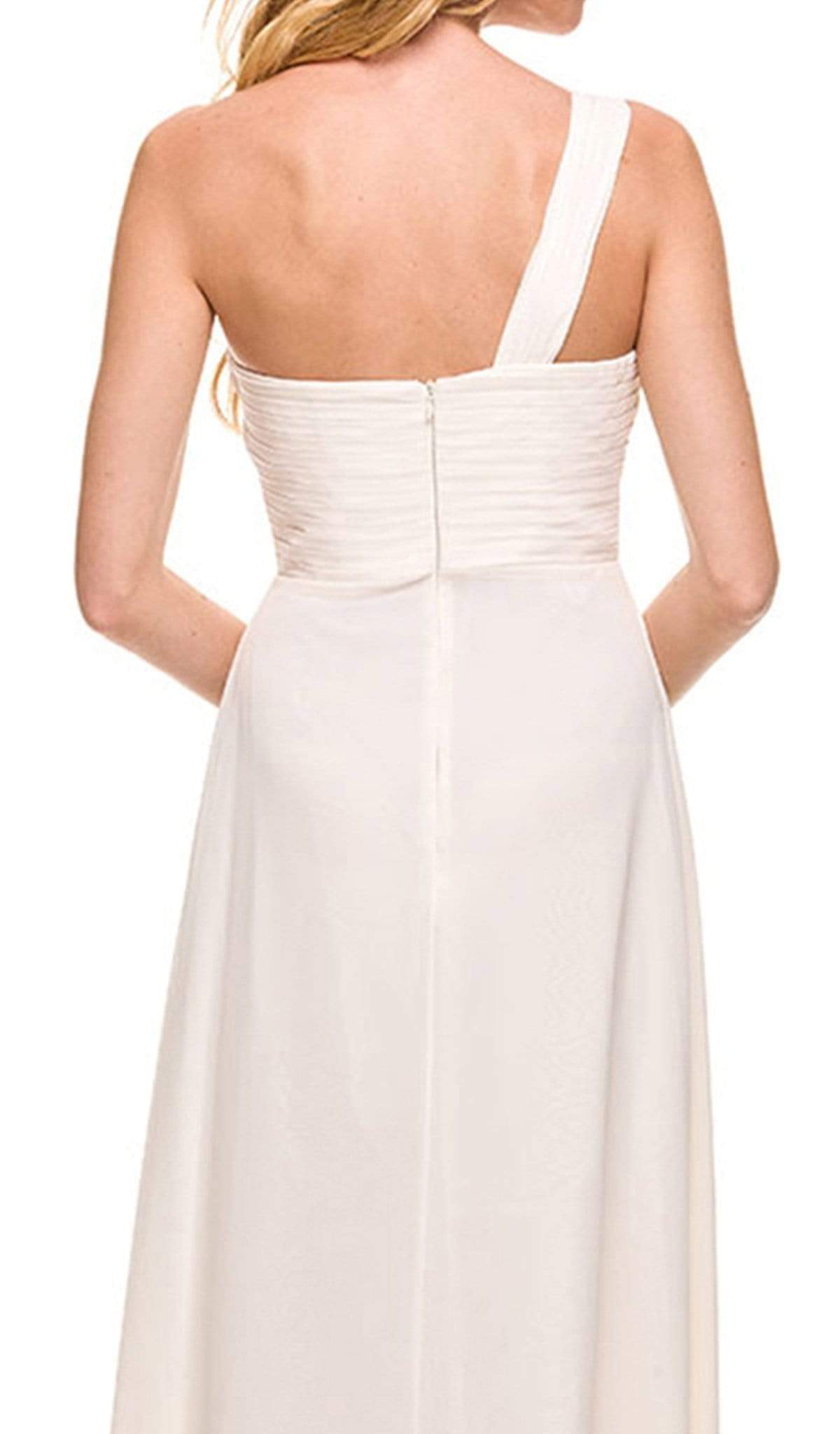 Be crowned as the belle of the ball in this sophisticated Nox Anabel 7125 creation! The ruched sweetheart bodice showcases a one shoulder strap and a mid-open back. Cinched at the waist with a pleated jewel accented band, the chiffon overlaid skirt flaunts a layered ruffled front detail that streams down to a full-length hem. Be a gorgeous sight to behold in this sheer regal Nox Anabel masterpiece. Model is wearing the Bashful Pink, Ivory and Nude colors.