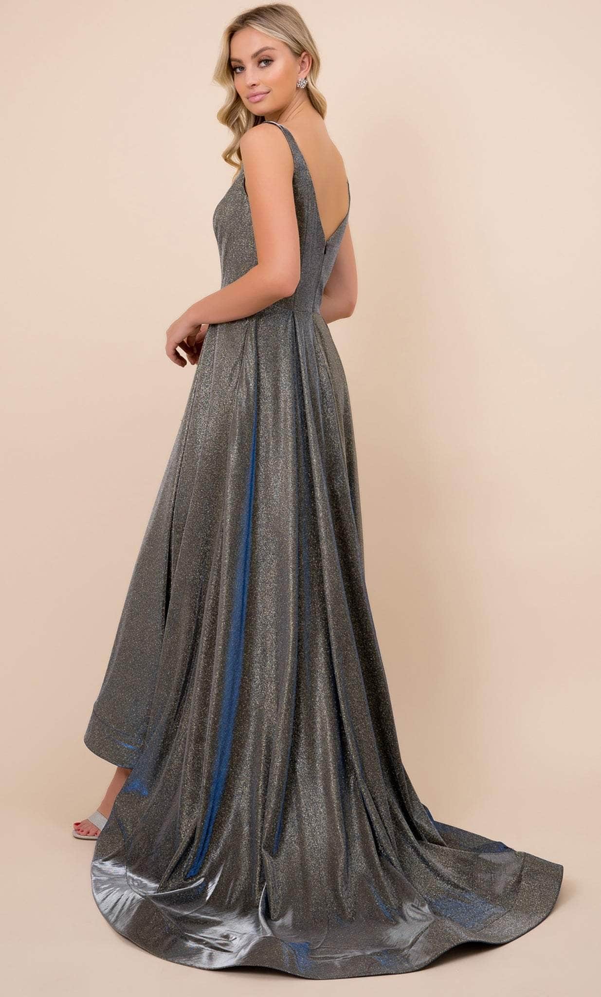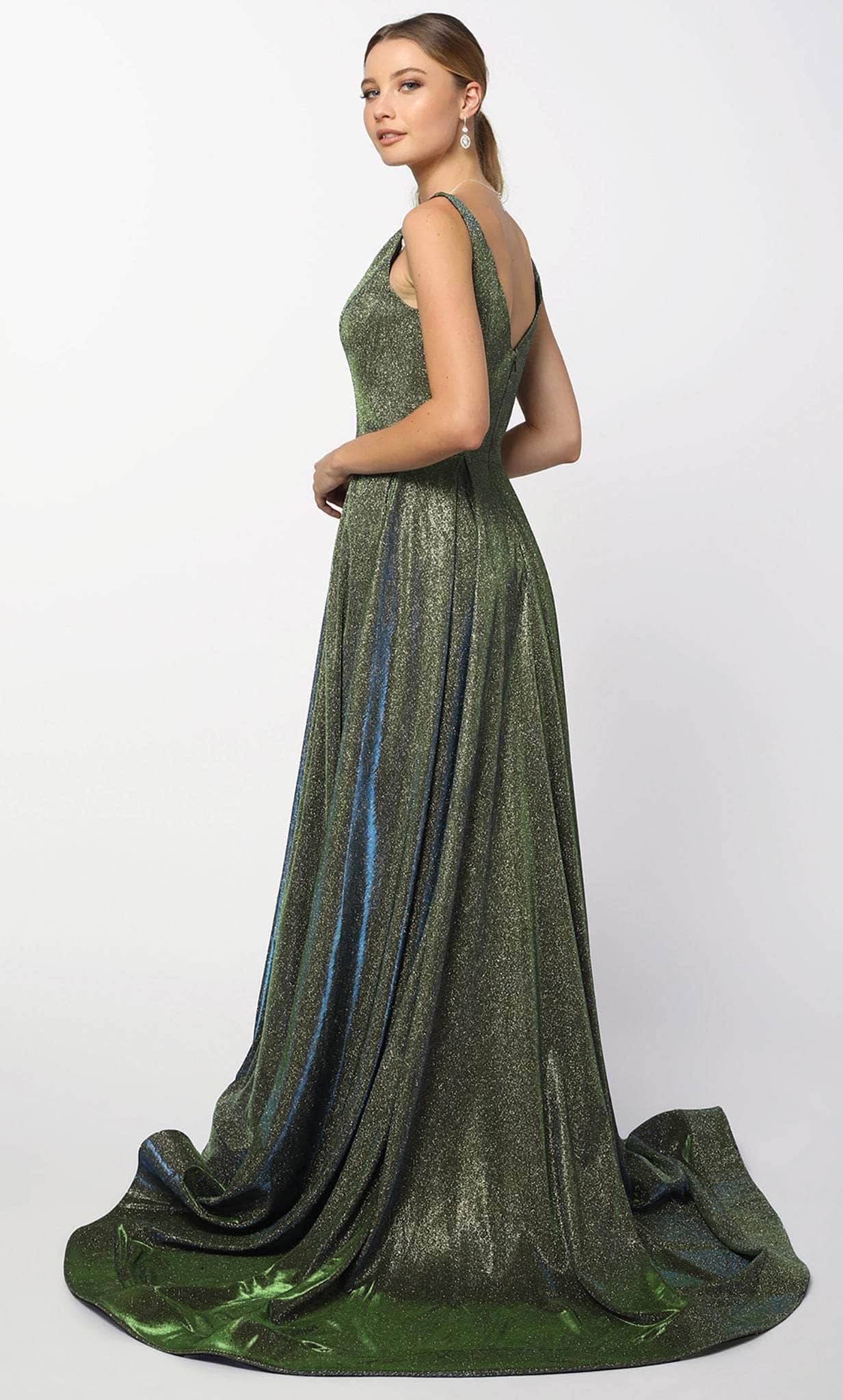 Turn yourself into a head-turning sensation by slipping into this utterly fetching Nox Anabel R274. Boasts a sleeveless, wide V-shaped neckline matched to the same shape back cut. Allover the used fabric is shimmered with glitters making you shine all day and night. The silhouette is tailored in A-line and flows into a long back style. Uses back zipper to secure this dress. Fascinate the crowd wearing this exceptional Nox Anabel R274 masterpiece. Models are wearing Green-Gold and Royal-Gold colors.