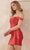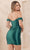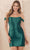Make such a stunning elegance in this Nox Anabel R799 cocktail dress. Beautifully detailed with a corset boning bodice to emphasize your figure, this breath-taking dress has an off-shoulder neckline and cap sleeves. The back is styled in a mid-open v-shaped cut with zipper closure to keep everything together. From the basque waist, the fitted skirt displays ruching and a sheath silhouette that glides to the mid-thigh hem. This Nox Anabel R799 creation is sure to display your natural beauty and grace. Models are wearing the Black, Emerald, Red, Royal Blue, and Dark Fuchsia colors.