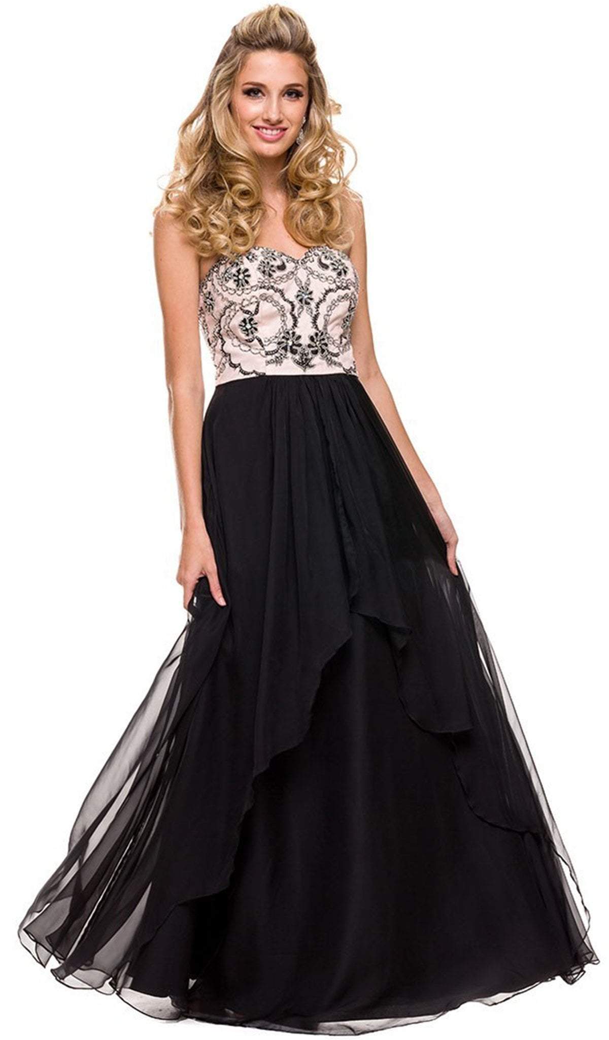 Dress to impress with this dress by Nox Anabel 8146. A stunning A-line dress, created with lovely fashion. This dress has an elegant approach with its high sweetheart neckline and A-line skirt. This dress has an embroidered bodice, and embellishments for more elegance. This dress by Nox Anabel will definitely flatter from every angle. Model is wearing the Black/Nude and Fuchsia/Nude colors.