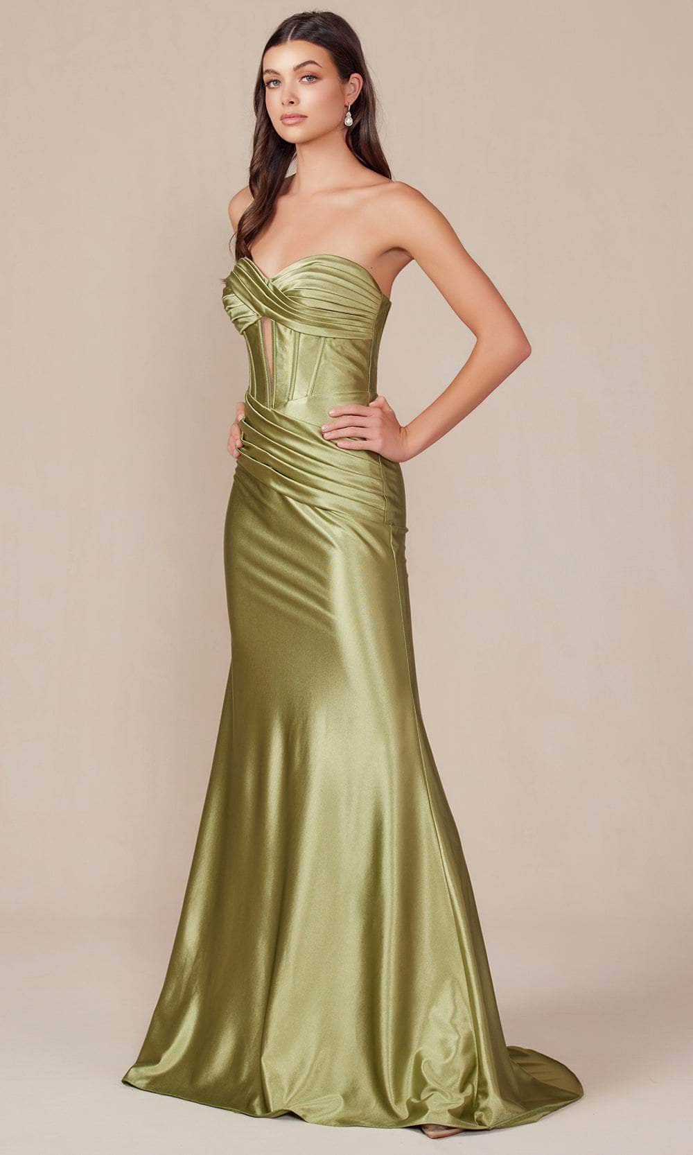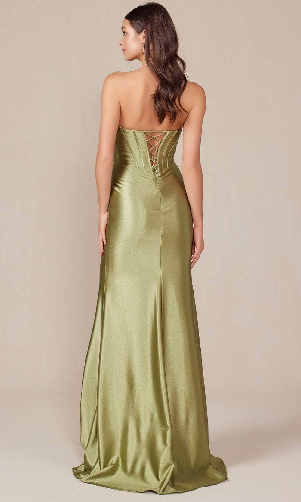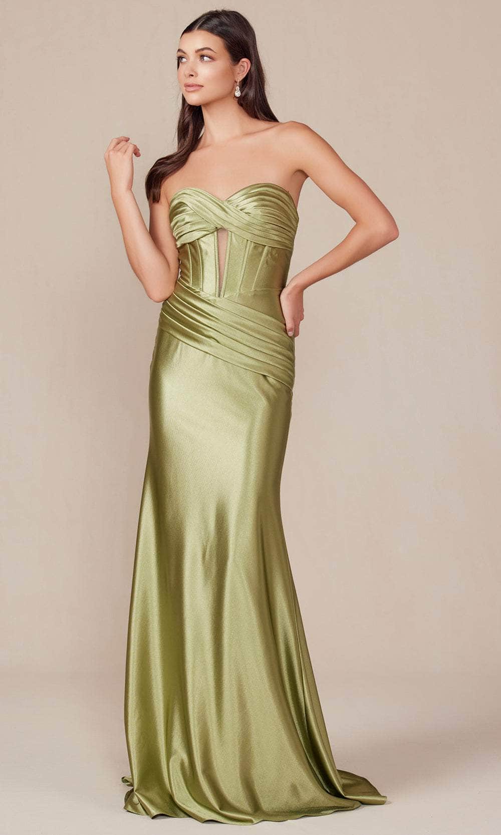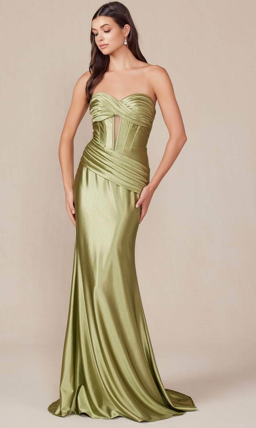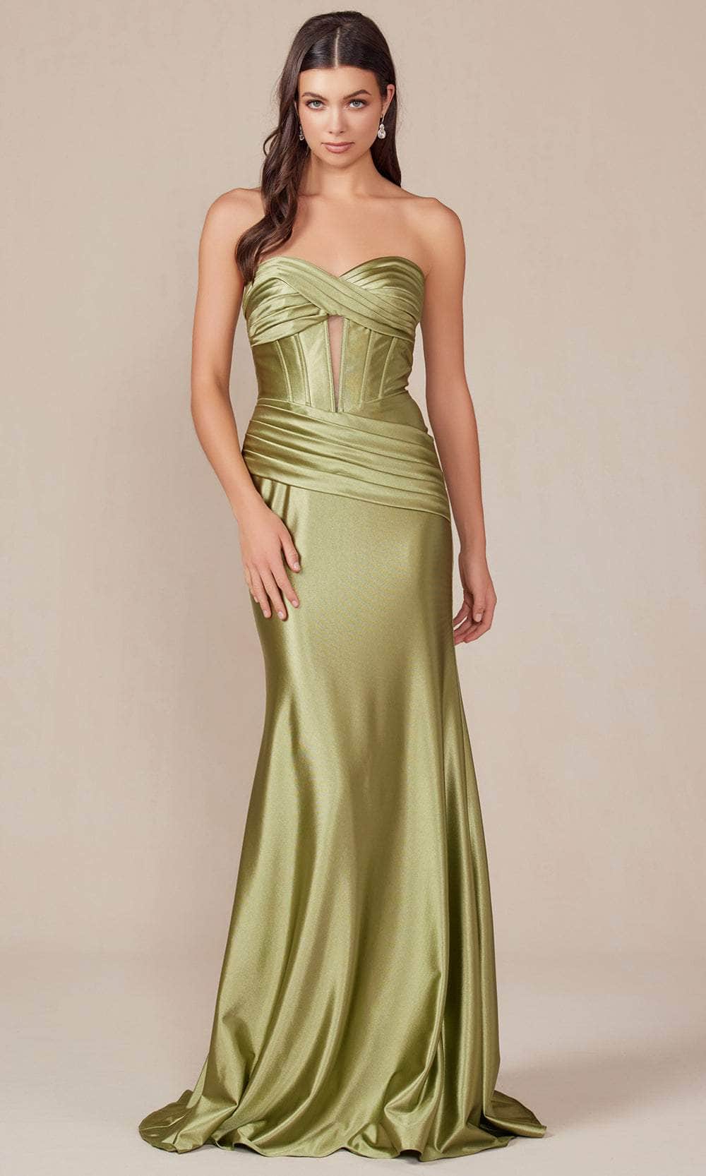 Make your grand entrance in this simple yet elegant Nox Anabel T1500 evening dress. Everyone will admire you as you flaunt in this figure-flattering dress, showcasing an endearing strapless sweetheart neckline. Its back is captivating with its mid-open style, enclosed by a lace for a graceful finish. The top also displays boning details as well as a V-notch/cutout. Its waist also reveals a ruching detail in an asymmetrical manner. Additionally, a sheath silhouette is evident down to its full length, making you look extra sophisticated in every angles. Show off your classy style when you wear this Nox Anabel T1500 masterpiece. Models are wearing Black, Gold, Ocean Blue, Red, Royal Blue, and Sage Green colors.