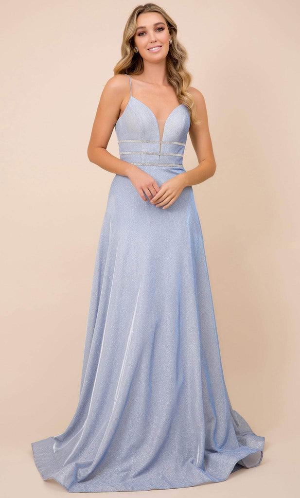 Exude that vibrant personality in this ravishing Nox Anabel T312. Perfect for girls who wants to beautiful and wear the most comfortable one at the event. Featuring a glossy-glittered fabric throughout, this piece presents using thin spaghetti straps and plunging neckline. Around the waist is a triple band to accentuate and contour your figure. The A-line silhouette ends in a sweep train walk. Radiate a fresh style as you orchestrate a dramatic entrance in this radiant Nox Anabel T312. Models are wearing Blue and Lilac colors.