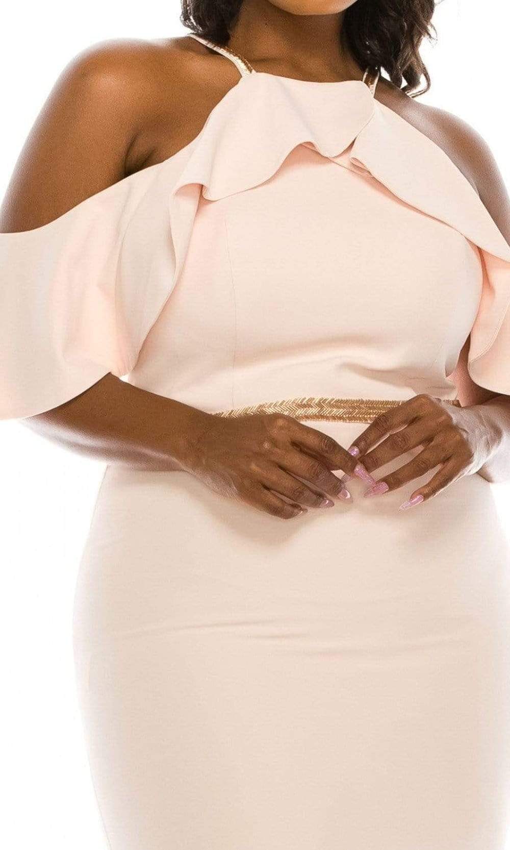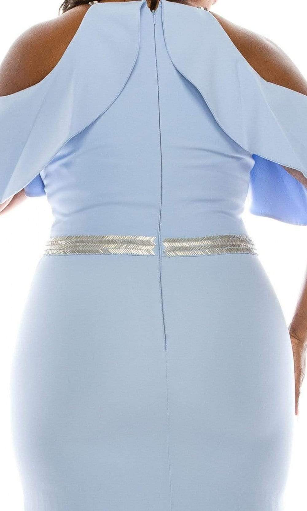 Odrella - 4513 Halter Ruffles Cold Shoulder Beaded Trumpet Gown