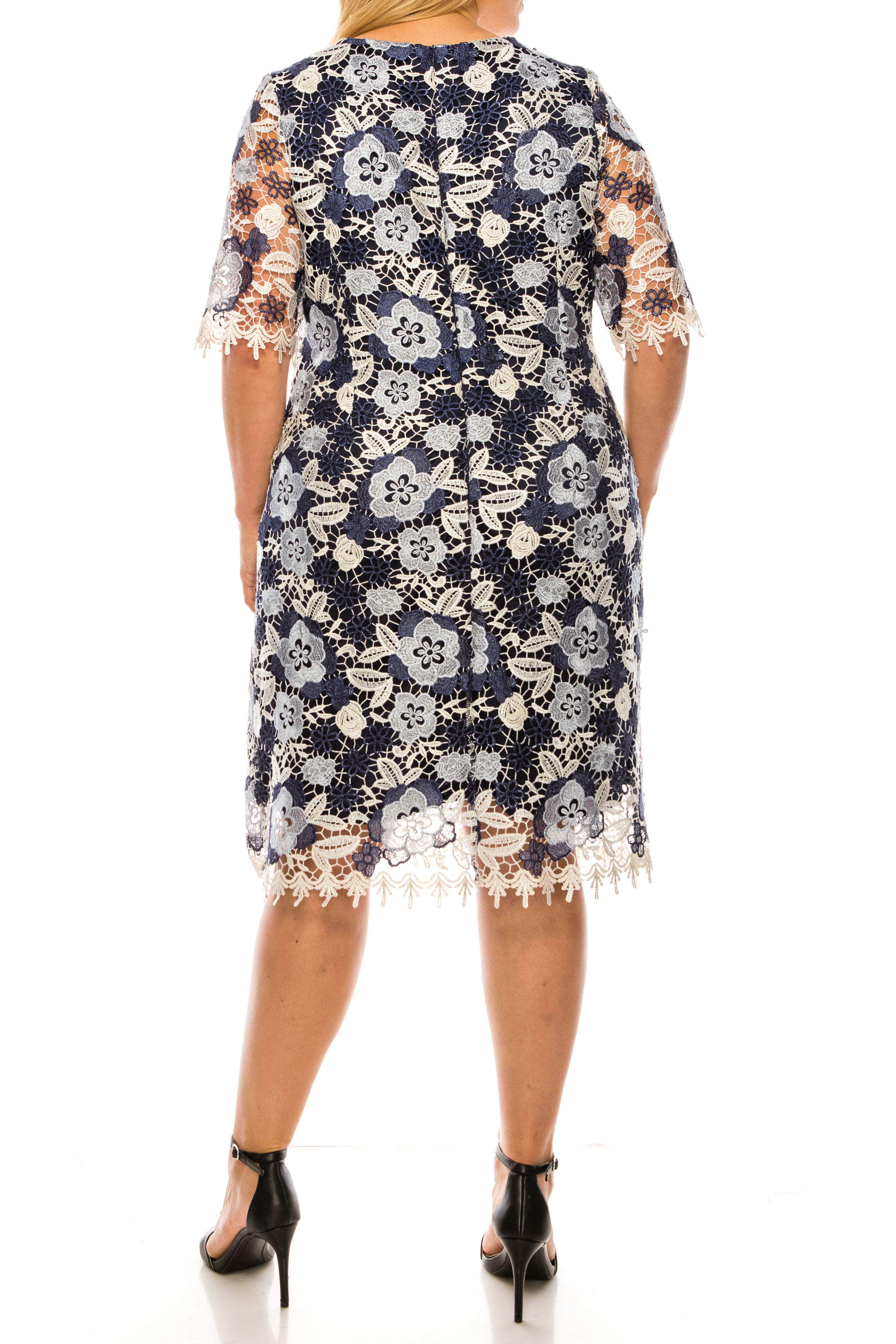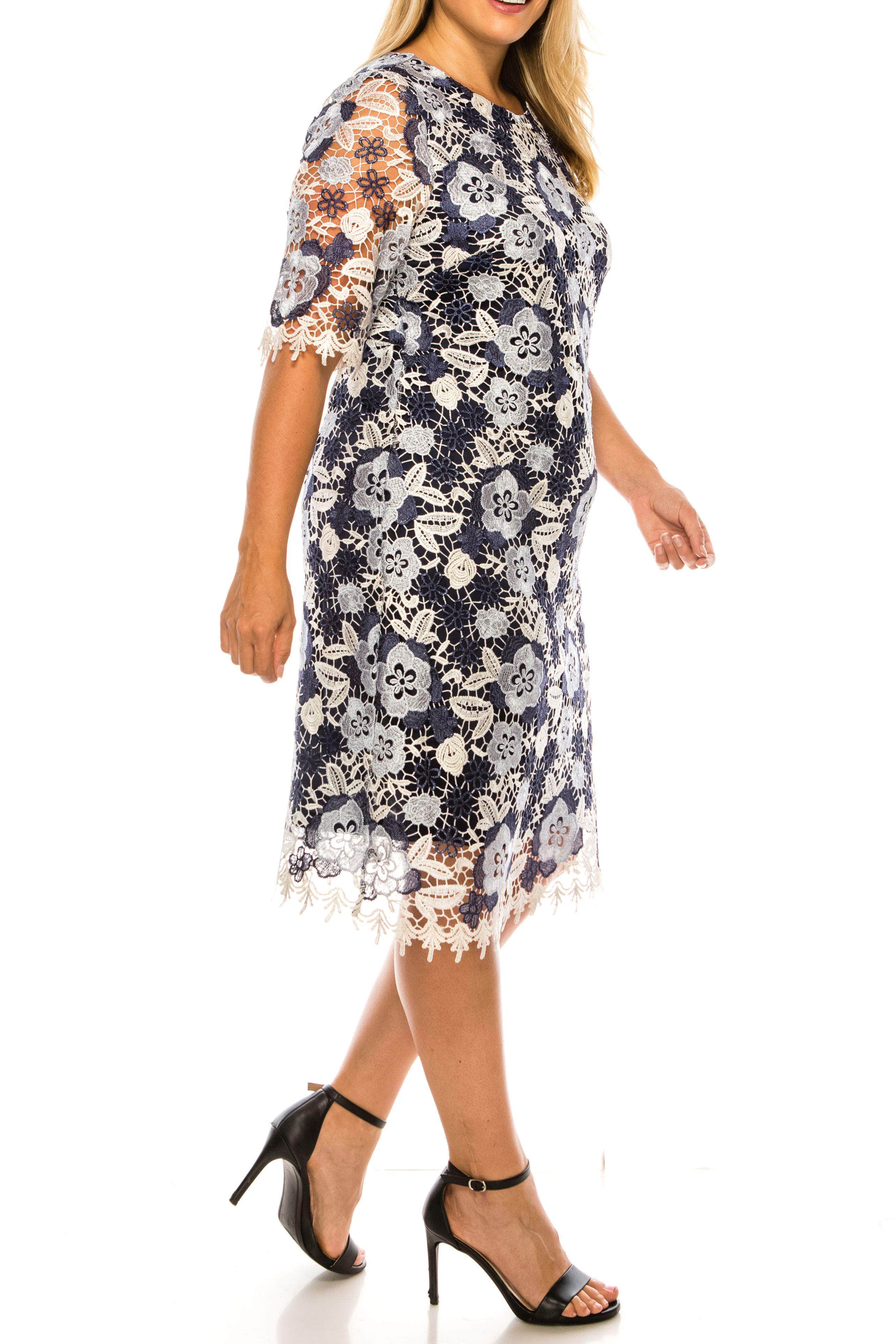 Portray the rich variety in design of this lace dress by Phase Seven CHE033166. This floral lace fabric, has the beauty of flourished delicate jewel neckline framed with elbow length sleeves and a full back with natural waist and a short hemline. Another great creation by Phase Seven. At Couture Candy, looking gorgeous and making head turns have been made easy by our discount dresses on sale from hottest and trendiest evening gowns, special occasions, prom dresses, formal gowns, mother of the bride, sweet 16, and cocktail dresses. Model is wearing navy.