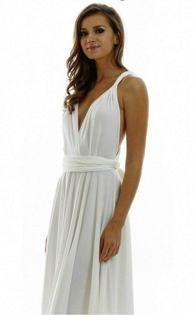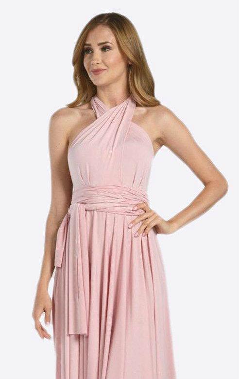 Infuse an exceptional and personal feel with the versatile wrap strap infinity formal dress by Poly USA 7022. This long convertible Jersey Dress features a fitted bodice once worn, with flowing full length skirt and long straps that give this dress beautiful many ways to tie and create more than 20 different looks. This brilliant dress by Poly USA dress is perfect for travel, destination weddings, bridesmaids, prom and cocktail parties.