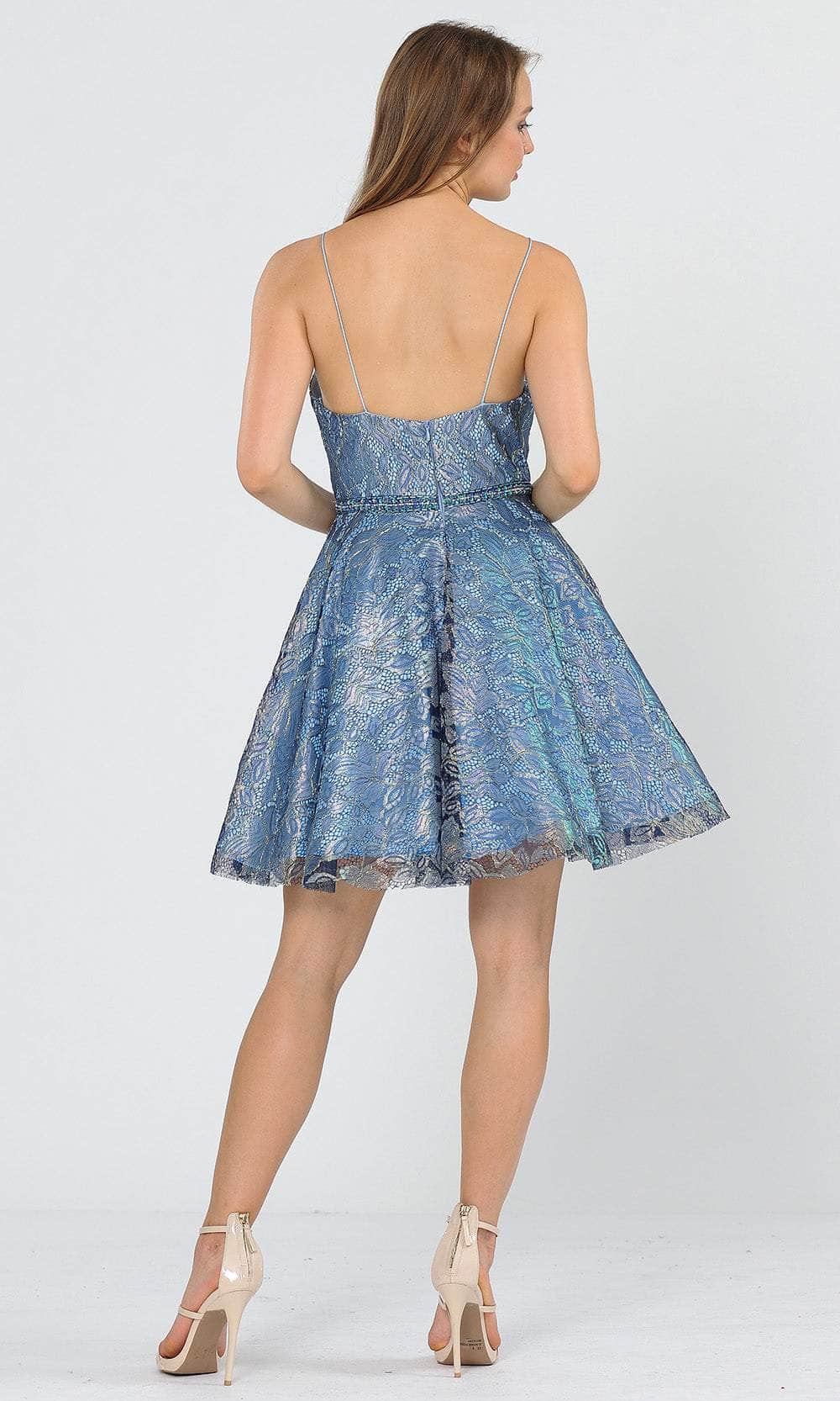 Be utterly captivating in Poly USA 8410, a mesmerizing dress featuring glitter floral mesh and a high square neckline adorned with delicate spaghetti straps. Its rhinestone belt accentuates the waist, while the open back and zipper closure ensure a perfect fit. The A-line silhouette skirt adds a graceful touch, complete with convenient side pockets. Embrace your irresistible allure in this enchanting Poly USA 8410, perfect for any occasion where elegance and charm take center stage. Models are wearing Champagne, Navy/Blue, Magenta/Blush colors.