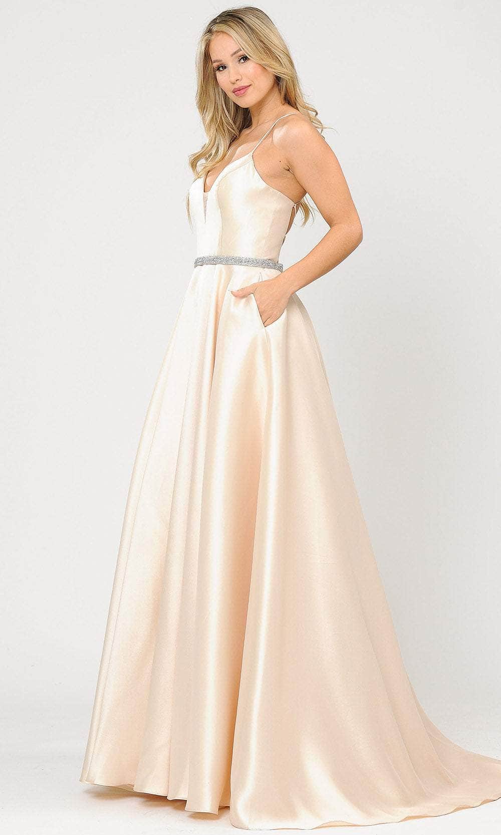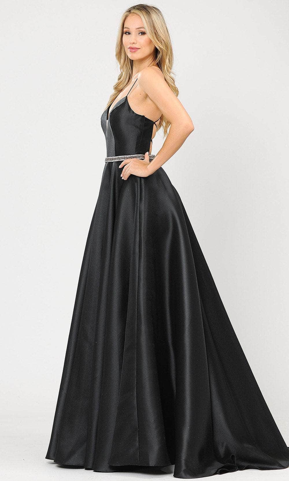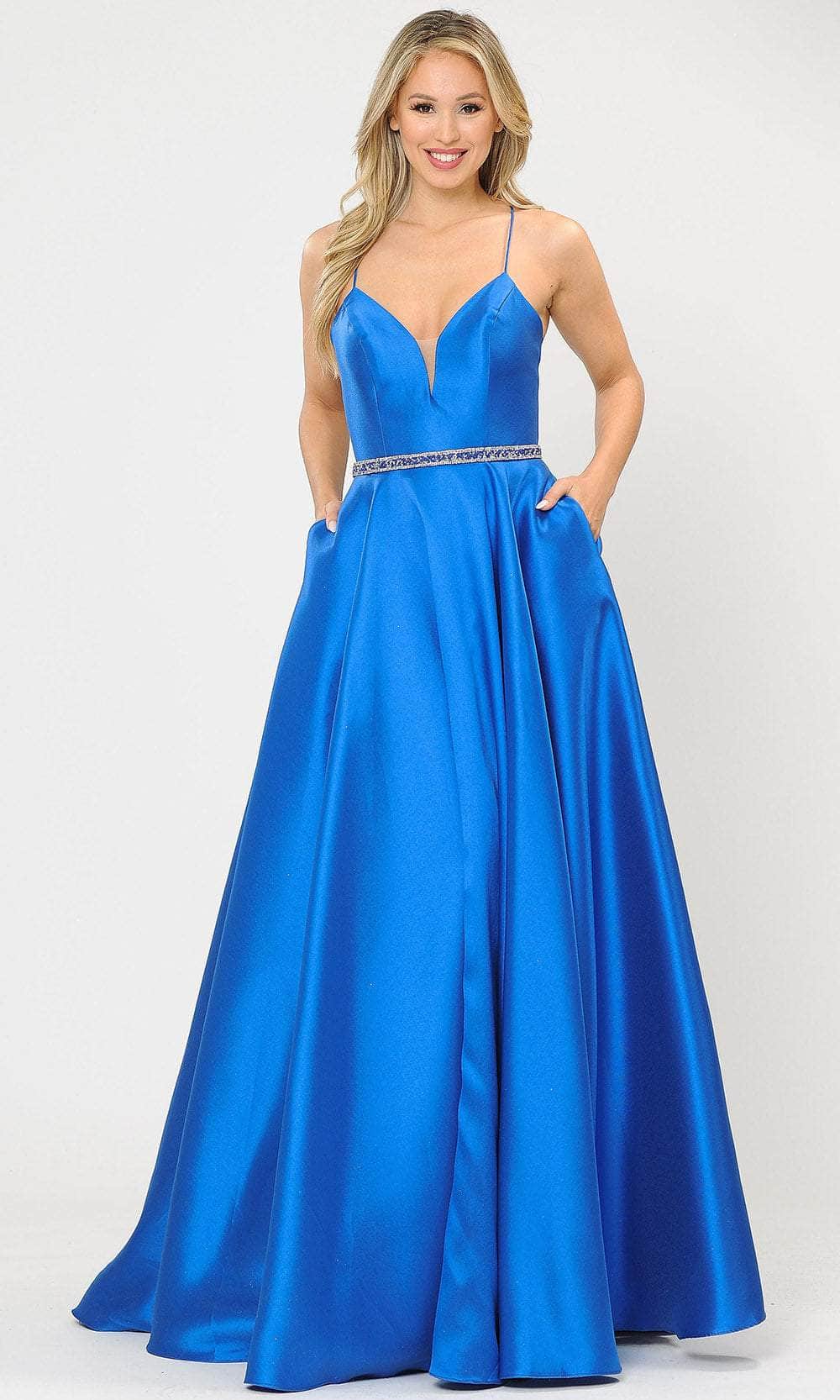 Sparkle and shine in a detailed gown from Poly USA 8688.This silky satin gown has a plunging V-neckline with mesh lining and spaghetti straps that lead to a chic lace-up open back. The A-line silhouette is embellished with side pockets and a rhinestone belt, while the skirt flares out to a sweep train. This Poly USA dress boasts modern elegance in a timeless silhouette. Poly USA dresses are for every girl who wants to flaunt her unique style and has an eye for fashion. This assortment of special occasion dresses is breathtakingly beautiful that is sure to slay the crowd at any event. Model is wearing Fuchsia, Lilac, Champagne, Red, Black, and Royal Blue colors.