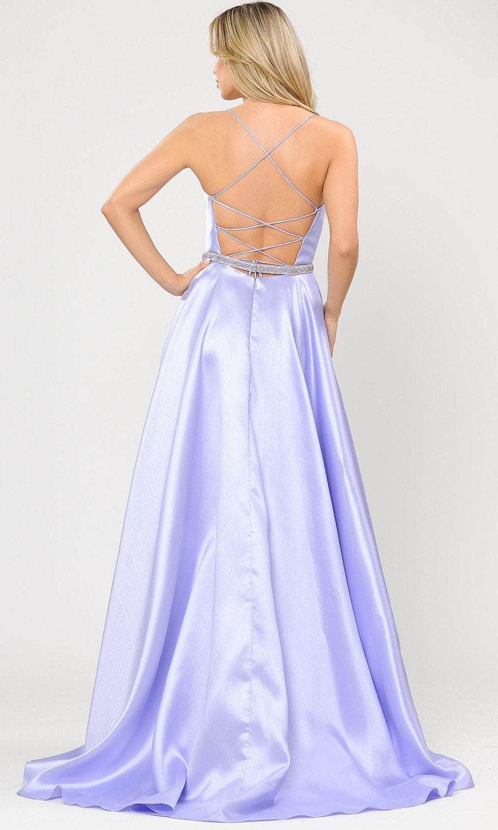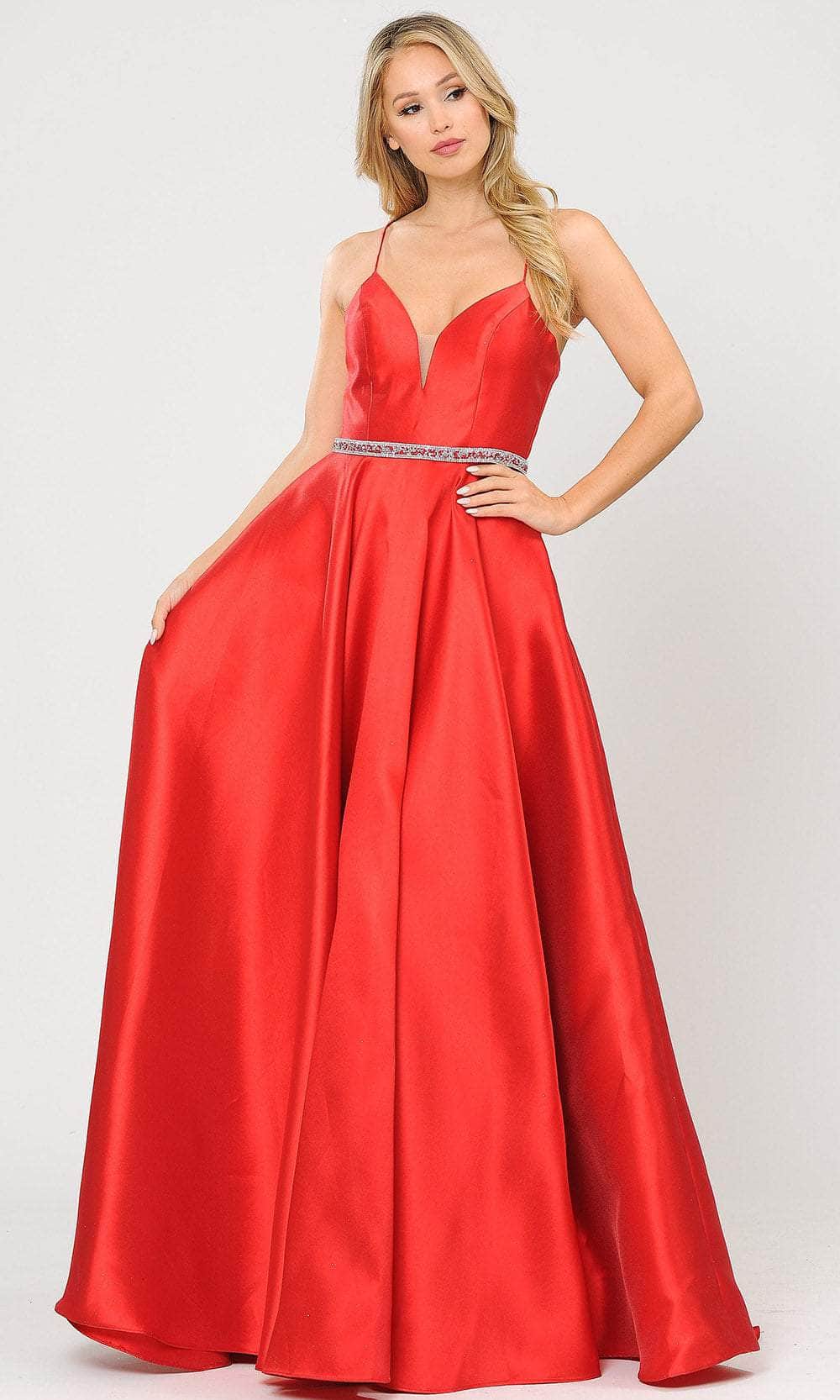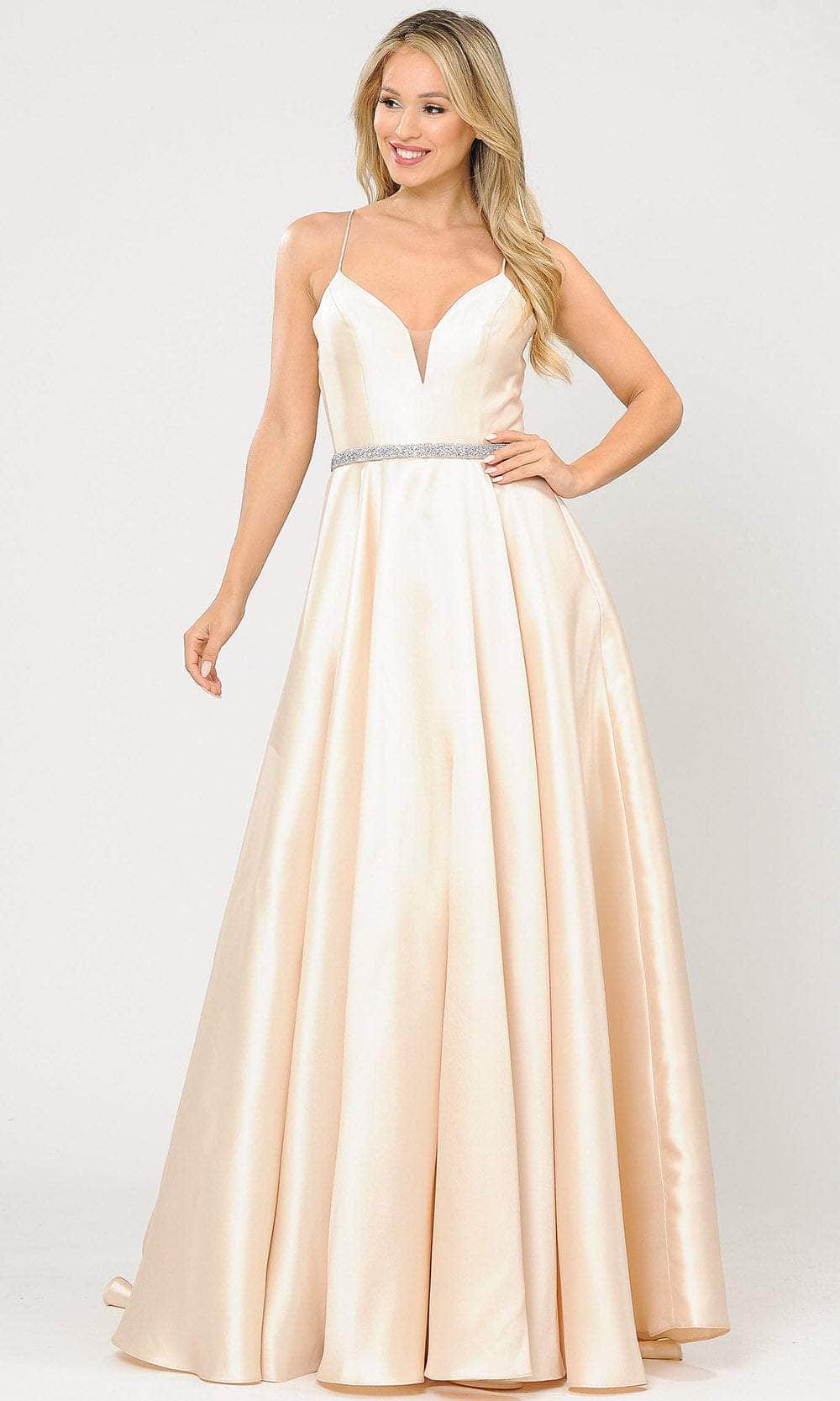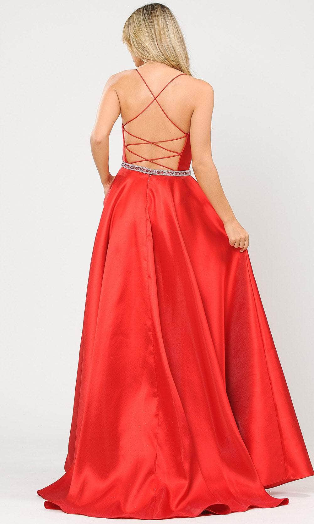 Sparkle and shine in a detailed gown from Poly USA 8688.This silky satin gown has a plunging V-neckline with mesh lining and spaghetti straps that lead to a chic lace-up open back. The A-line silhouette is embellished with side pockets and a rhinestone belt, while the skirt flares out to a sweep train. This Poly USA dress boasts modern elegance in a timeless silhouette. Poly USA dresses are for every girl who wants to flaunt her unique style and has an eye for fashion. This assortment of special occasion dresses is breathtakingly beautiful that is sure to slay the crowd at any event. Model is wearing Fuchsia, Lilac, Champagne, Red, Black, and Royal Blue colors.