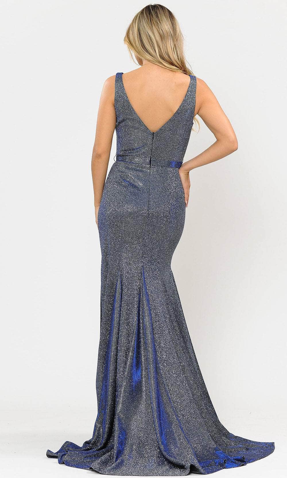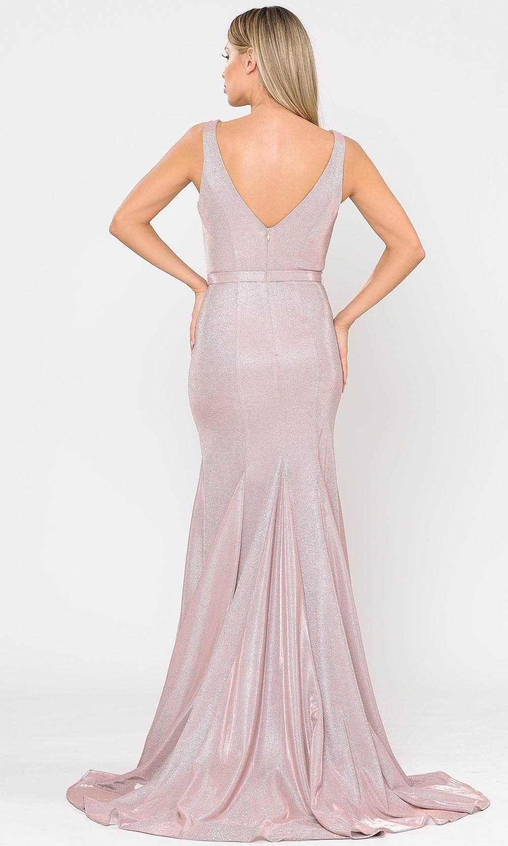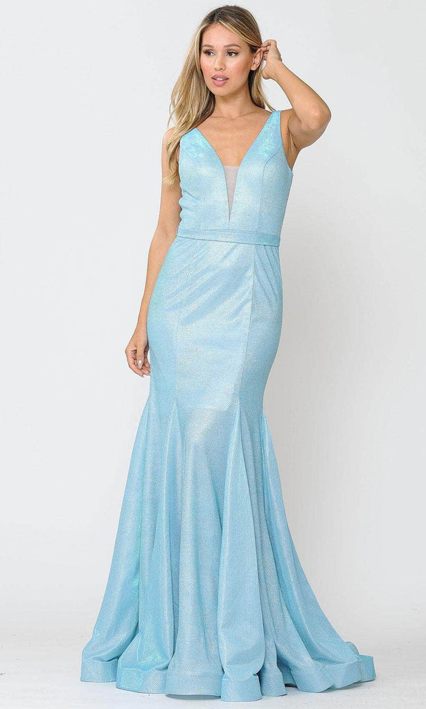 Claim that look of sophistication wearing this glamorous creation by Poly USA 8704. Fabulously crafted in shimmering fabric and framed in seam-sculpted silhouette, this spectacular piece shows a sleeveless, deep V-neckline with illusion inset and a defined waistband to accentuate the curves. An equally beautiful V-cut shaped opens the back with zipper closure. The form flattering skirt flares elegantly down to a full-length surrounded by beautiful godets perfected in a sweep train finish. Shimmer and shine in pure opulence in this fascinating Poly USA creation. Poly USA dresses are for every girl who wants to flaunt her unique style and has an eye for fashion. This assortment of special occasion dresses is breathtakingly beautiful that is sure to slay the crowd at any event. The models are wearing Blue, Magenta, Royal and Rose Gold colors.