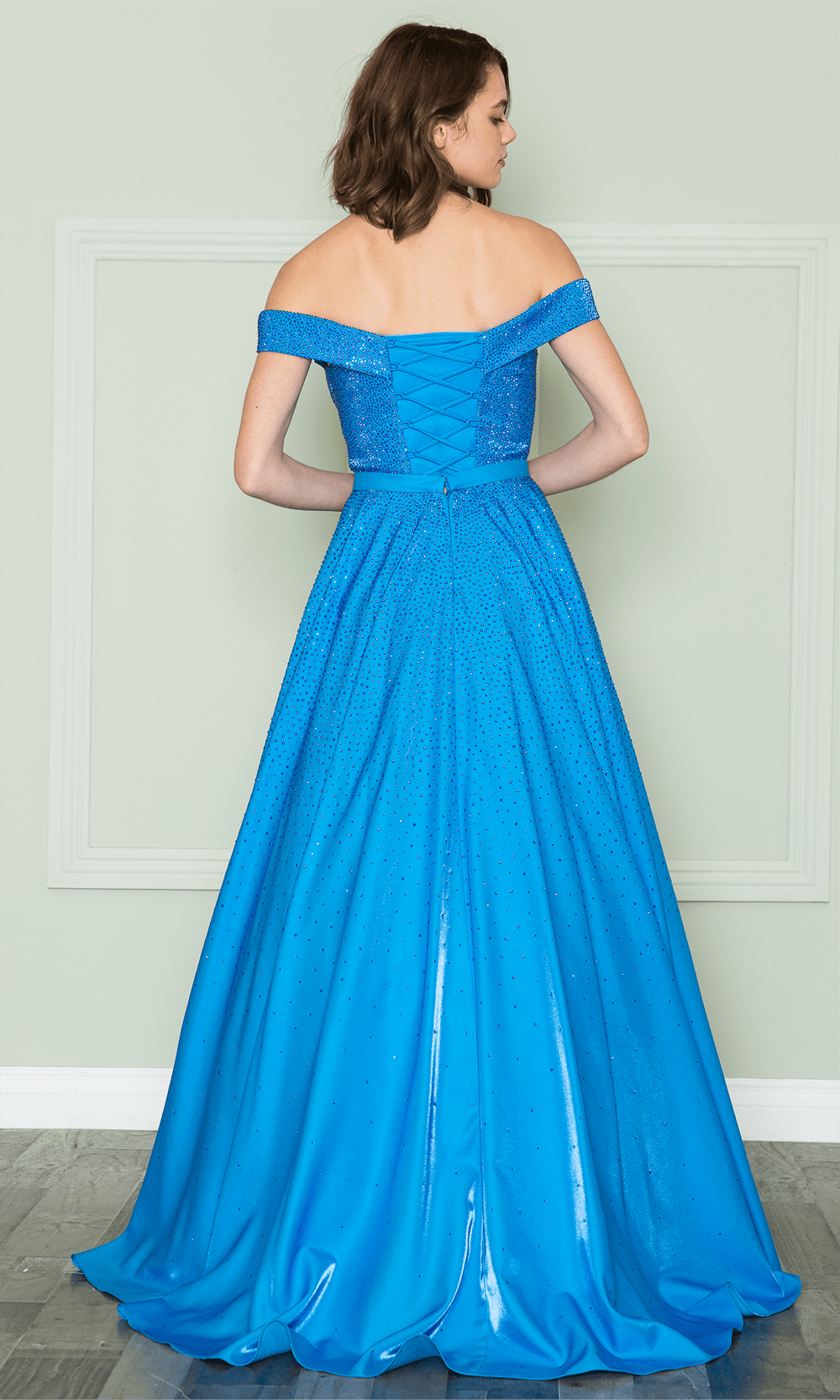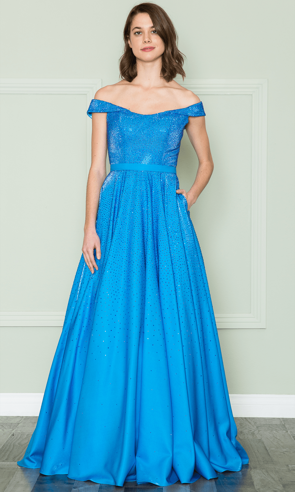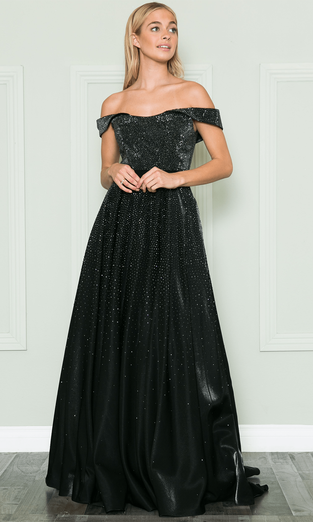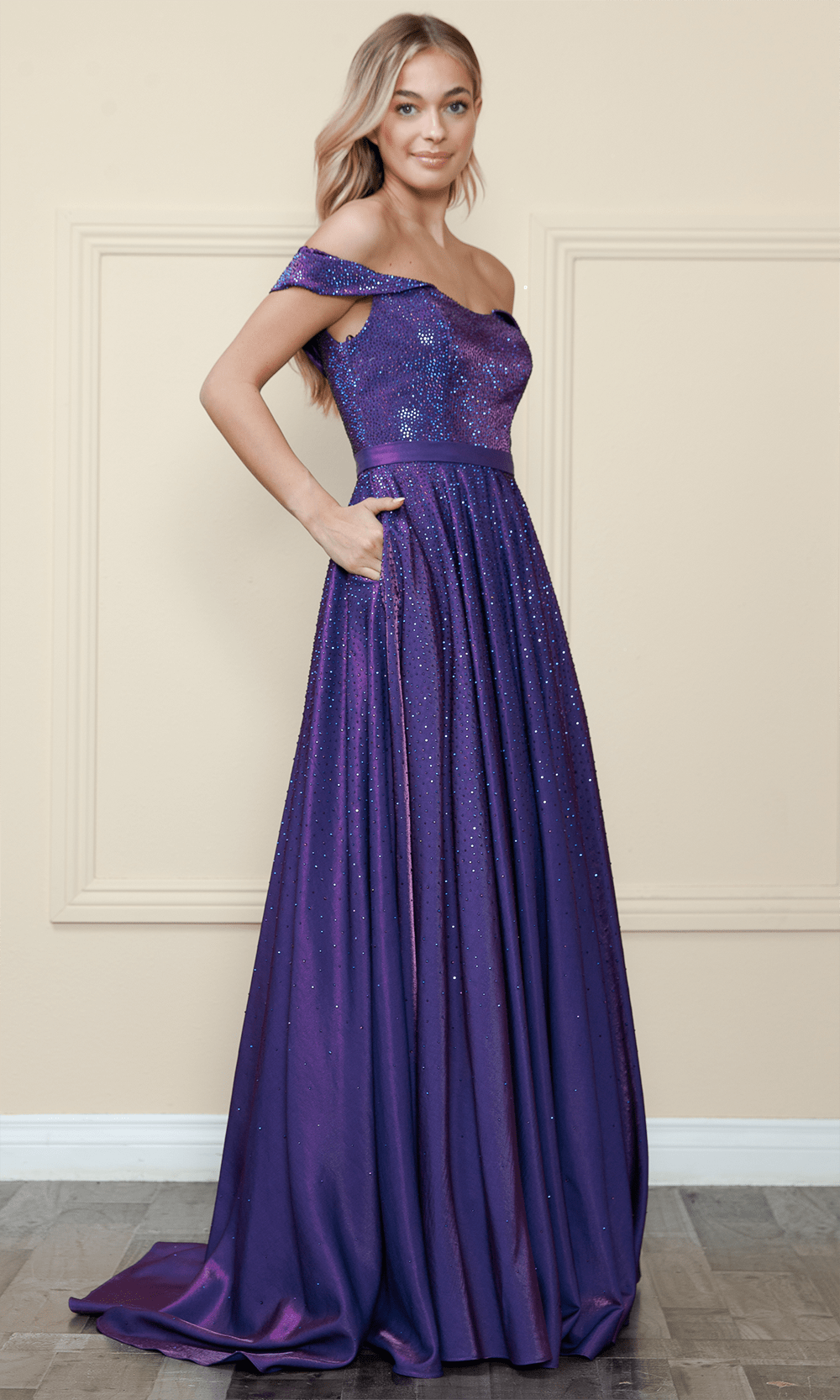 Poly USA 8890 - Off Shoulder Iridescent A-Line Gown