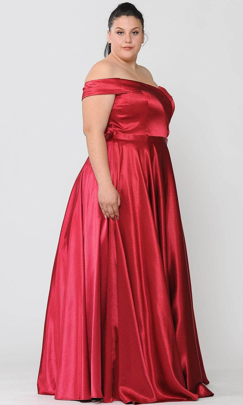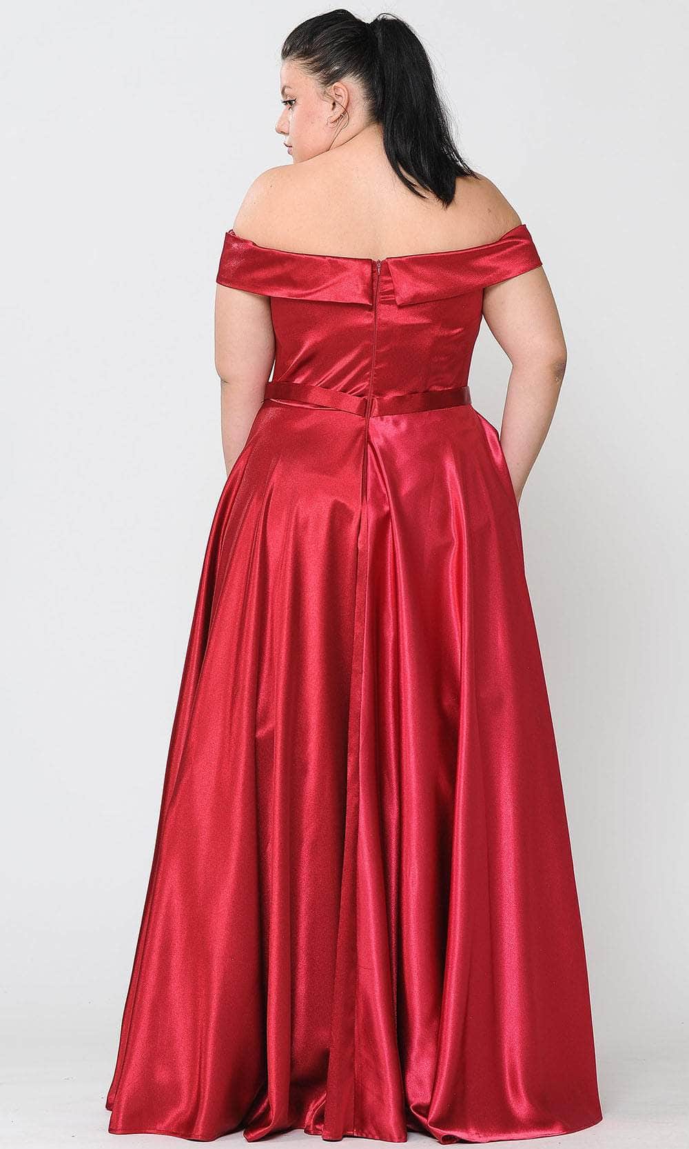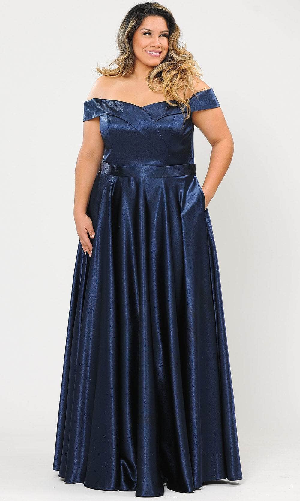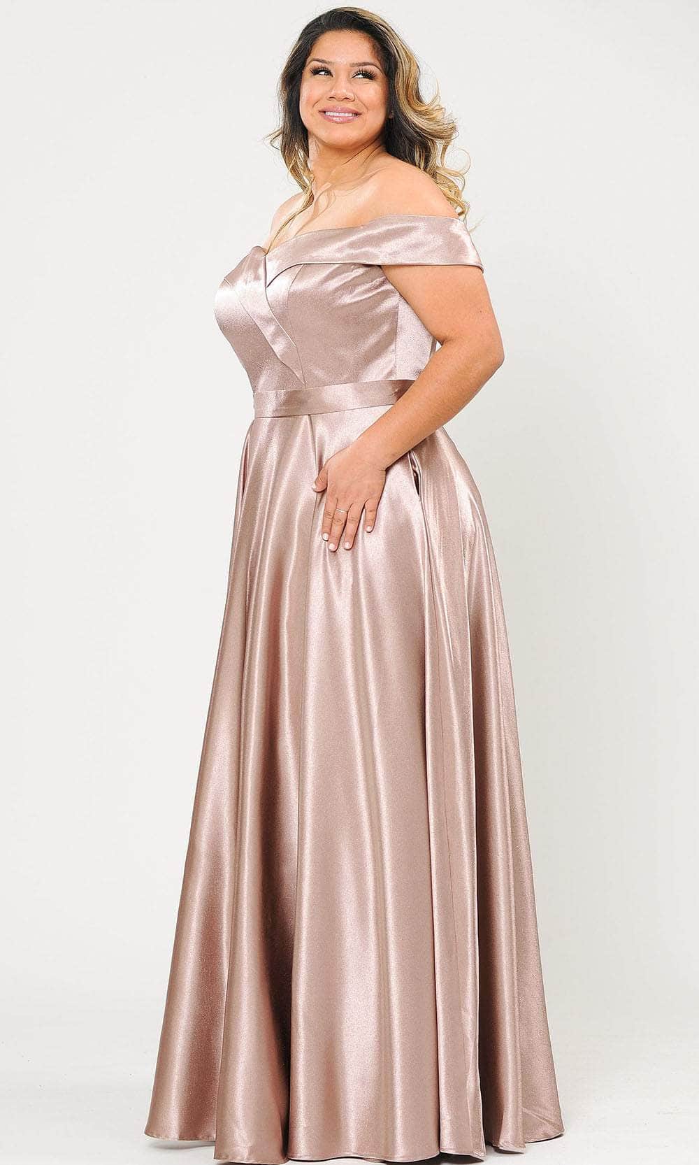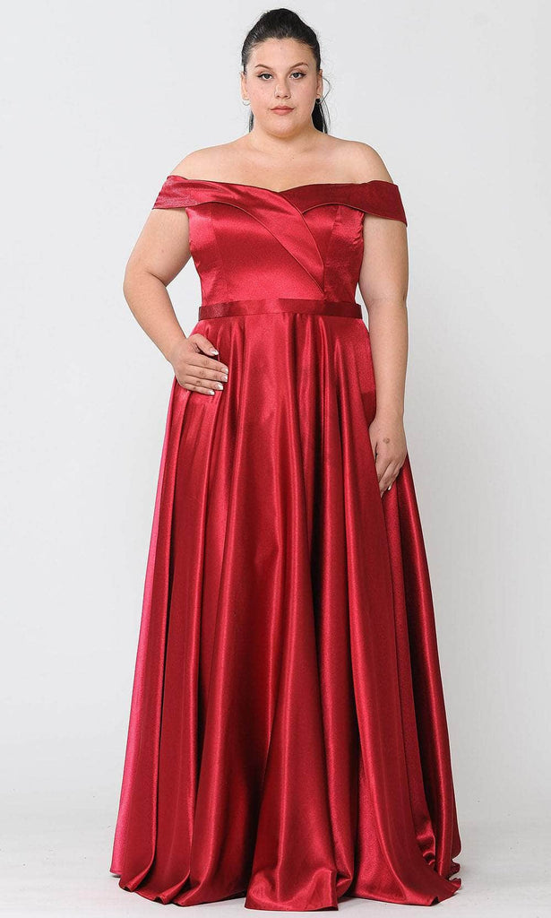Go for a timeless and sophisticated look wearing this prominent dress by Poly USA W1032 creation. This luxurious long dress showcases an off-shoulder sleeves and a semi-sweetheart neckline on a fitted bodice with fold accents. A thin waistband is crowned on the A-line silhouette that naturally falls down into floor-length hem in a sweeping train. Leave everyone speechless when you enter the room in this Poly USA creation. Poly USA dresses are for every girl who wants to flaunt her unique style and has an eye for fashion. This assortment of special occasion dresses is breathtakingly beautiful that is sure to slay the crowd at any event. The models are wearing Mocha, Navy, Plum and Silver colors.