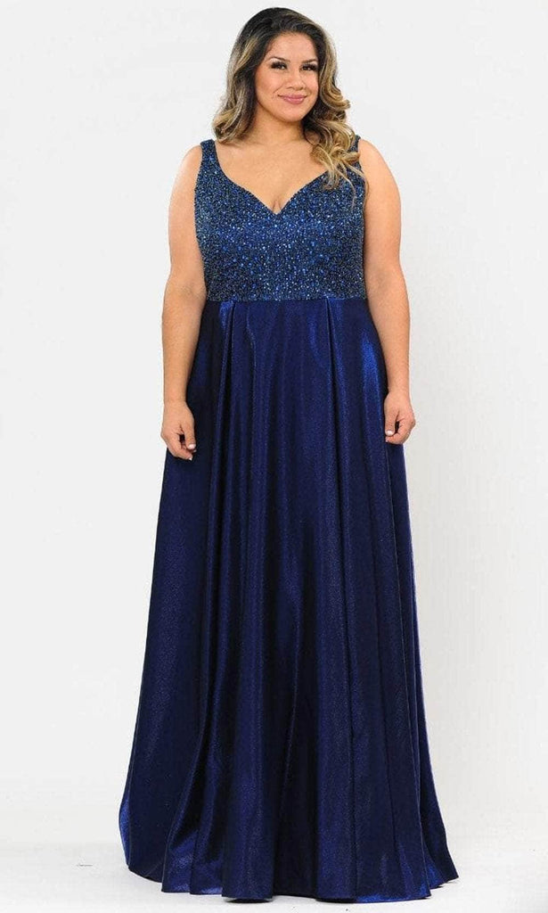 Glow with utmost beauty on your upcoming event in this exquisite Poly USA W1066 creation. Embellished with a crust of tonal beadwork on its sleeveless bodice, this gown exhibits a v-neckline and a v-styled back. Flourishing a detachable waist band and pleats that cascade into an A-line silhouette, this ensemble parades a floor grazing train. Look divine from all angles in this iridescently rendered Poly USA masterpiece. Poly USA dresses are for every girl who wants to flaunt her unique style and has an eye for fashion. This assortment of special occasion dresses is breathtakingly beautiful that is sure to slay the crowd at any event. Models are wearing the Navy and Red colors.