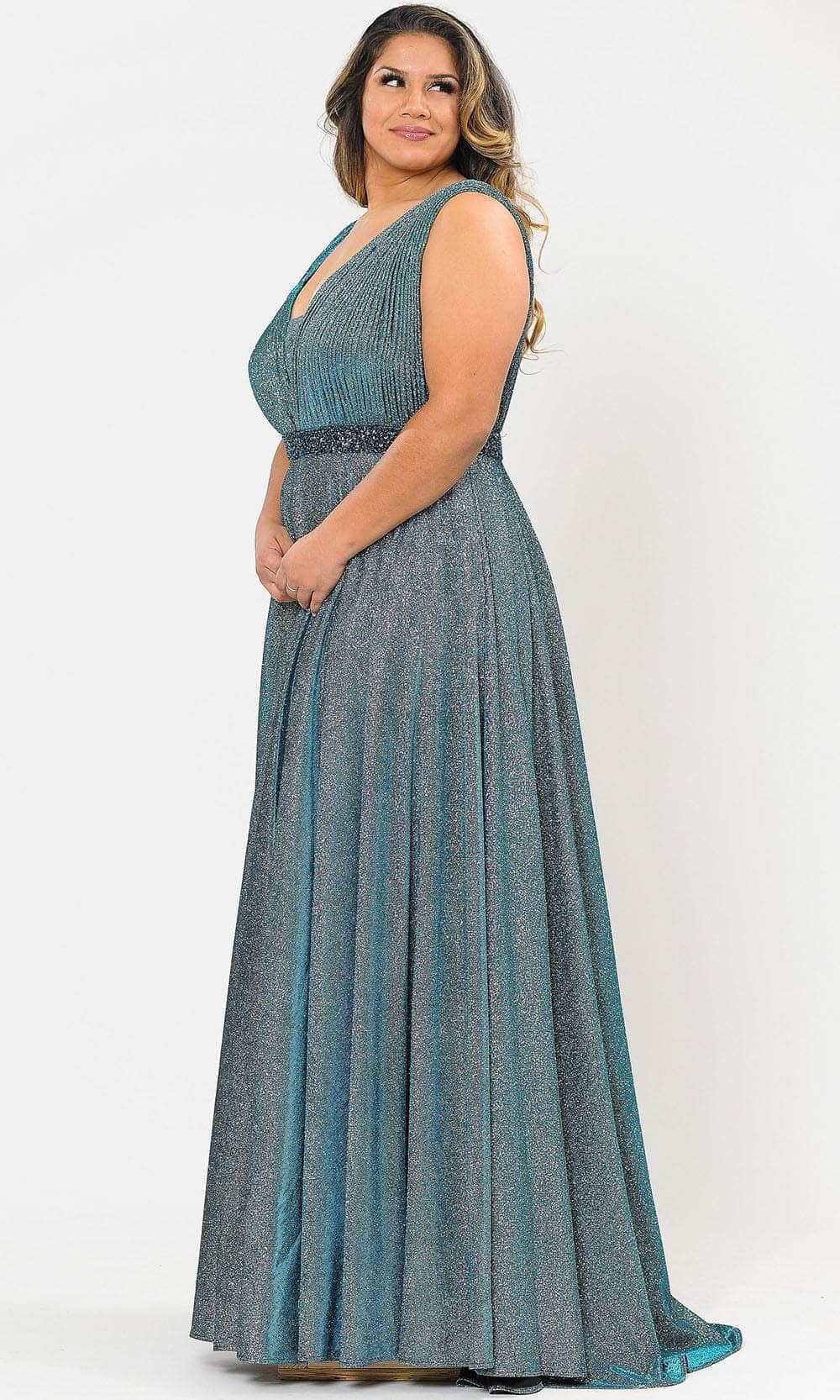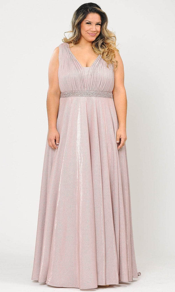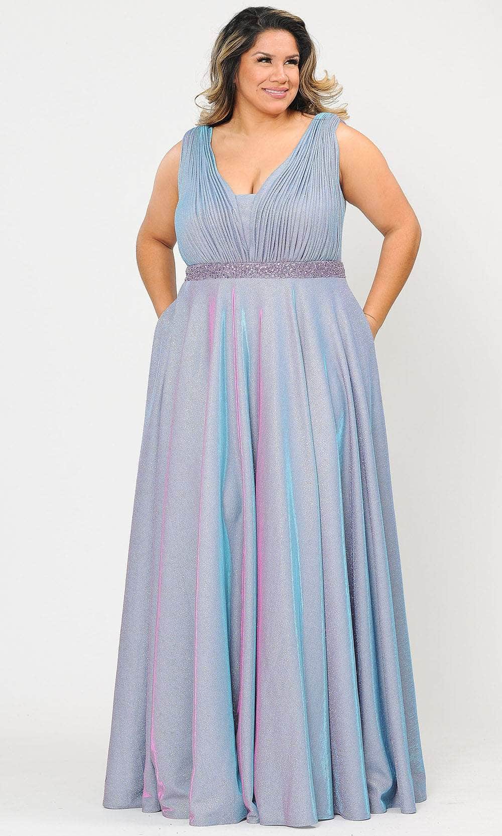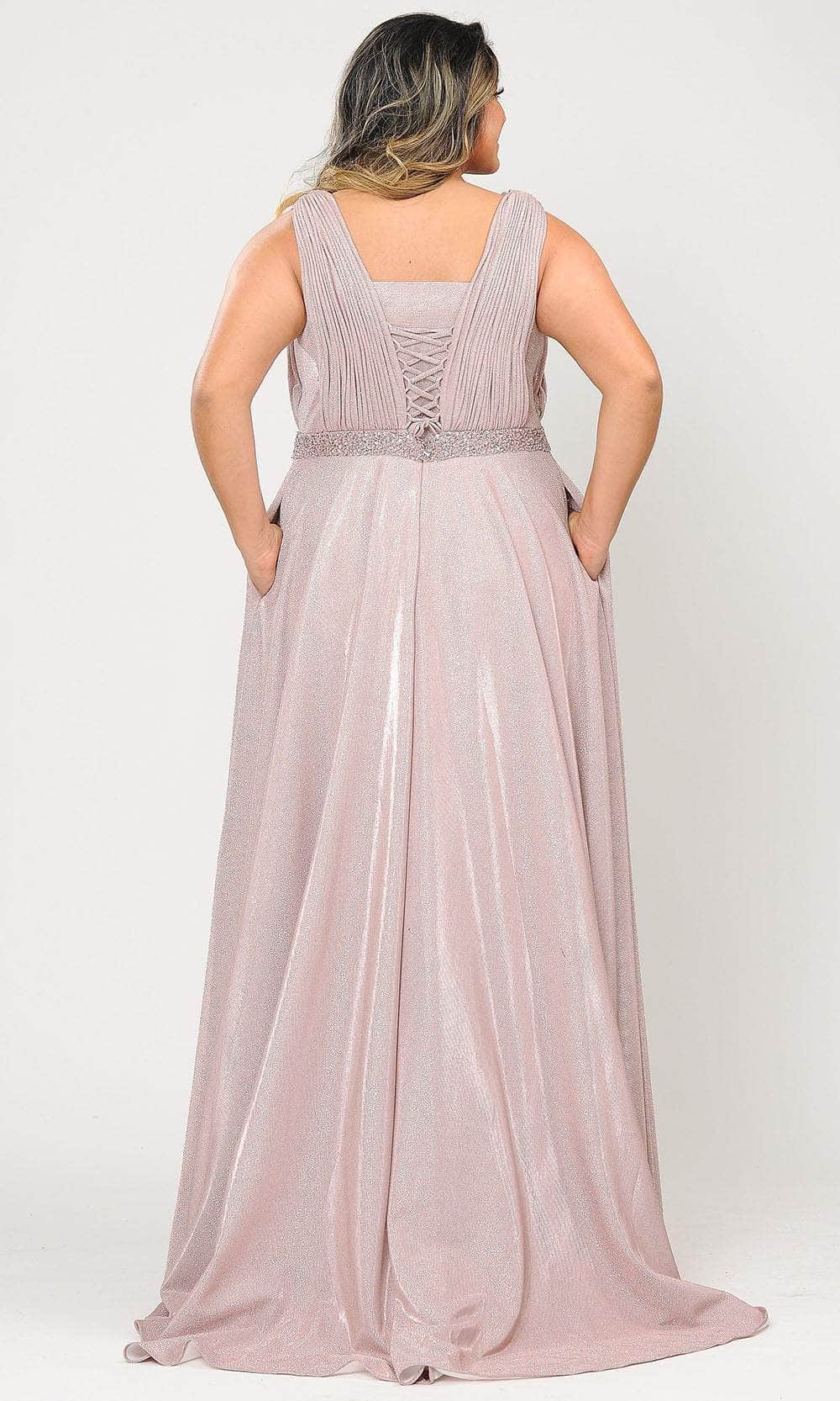 Get on the best-dressed lists in this lavish gown from Poly USA W1082. This beautifully created long gown gives a Grecian vibe with its style and ruching details. Framed in a sleeveless plunging V-neckline and a beaded waistband. A midrise back with lace-up tie and zipper closure secures the bodice. Side pockets add the functionality of the dress as the skirt flows down into a floor-length hem with a sweep train finish. This Poly USA is simply gorgeous! Poly USA dresses are for every girl who wants to flaunt her unique style and has an eye for fashion. This assortment of special occasion dresses is breathtakingly beautiful that is sure to slay the crowd at any event. The models are wearing Lavender, Rose Gold, Teal and Black/Silver colors.