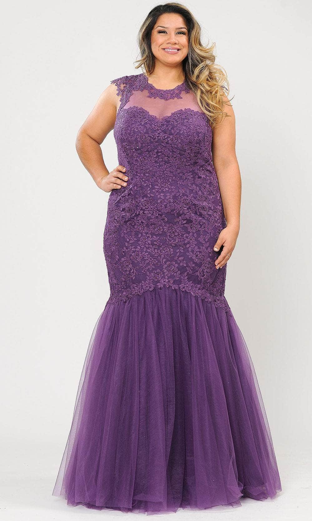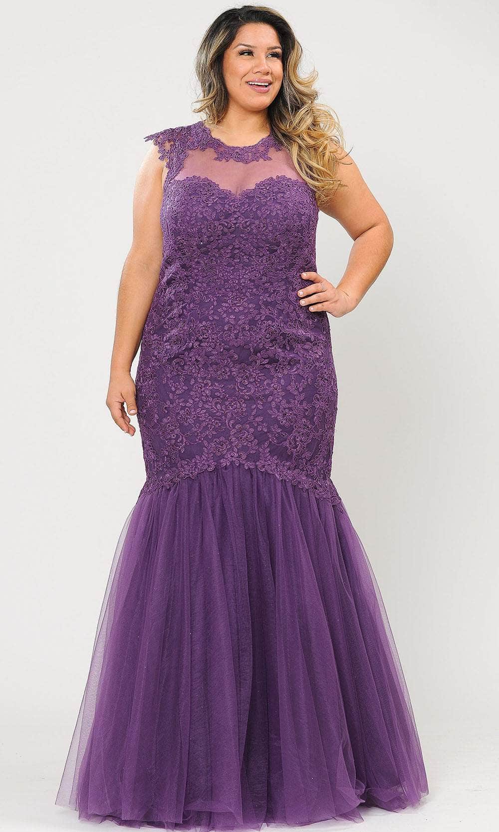Create a perfect evening wearing this elegant Poly USA W1084 creation. Designed in a beautiful floral applique embroidery, this sleeveless fitted bodice showcases an illusion jewel neckline over a distinct sweetheart lining. The shimmering tulle skirt gorgeously drifts to the floor. Capture the glamour in this Poly USA creation. Poly USA dresses are for every girl who wants to flaunt her unique style and has an eye for fashion. This assortment of special occasion dresses is breathtakingly beautiful that is sure to slay the crowd at any event. The models are wearing Burgundy, Mauve, Navy and Purple colors.