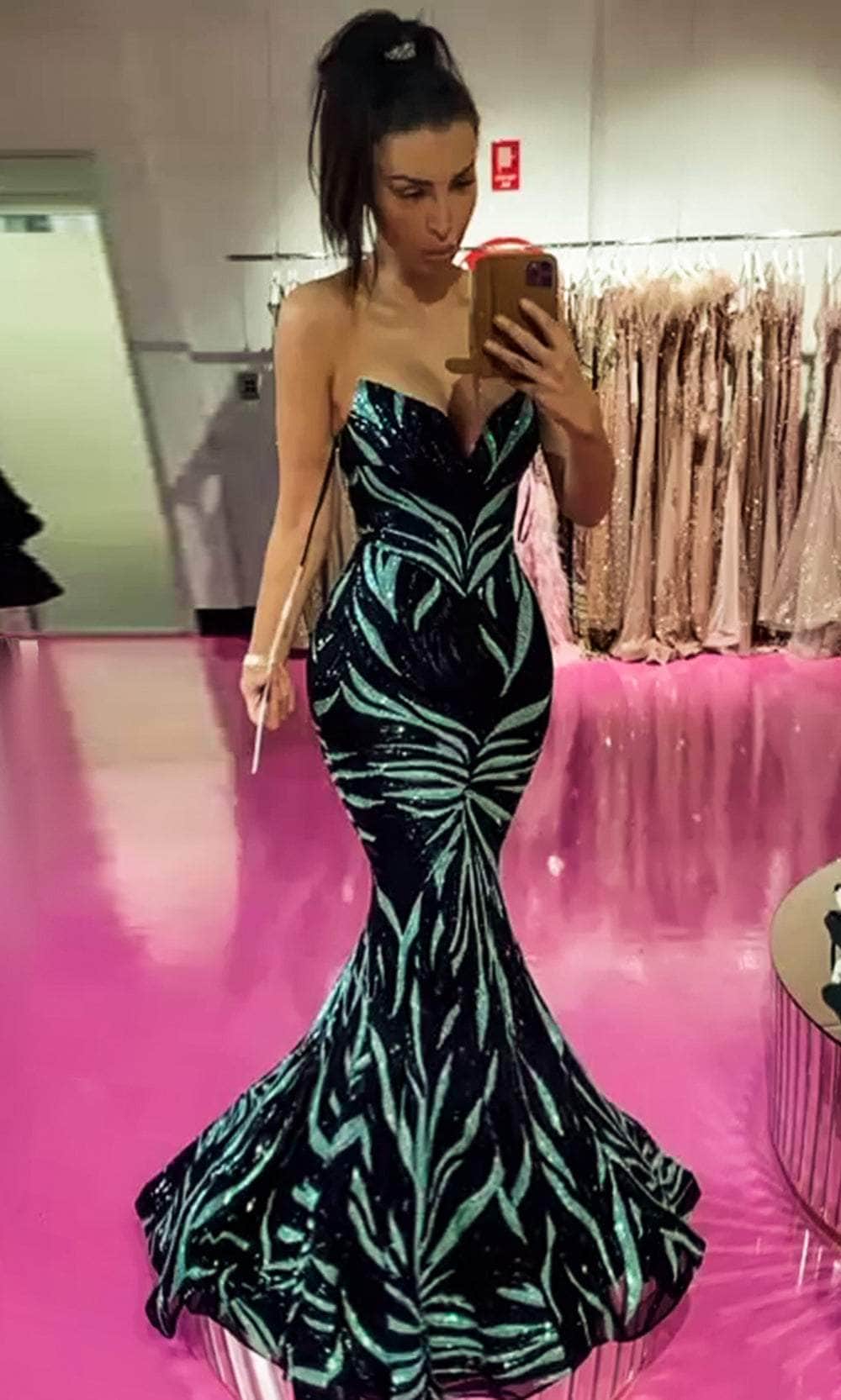 | Details: | V-Notch, Strapless, Sequins, Sweep Train |