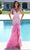 Look jaw dropping in this dramatic creation by Portia and Scarlett PS23339. This style is adorned with glimmering beadwork in a dotted pattern. The fitted gown reveals a deep v-neckline and thin shoulder straps. The trumpet skirt highlights a dramatic feather design that spills into a sweeping train and is finished with a high slit in front. This evening gown by Portia and Scarlett PS23339 is a red carpet knockout! Model is wearing the Pink color.