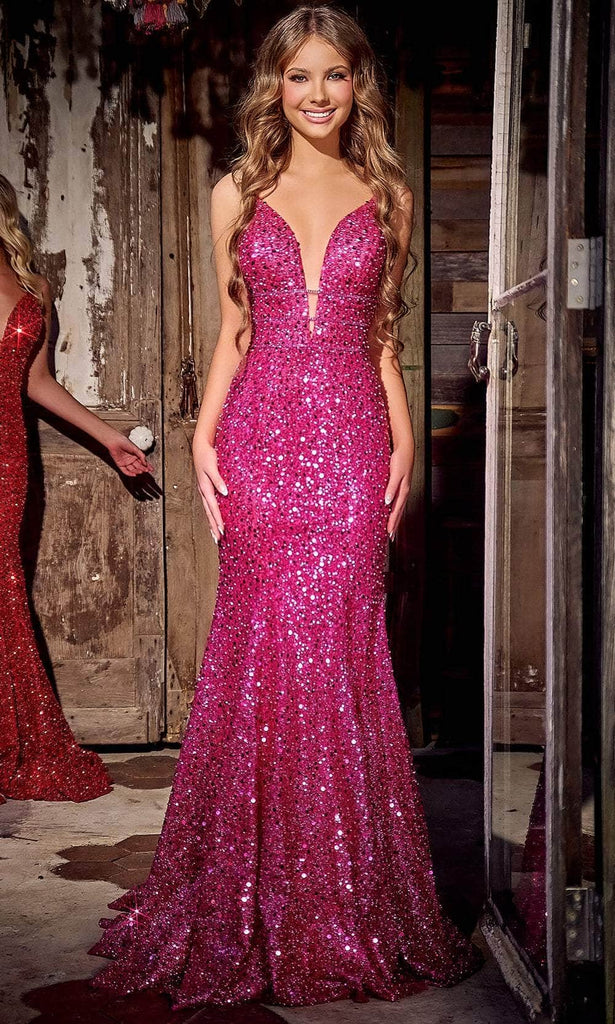 Portia and Scarlett PS24041 - Sequin Plunge Prom Dress