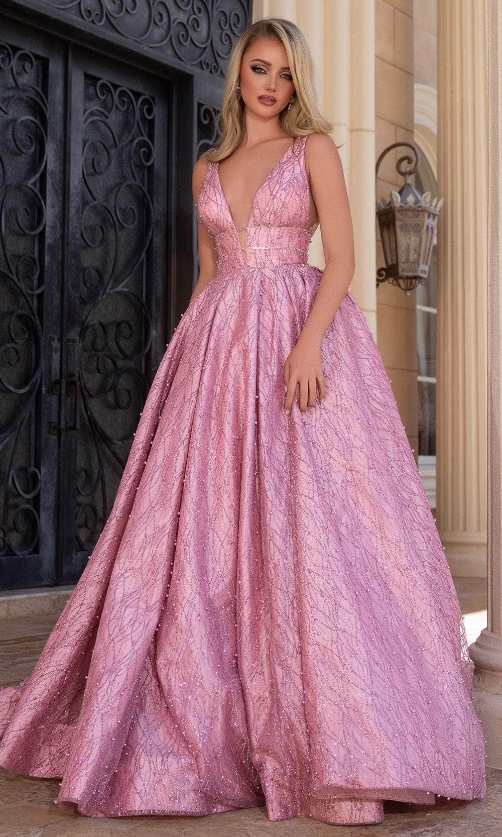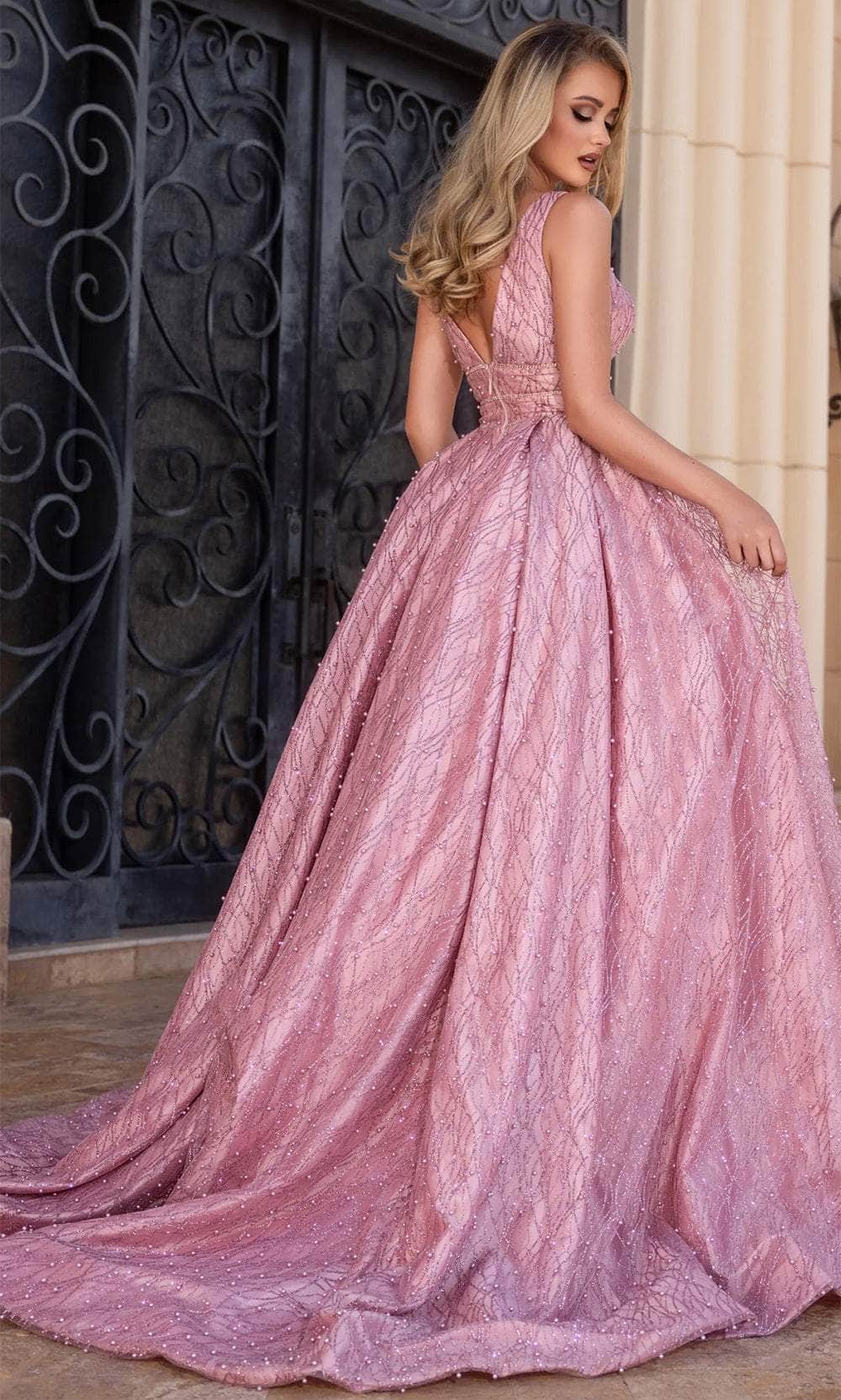 Standout among the fabulous crowd as all eyes focus on you in this glamorous Portia and Scarlett PS25316 ballgown. Feel magical as you wear this enchanting gown that features an alluring plunging V-neckline on a sleeveless bodice. It is entirely adorned with beads and embellishments, making it a truly remarkable attire. Additionally, its back is styled in a stunning open V way and is enclosed by a zipper for a polished finish. Make your perfect day blossom with a promise of forever in this Portia and Scarlett PS25316 masterpiece. Models are wearing Lilac, and Pink colors.