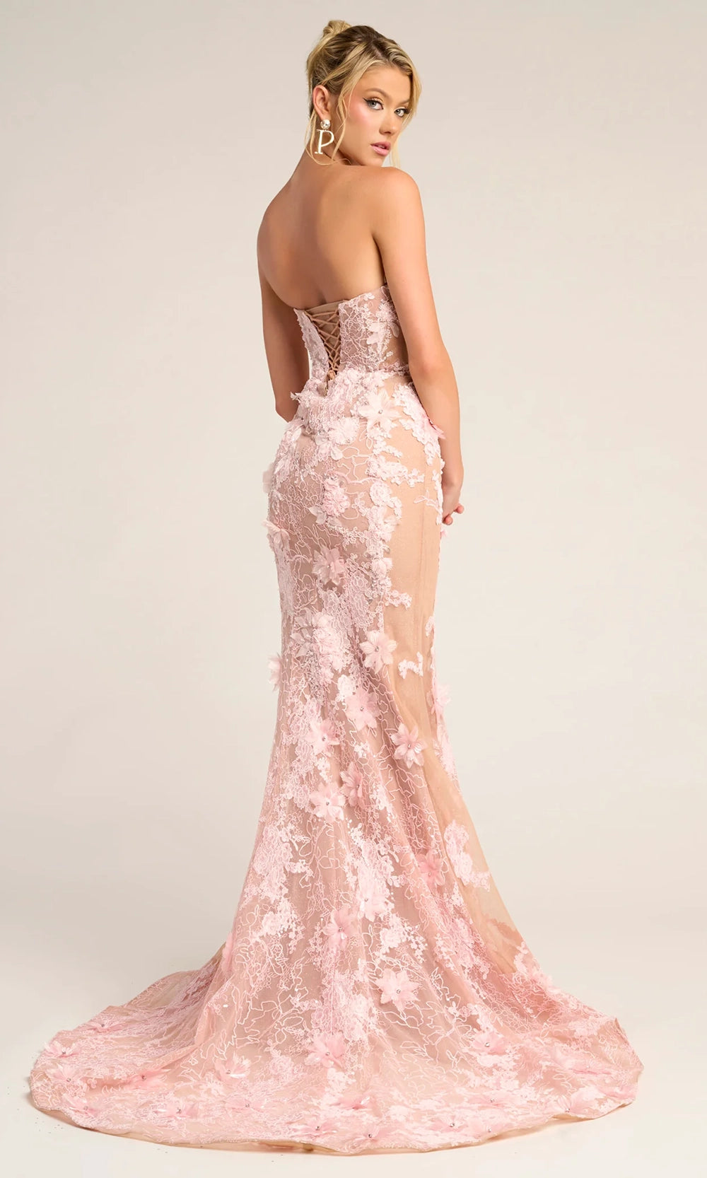 | Details: | Strapless, Illusion Plunge, Sheer Bodice, 3D Floral Lace Applique, Lace-Up Back |