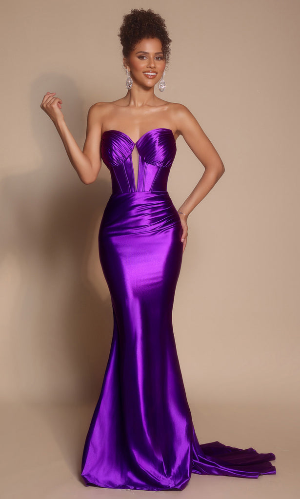 Enhance your evening style with the figure-flattering allure of the Portia and Scarlett XO080. The strapless bodice features structured corset bodice and a daring illusion plunge that adds intrigue to its sweetheart neckline. The fitted sheath silhouette molds to your shape before flaring into a subtle sweep train. This style is the definition of sleek sophistication, offering the perfect balance of allure and drama. Capture the essence of chic glamour with the unforgettable Portia and Scarlett XO080. Model is wearing Orchid color.