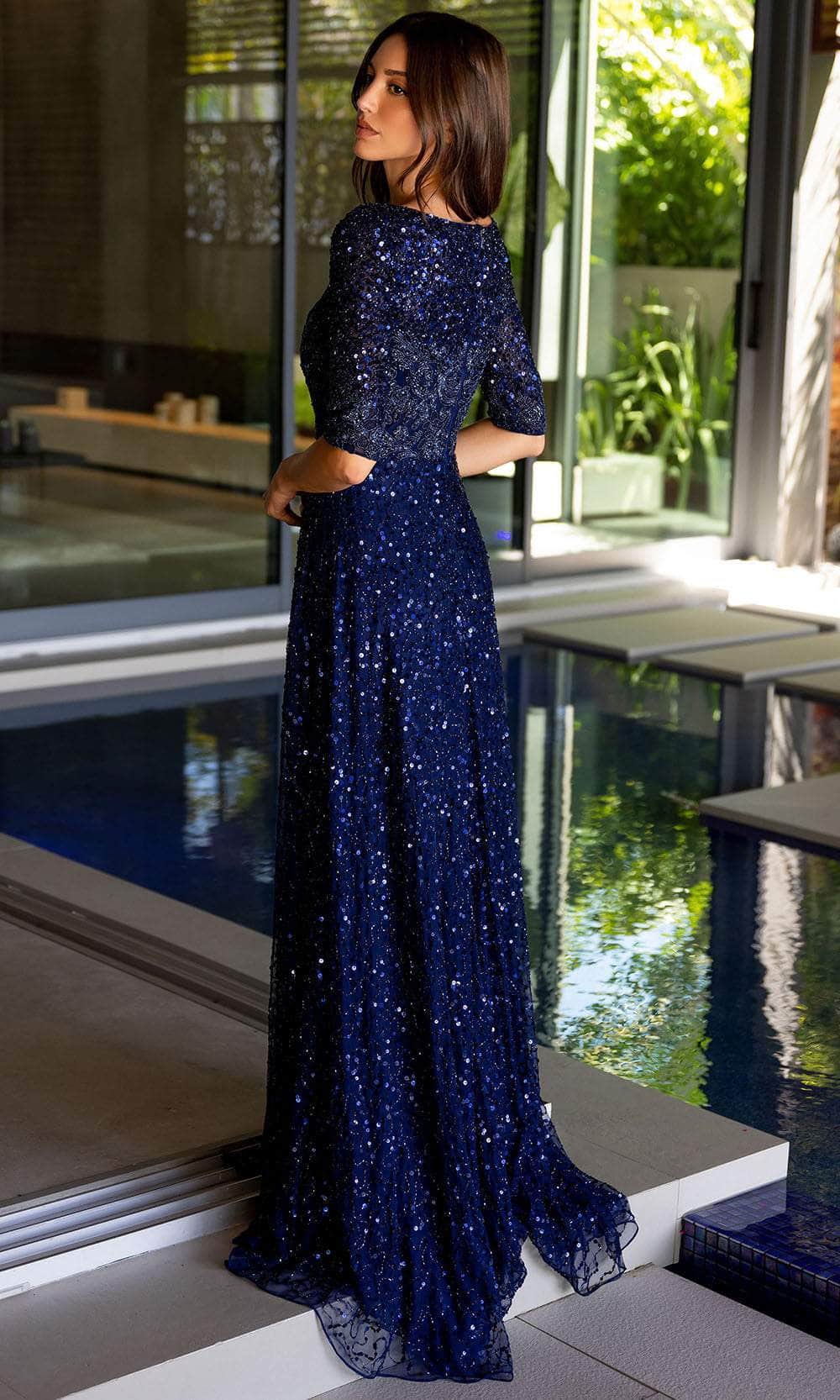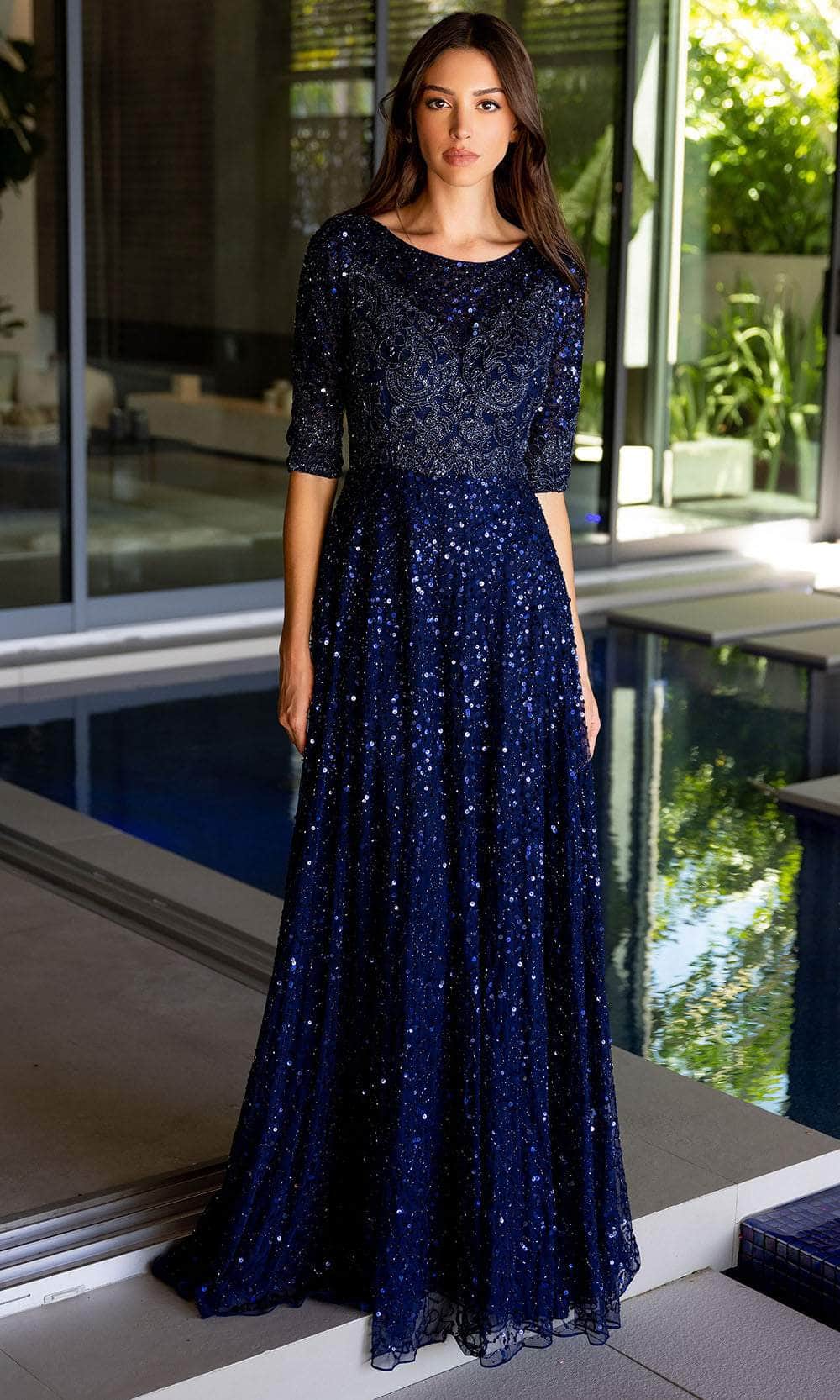 Bring on that commanding beauty in this Primavera Couture 13115 masterpiece. This style boasts intricate beaded and sequin embellishments that radiate a sense of luxury and glamour to the overall appearance. The scoop neckline and full back are featured, accompanied by elbow-length sleeves for a hint of modesty. The skirt showcases an A-line silhouette that flatters any curves, completed by a sweep train that gracefully trails behind. This Primavera Couture 13115 creation is specially designed to make that special occasion worth reminiscing. Models are wearing the Charcoal, and Midnight colors.