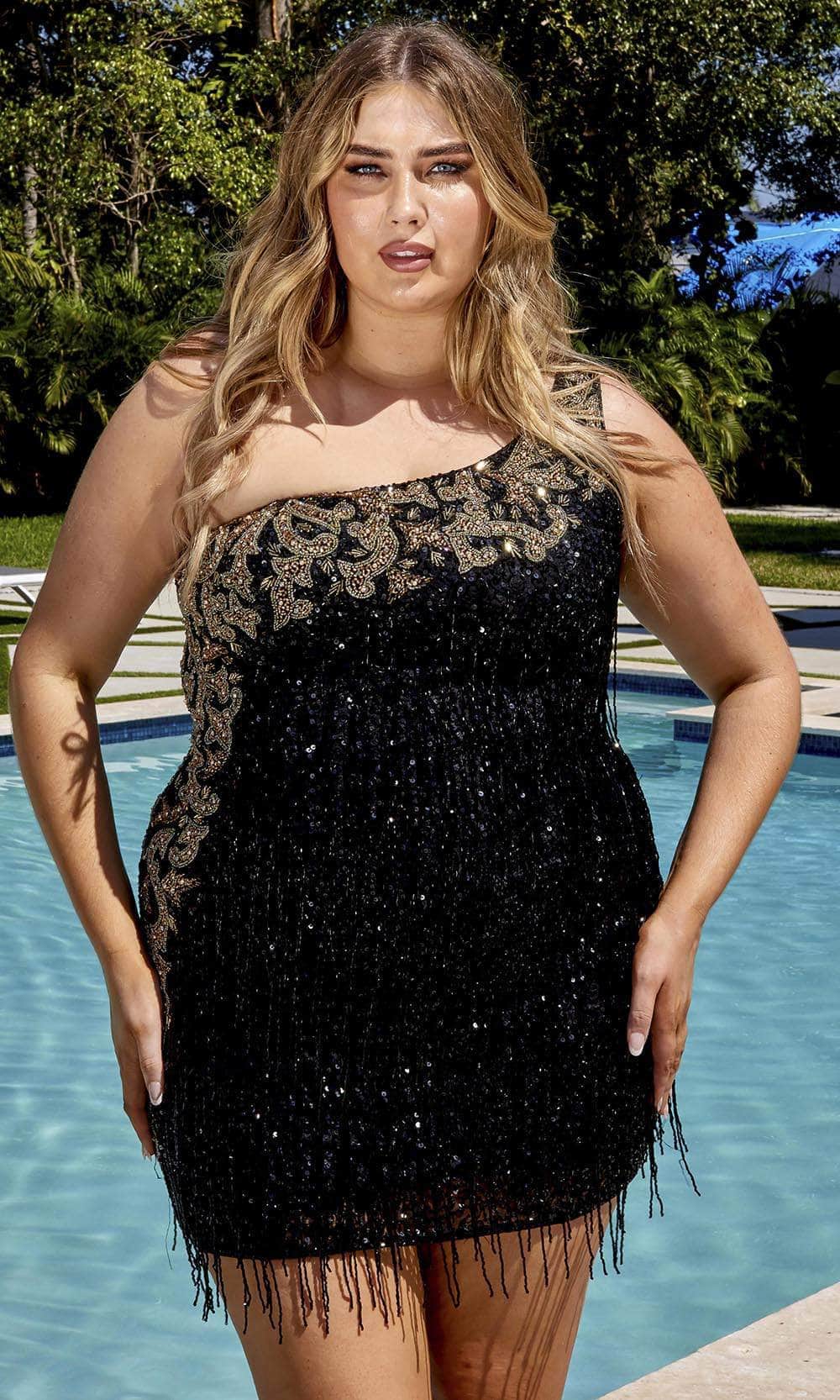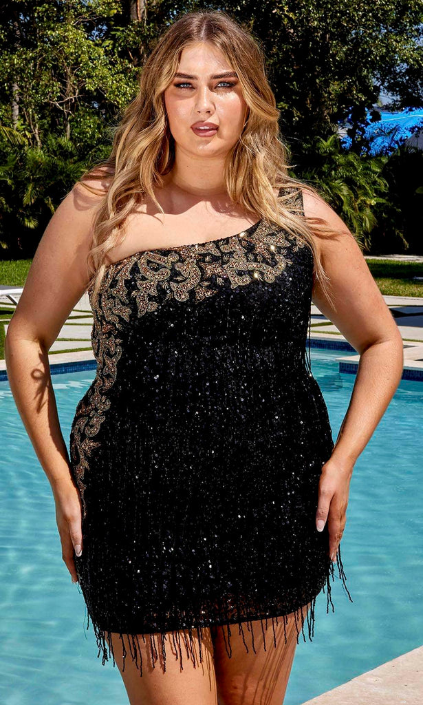 This Primavera Couture 14026 is a mesmerizing cocktail dress that radiates modern sophistication. The one-sleeve fitted bodice adds an alluring touch, exuding elegance and confidence. Adorned with intricate bead and fringe embellishments, this dress is a true work of art, capturing the light with every step you take. The back zipper closure ensures a seamless fit, while the short-length sheath skirt gracefully follows every curve, embracing your beauty with poise and grace. Prepare to dazzle and leave a lasting impression in this extraordinary Primavera Couture 14026 creation, designed to steal the spotlight at any event. Models are wearing Black Ivory and Sage Green colors.