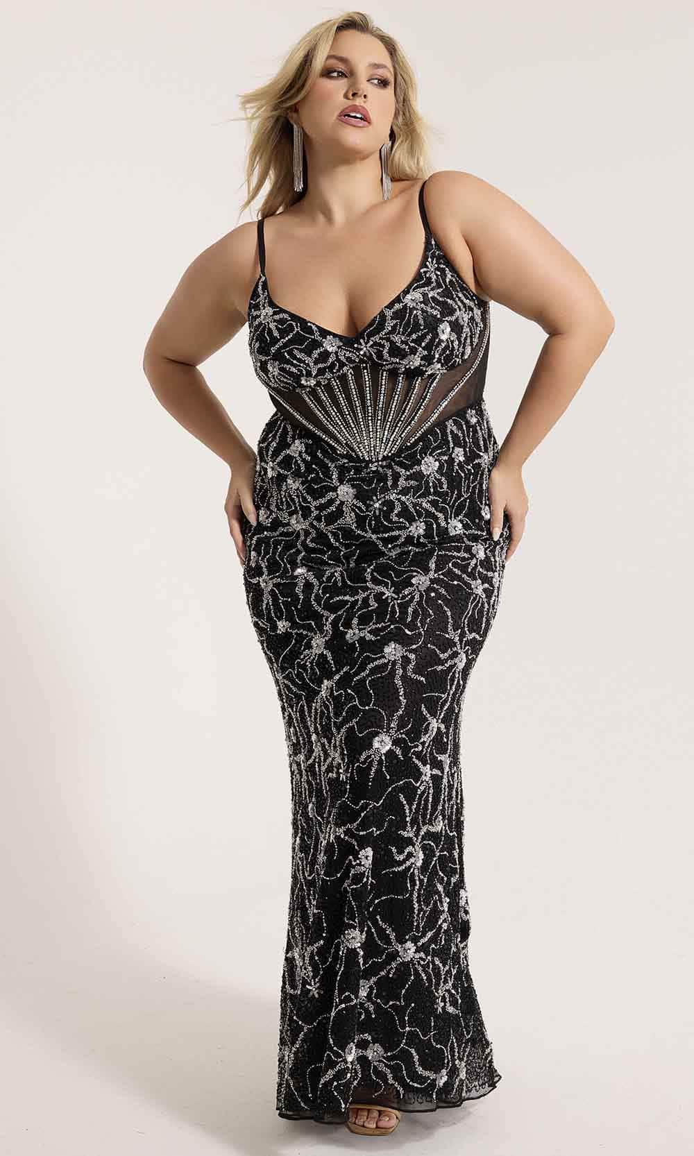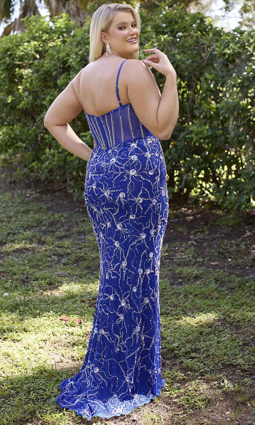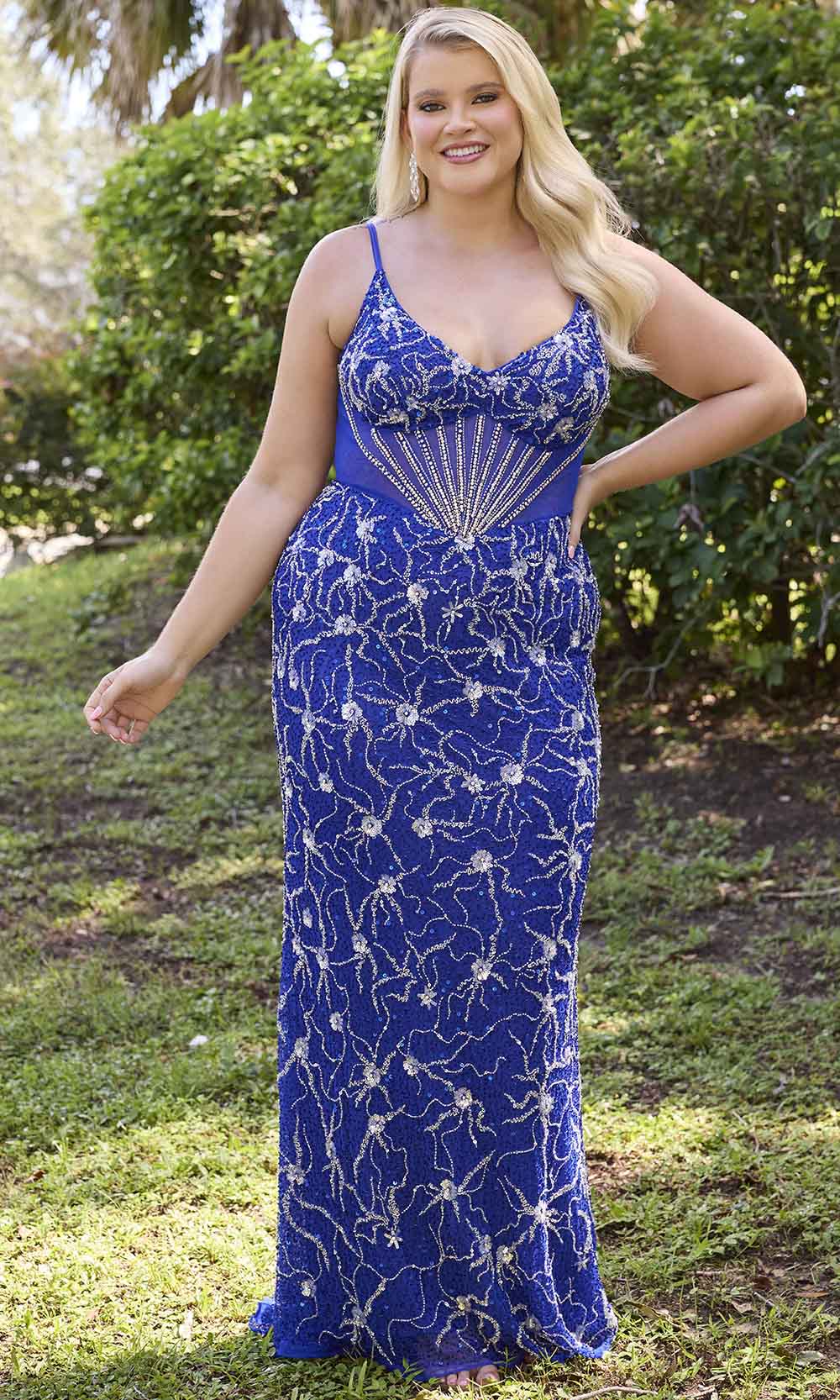 Dress to impress on your next formal event in this simple but captivating Primavera Couture 14079 gown, a true masterpiece of style and sophistication. This sleeveless design features a fitted sheer bodice adorned with shimmering sequins and intricate beadwork, offering a mesmerizing sparkle. The flattering V-neckline enhances the allure, while a concealed zipper closure ensures a flawless fit. The floor-length column skirt flows gracefully, finishing in a sweeping train that adds a touch of drama. Perfect for galas, formal events, or evening soirées, this Primavera Couture 14079 is unforgettable. Models are wearing Black and Royal colors.