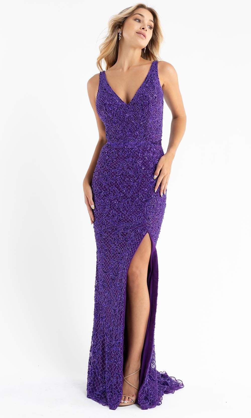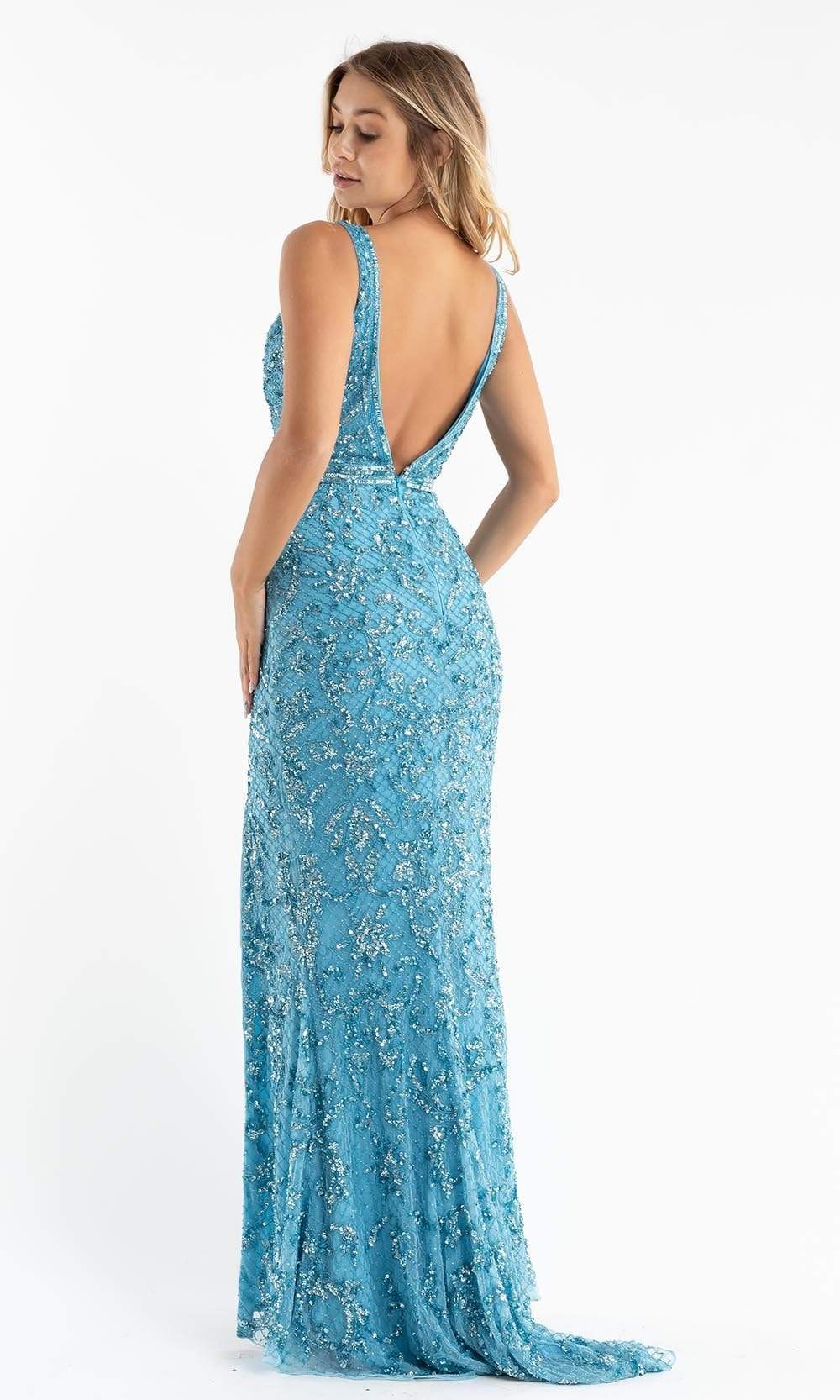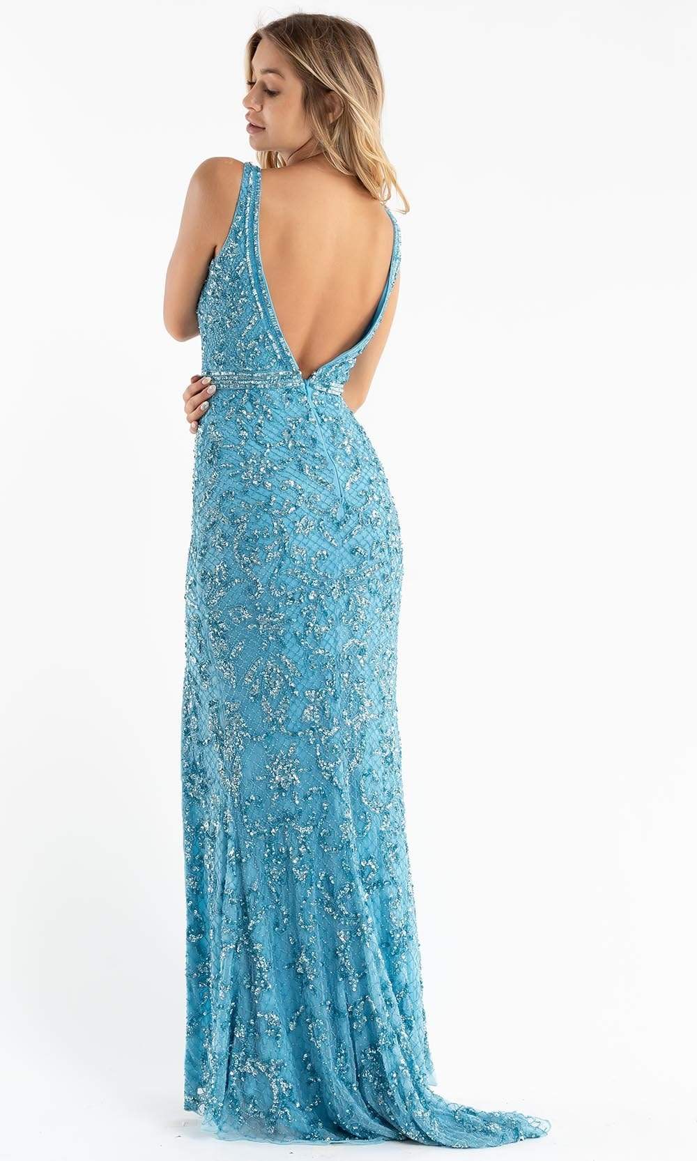 Make your grand entrance in this stunning Primavera Couture 3764 evening gown. Fully adorned with swirling beads and sequins embellishments, this stunner features a fitted bodice framed with a low V neckline, complemented with an open back secured with a center zipper closure. The sheath silhouette elegantly flows to a full length hemline, finished with a sweep train. This evening dress by Primavera Couture is a red carpet knockout! Primavera Couture's sparkling long sequin dresses and cocktail dresses will dazzle you with compliments as these dresses are extremely impressive.