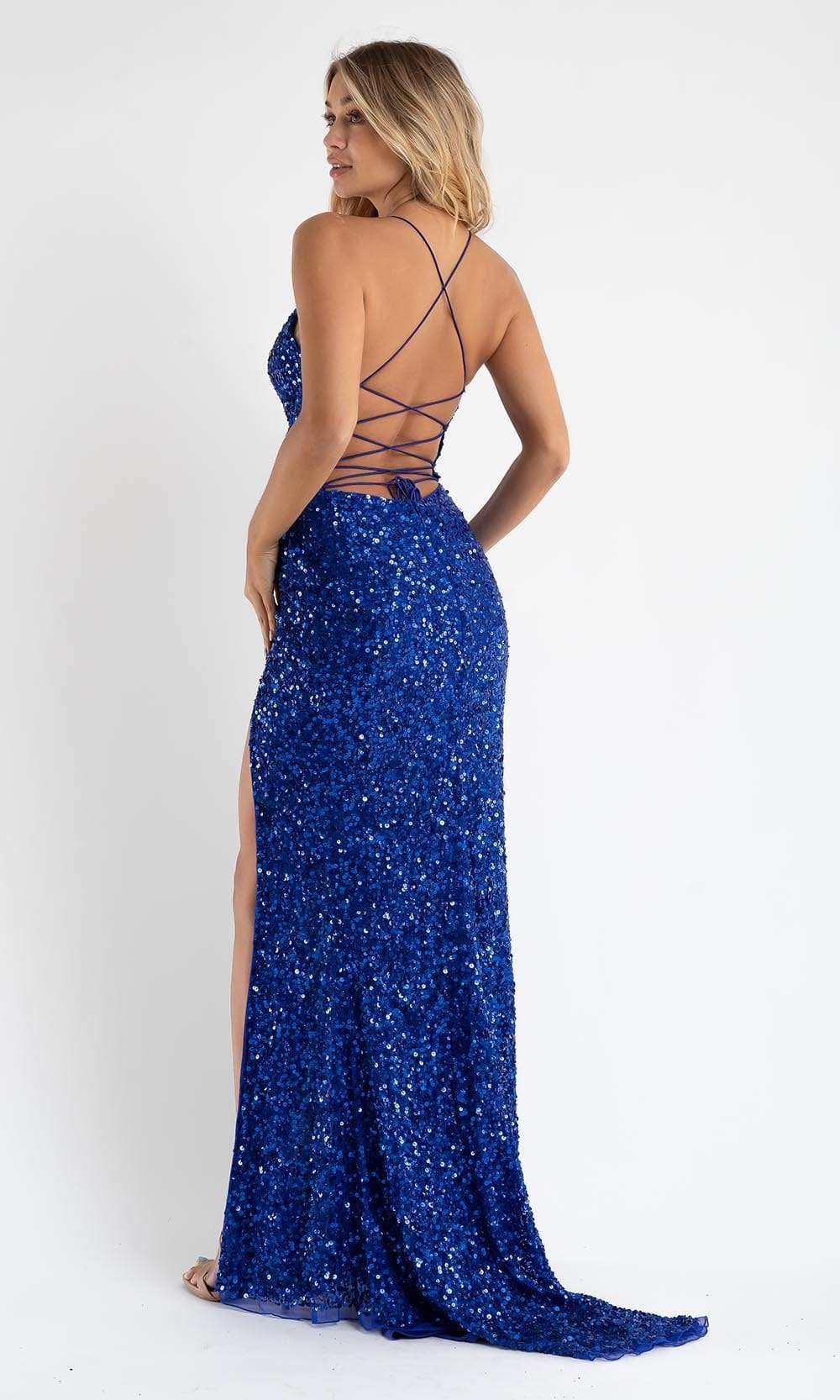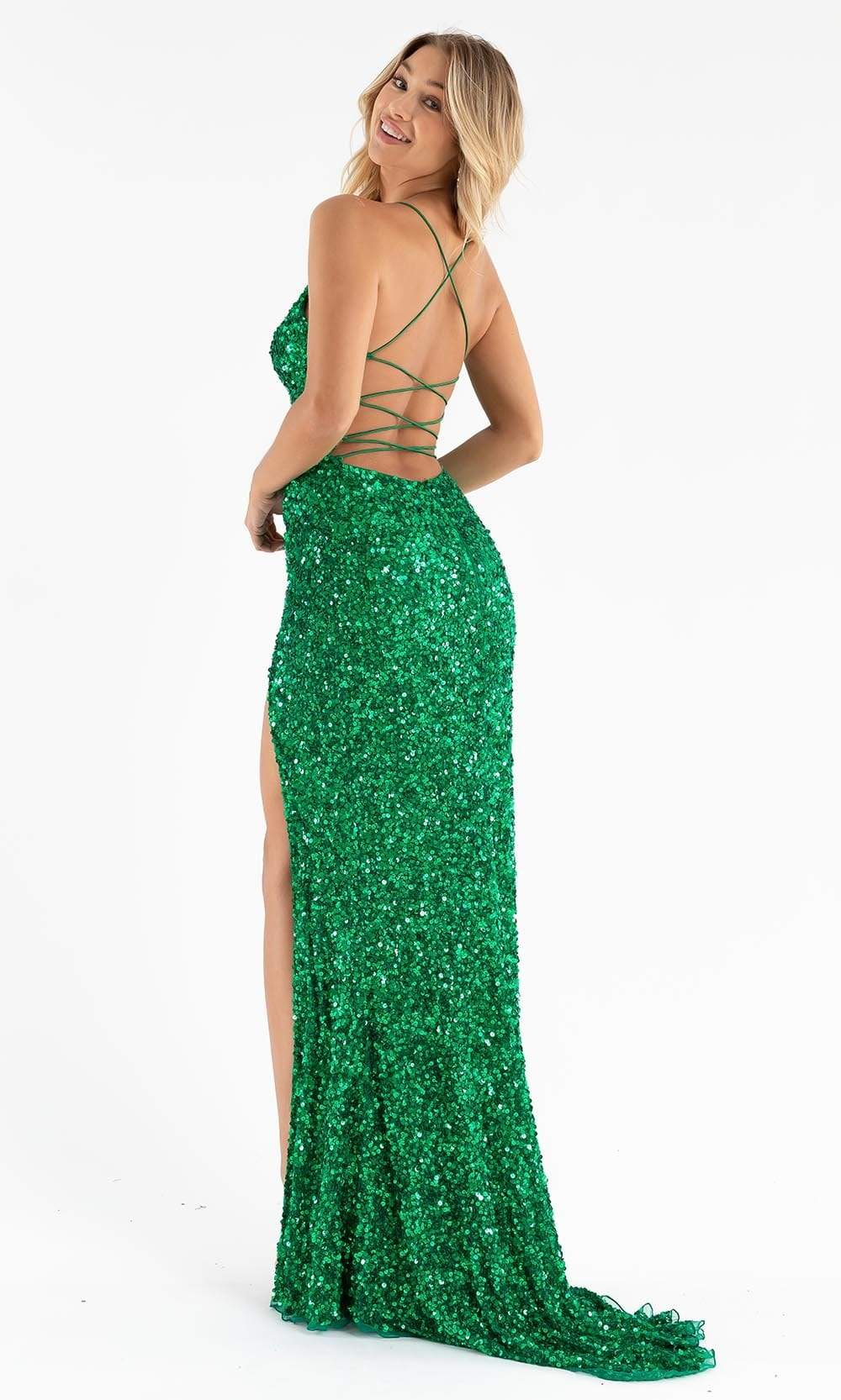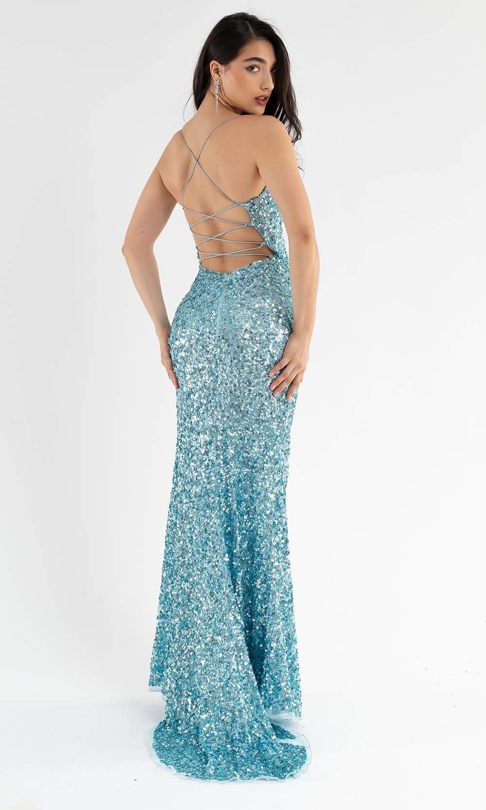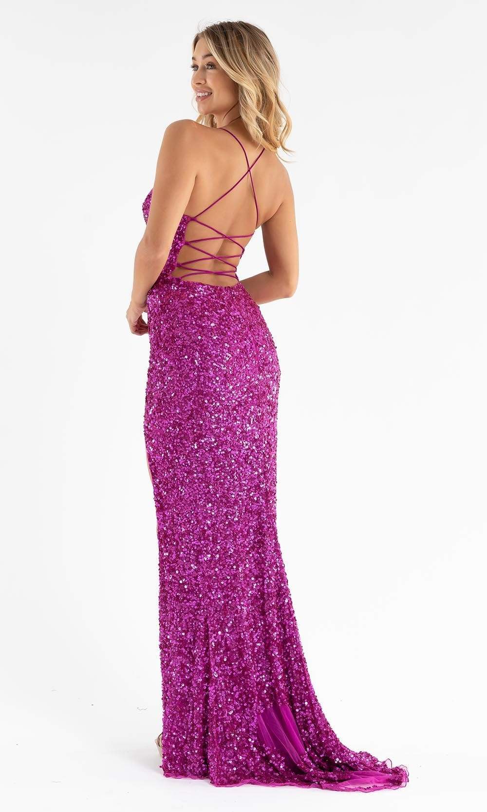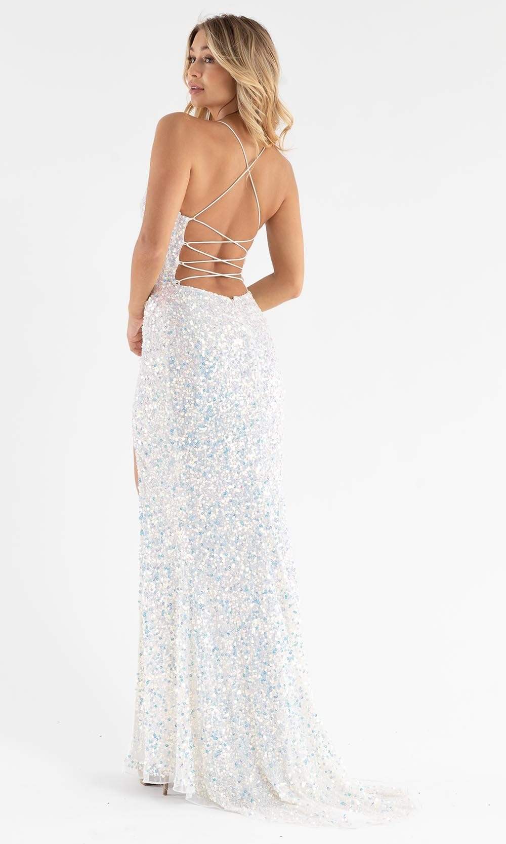 Primavera Couture - 3791 V-Neck Sequin Lace Up Dress