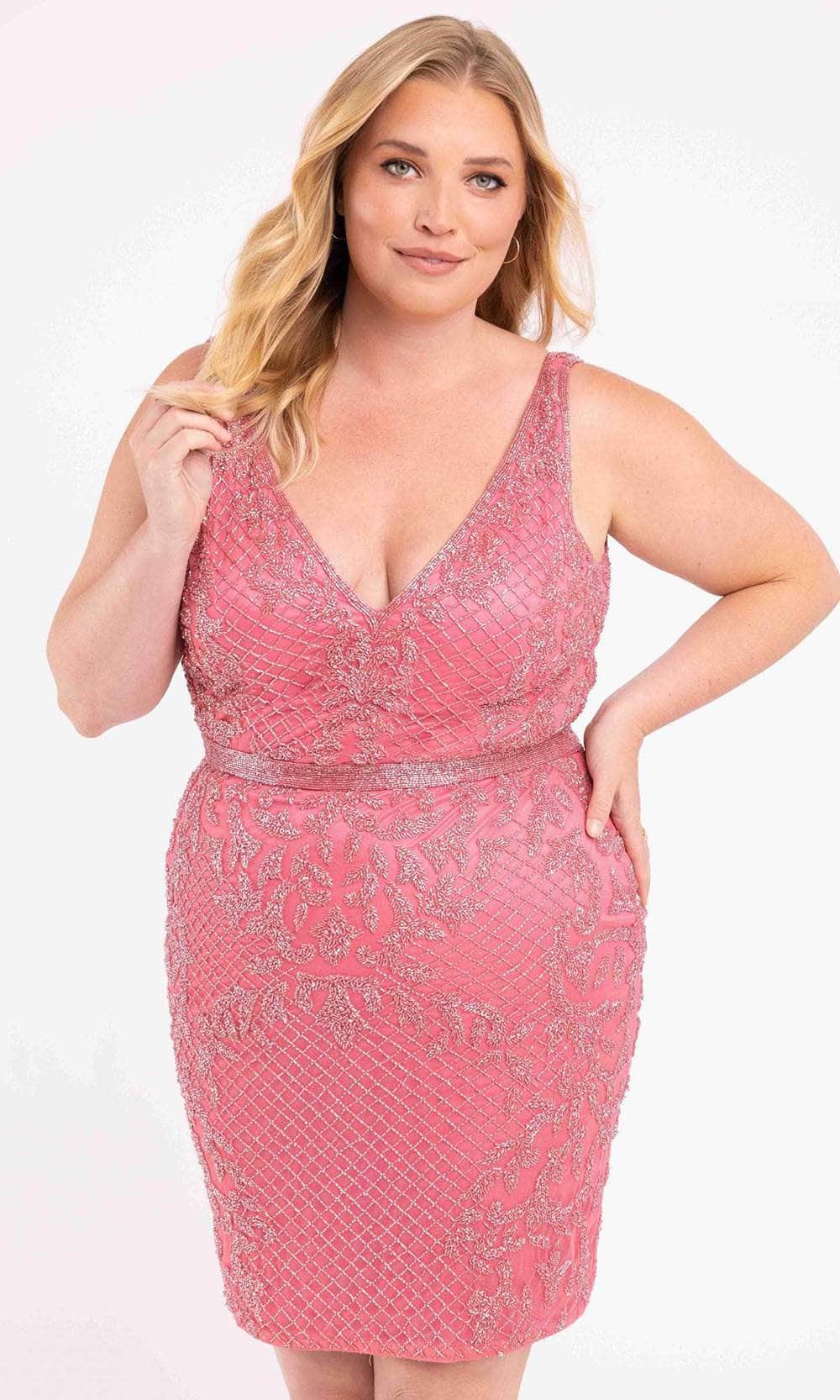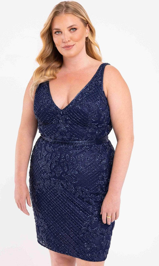Steal the show in this dazzling Primavera Couture 3884 short dress. Crafted with intricate beadworks all throughout its length, this beauty shows off in a deep V-neckline and paired with equally sexy V-shaped back and it is secured with a zipper closure. A nip on the natural waist with the embellished waistband flatters your curves elegantly while the skirt forms in a sheath and ends in a short hemline. Be the spotlight wearing this extravagant Primavera Couture creation. Models are wearing Midnight and Rose colors.