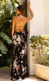 | Details: | Sleeveless, Spaghetti straps, Sequins, Floral pattern, Fitted bodice, High slit, Open back, Strappy, Floor length, Sweep train |