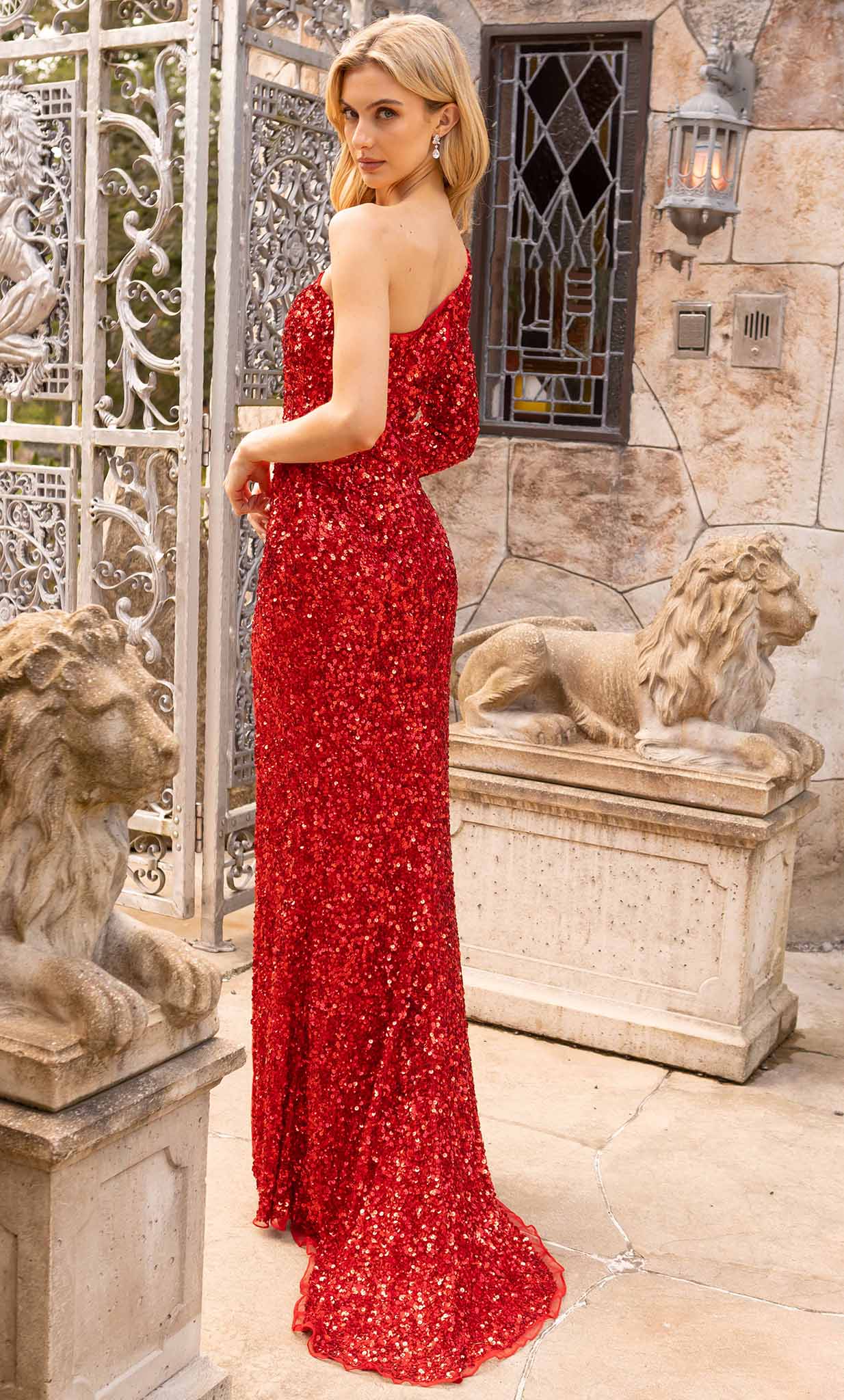 Step into the spotlight in this alluring Primavera Couture 3942 creation. A slim fitting gown is beautifully festooned in shimmering sequins all over its length. It showcases an asymmetrical neckline and slender long sleeves complemented by a mid-open back. The sheath skirt enhances your feminine form and streams alluringly to the full length hem, completed in a high leg slit and sweeping train. This Primavera Couture 3942 long gown definitely flatters from every angle. Models are wearing the Baby Pink, Black, Lilac, Neon Pink, Red and Royal Blue colors.
