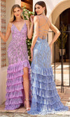 | Details: | Sleeveless, Beaded Foliage Detail, Open Back with Lace Up Detail, Tiered Flare, High Slit, Sweep Train |