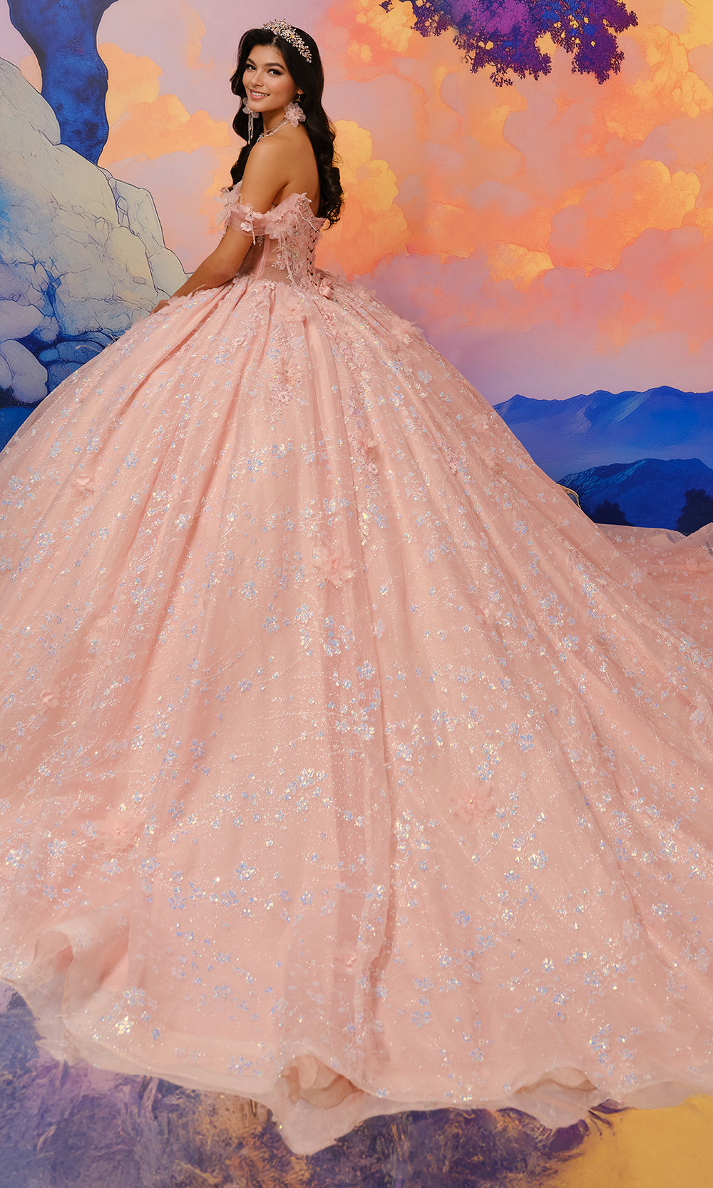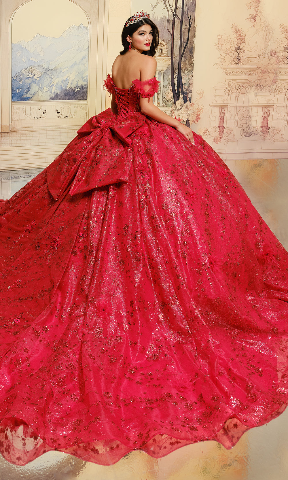 Step into a regal moment in the stunning Princesa by Ariana Vara PR30206. This opulent ballgown features a sweetheart neckline, detachable off-shoulder straps and sheer corset bodice that is detailed with beaded appliques and scattered 3D floral embellishments. The glitter tulle skirt sweeps outward into a dramatic full-length silhouette, enhanced by a breathtaking detachable back bow that completes the royal aesthetic. With its shimmering texture and intricate embroidery, the Princesa by Ariana Vara PR30206 is a dream come true for any girl seeking a storybook finish. Models are wearing Red, and Blush colors.