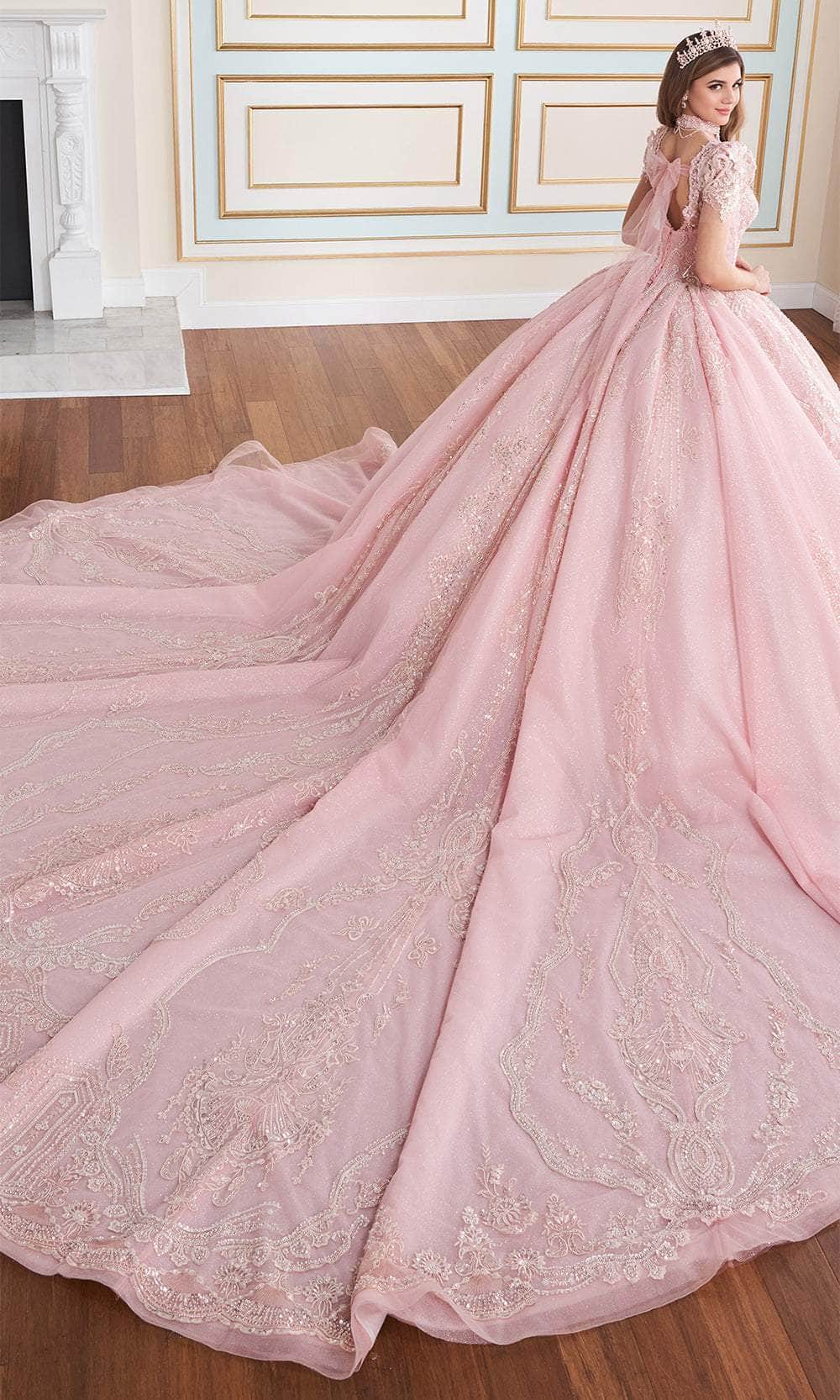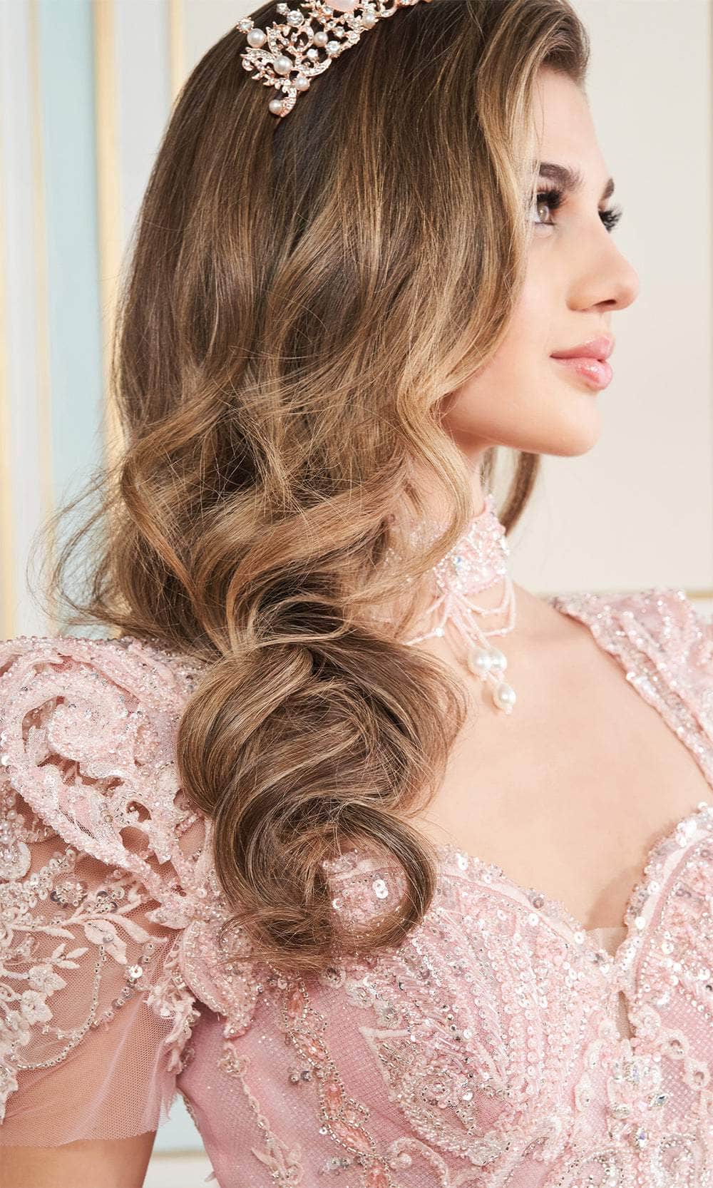 Be a vision of opulence and elegance with this Princesa by Ariana Vara PR70103 ball gown. Featuring a classic sweetheart neckline, this gown showcases intricate appliques, delicate beading, and sparkling stone accents that shimmer beautifully on the glitter tulle fabric. The Basque waistline enhances your silhouette, while the full skirt flows gracefully, creating a dramatic, fairy-tale effect. Complete with detachable cap sleeves, a matching necklace, and a skirt hoop, this Princesa by Ariana Vara PR70103 offers versatility and comfort, ensuring you look and feel like royalty. Model is wearing Blush color.