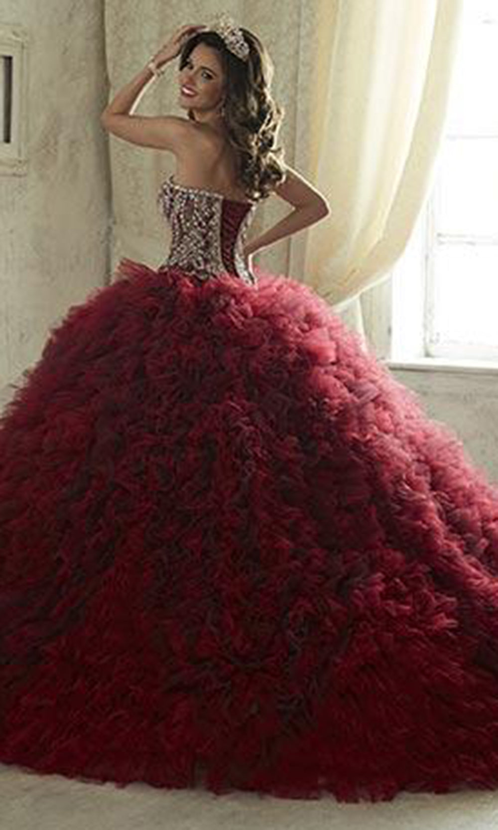 Embrace a wonderful evening in this wondrous gown from Quinceanera Collection 26838. With a densely garnished bodice made from a plethora of colorful rhinestones, the sweetheart bodice magnifies the ruffled organza skirt beautifully as it shines with two-tone colors and sparkle organza. This evening gown by Quinceanera Collection is a red carpet knockout!