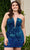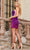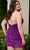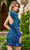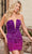 Be the life of the party when you are wearing this dazzling Rachel Allan 40308. This show-stopping velvet dress is adorned with ombre sequins, offering a stunning two-in-one look. The strapless bodice flaunts a plunging V-neckline with sheer insets on the bust and sides, while the daring exposed back adds allure. For a dramatic touch, it features a detachable collar with a single long sleeve. The mid-thigh sheath skirt perfectly showcases your curves. Models are wearing the Purple Ombre, and Royal Ombre colors.