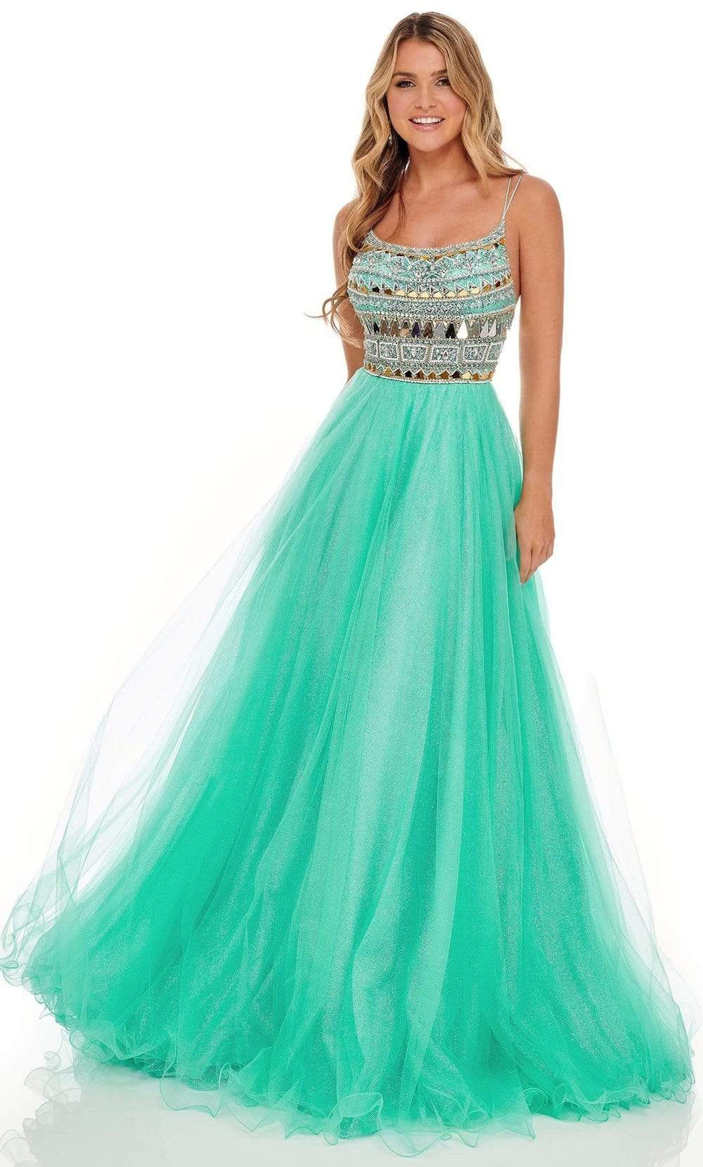 Mesmerize the stylish crowd in this exceptional Rachel Allan 70038 creation. Embellished with an Aztec-inspired beadwork and cut-glass accents, this piece reveals a scoop neckline and spaghetti straps. The back has bandeau cuts with a lace up detail. The tulle skirt cascades into a frothy sweeping finish. Look amazing from all angles in this Rachel Allan masterpiece.