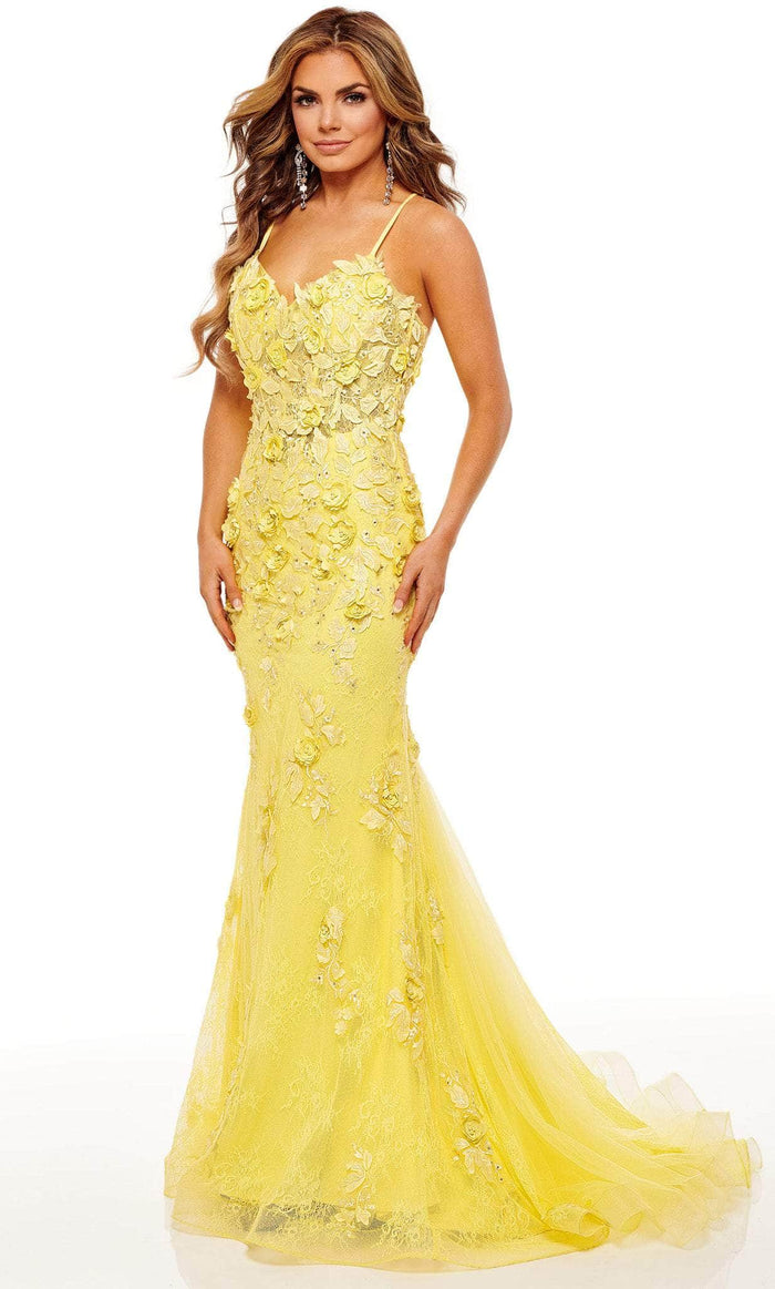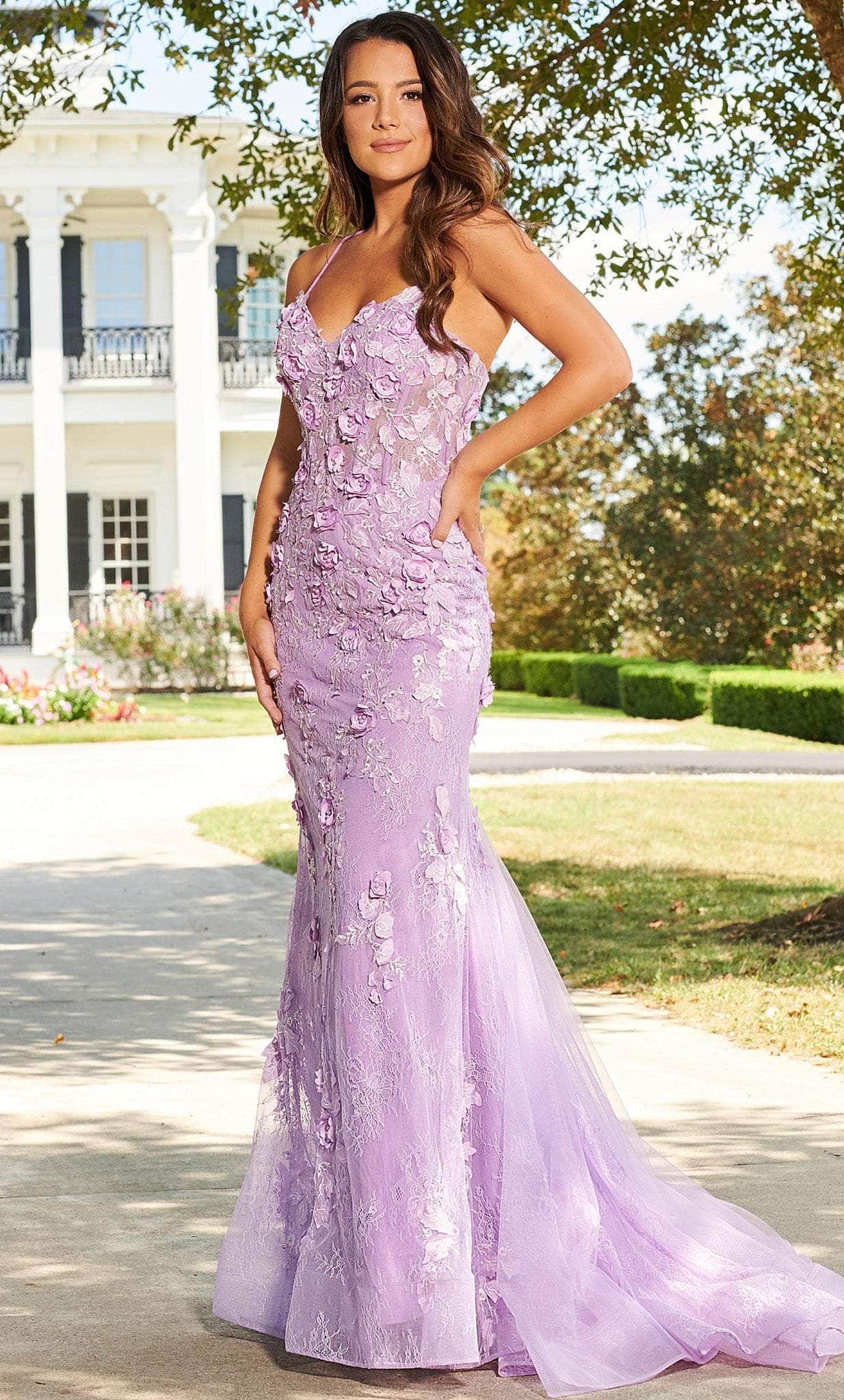 Rachel Allan 70278 - Floral Appliqued Trumpet Prom Gown