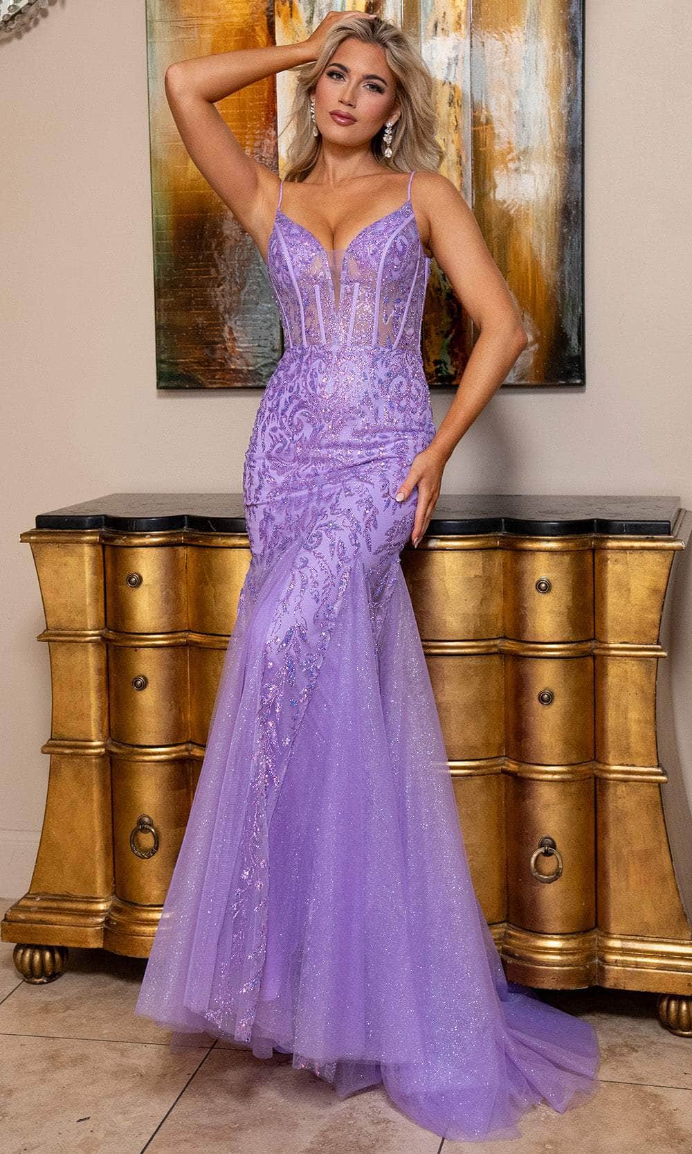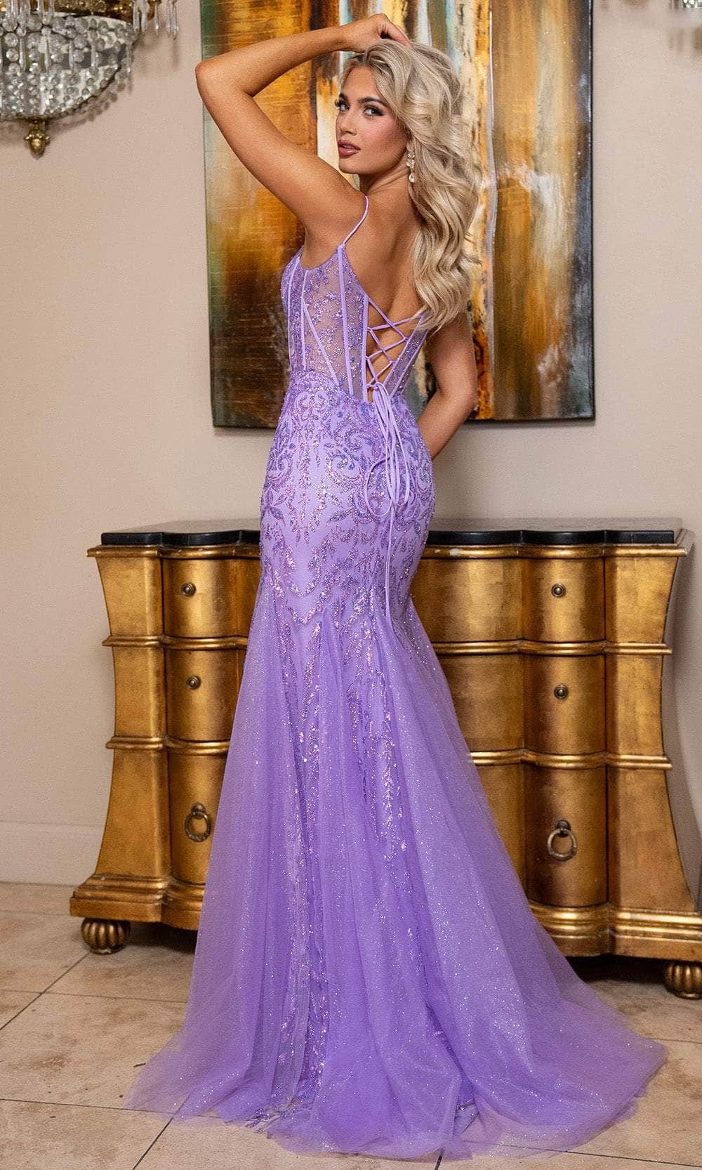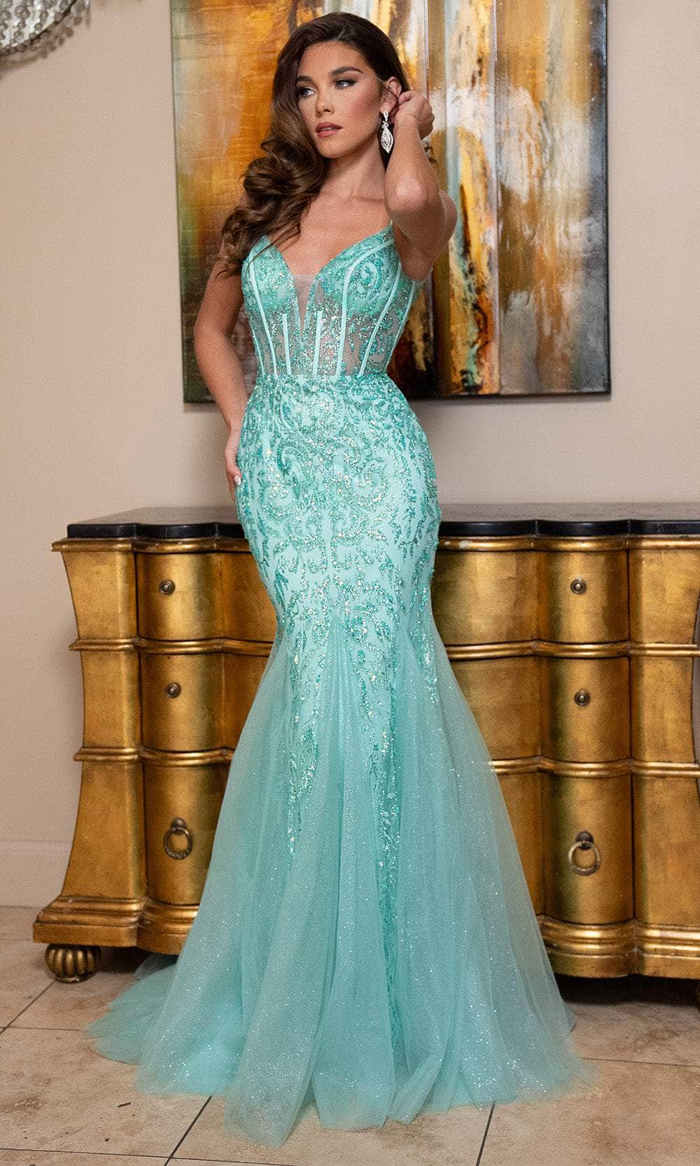 Step into the spotlight with the Rachel Allan 70750, a breathtaking mermaid gown designed to captivate. The illusion corset bodice is adorned with exquisite beaded lace, adding dimension and elegance. Delicate spaghetti straps provide subtle support, leading into a structured silhouette that accentuates the curves. The fitted design flares into a soft tulle train, adding a dramatic touch. Ideal for pageants, galas, or formal evenings, this Rachel Allan 70750 masterpiece ensures a sophisticated and memorable presence. Models are wearing Deep Blush, Lilac, and Mint colors.