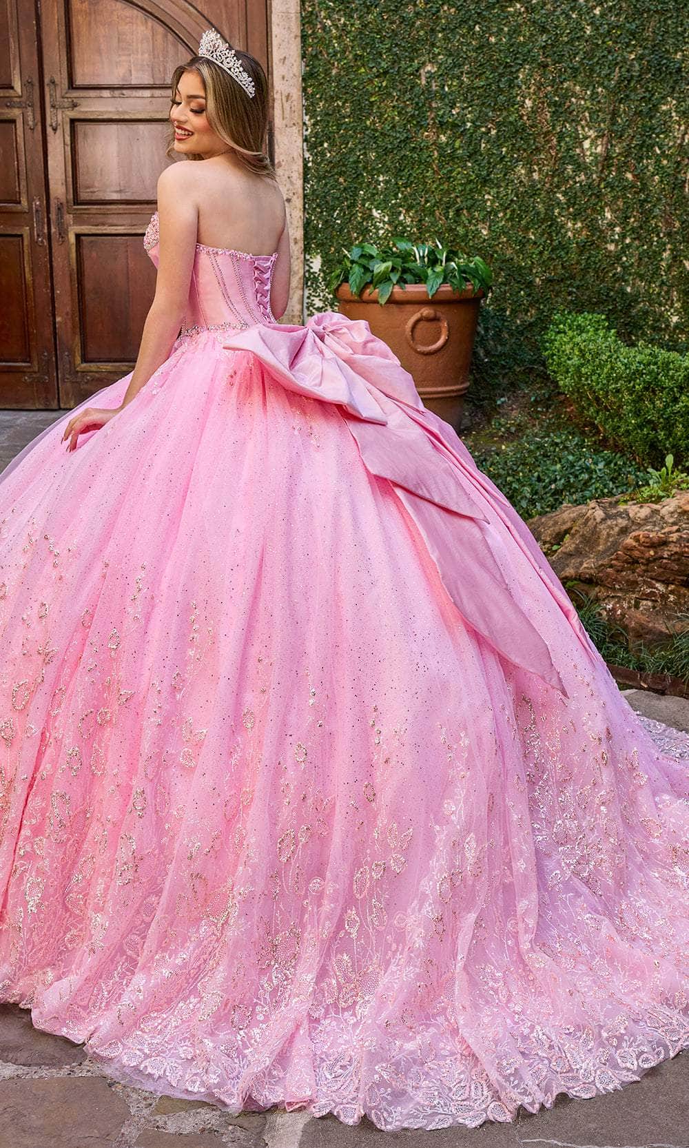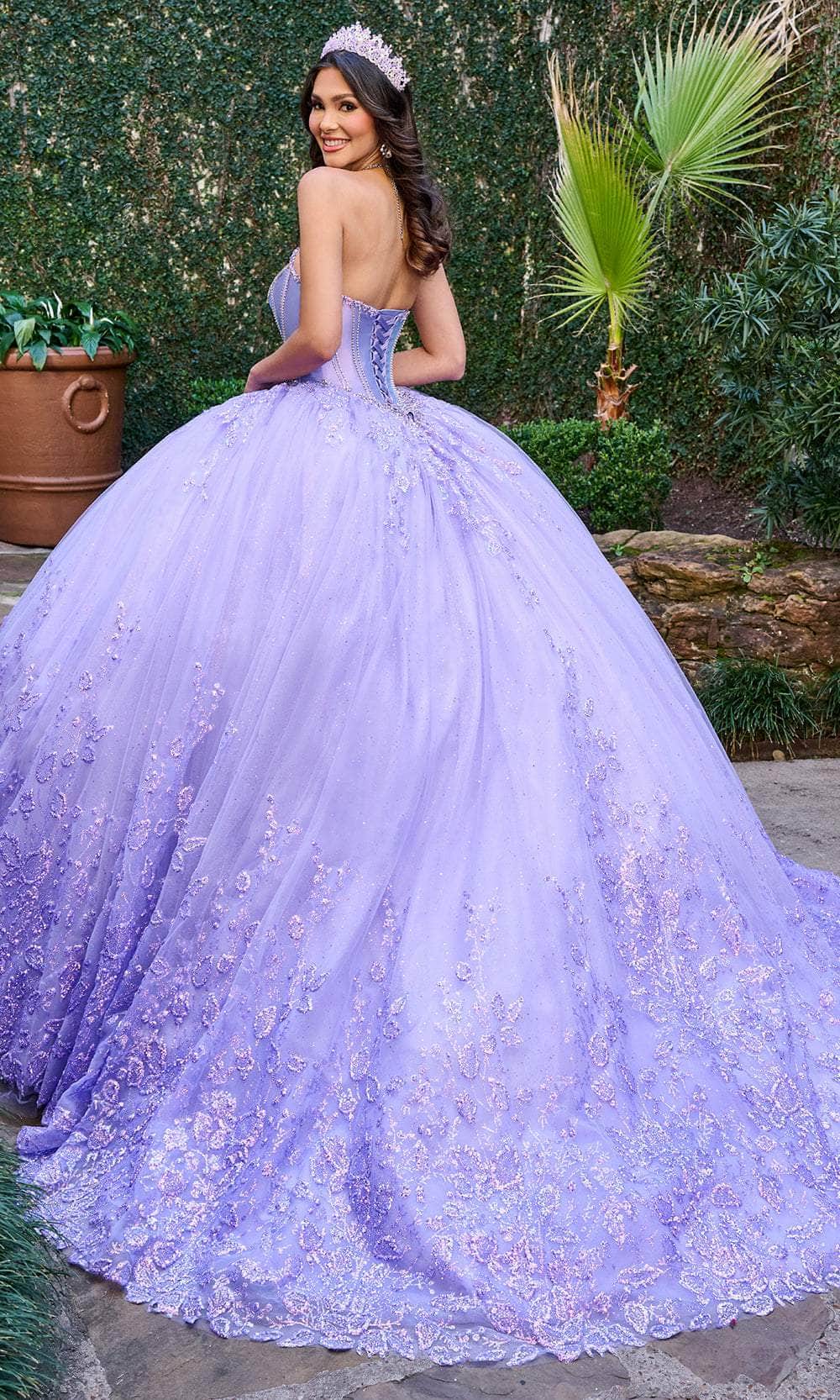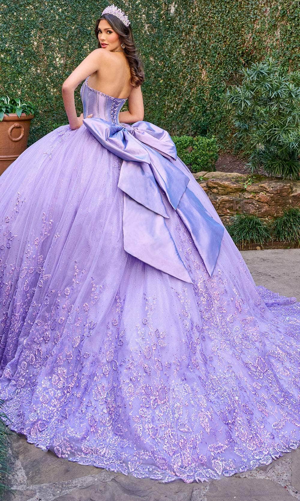 Embrace the royalty within you by wearing the Rachel Allan RQ1142 creation. This strapless ensemble molds your figure with its taffeta corset boning bodice and is decorated with the radiant sparkle of beadwork. The sweetheart neckline adds a hint of romance, while the back shows a mid-open cut with a lace-up tie closure and a trendy huge bow accent. Carved in a voluminous ballgown silhouette, the skirt has striking details of sequin appliques, a scalloped hem and a grand sweeping train at the end. You are a breath of fresh air in this dreamy Rachel Allan RQ1142 masterpiece. Models are wearing Lilac, and Pink colors.