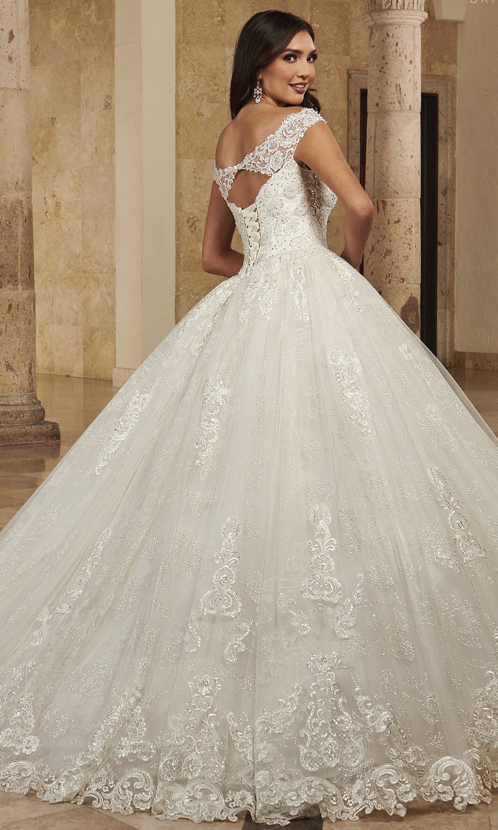 | Details: | Cap Sleeves, Beaded, Lace Appliques, Sweep Train, Cutout Back, Lace-Up Closure |