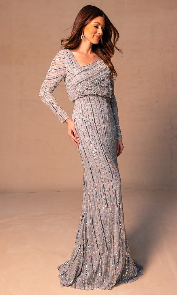 | Details: | Long Sleeves, Blouson Bodice, Beaded, Sequin, Floor-Length Hem |